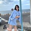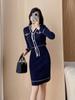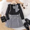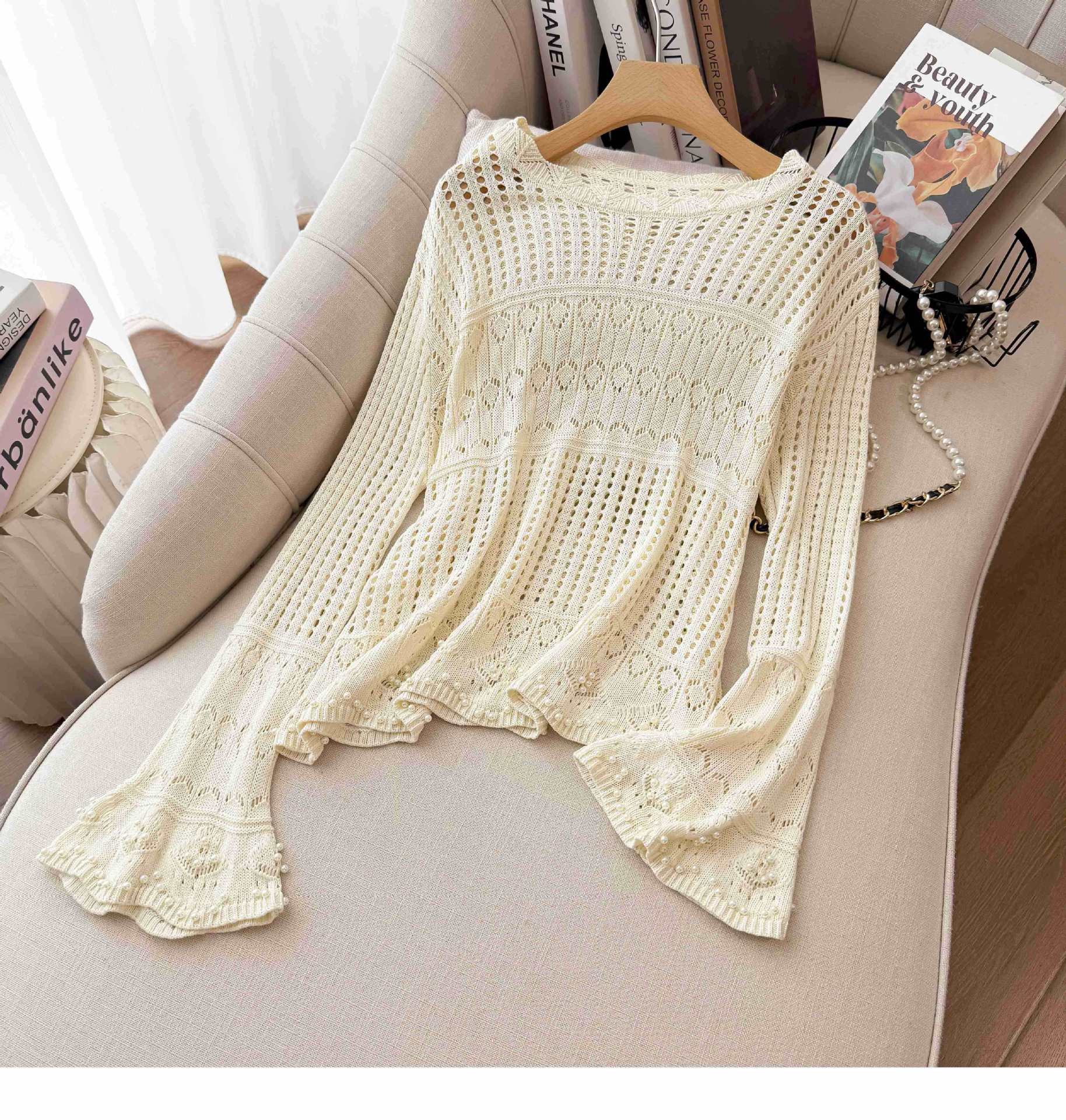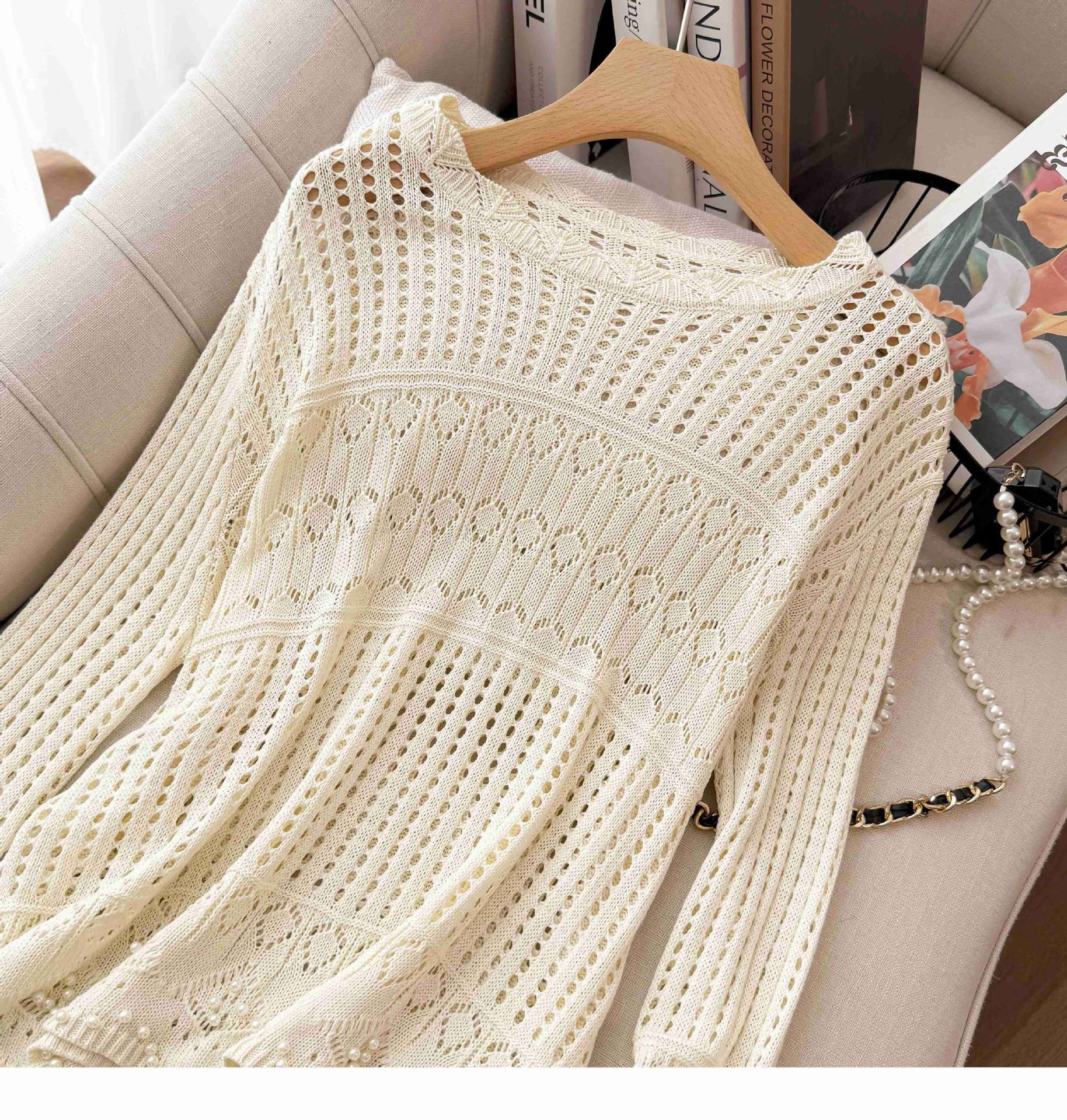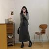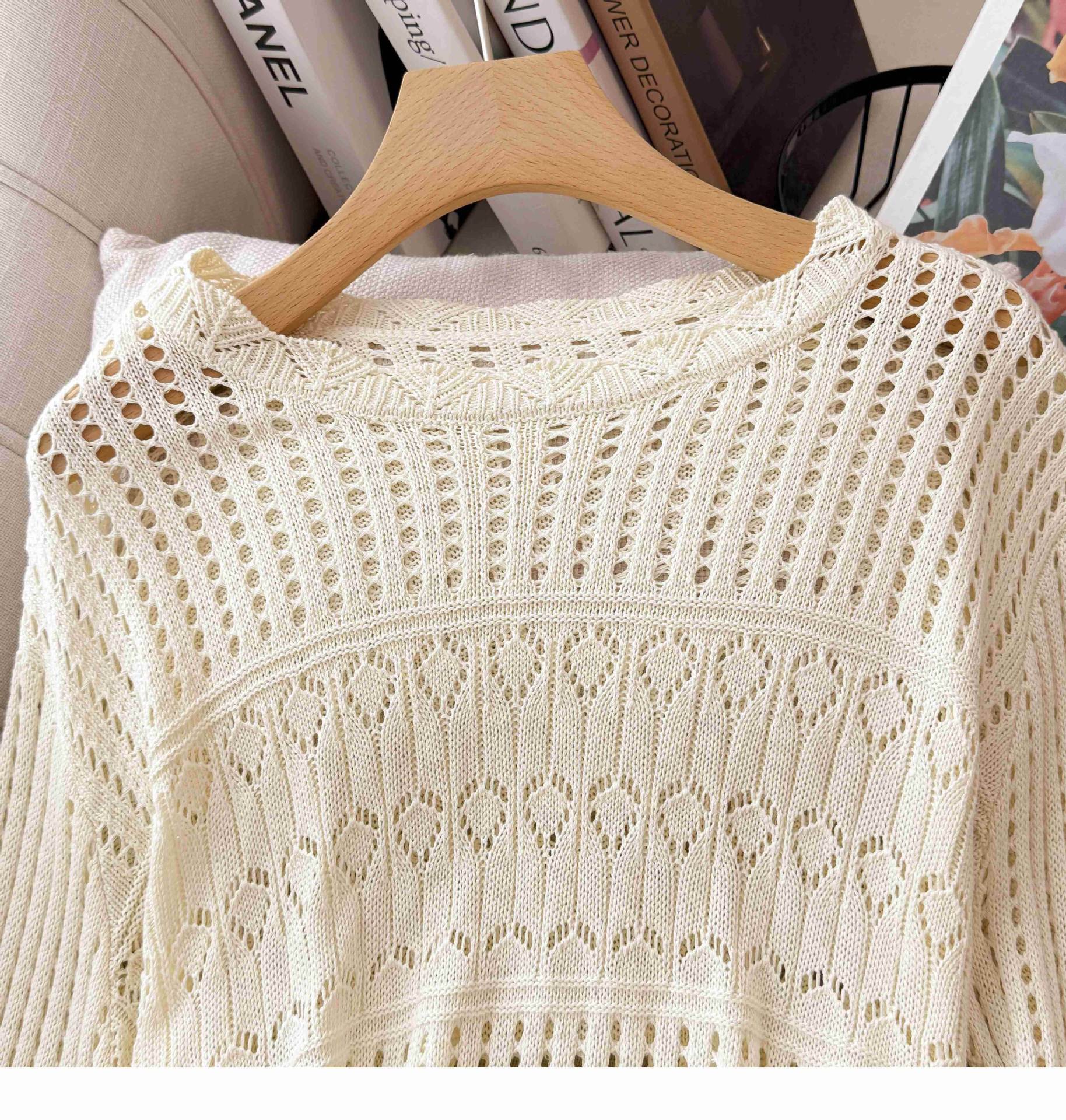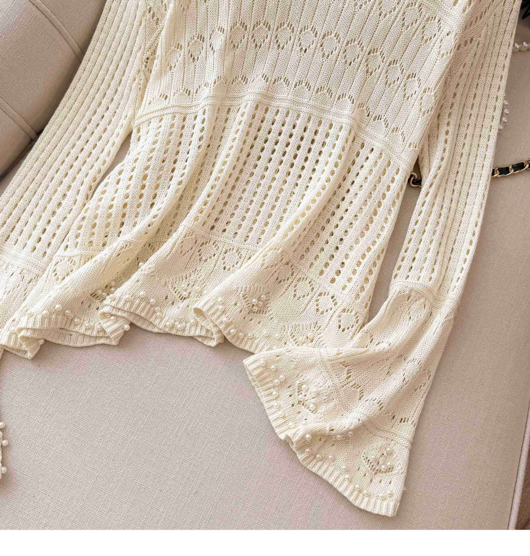 Conjunto de dos piezas de estilo fragante pequeño nuevo de principios de otoño 2025 con camisa de punto de manga larga con bocina hueca y media falda, conjunto de moda
