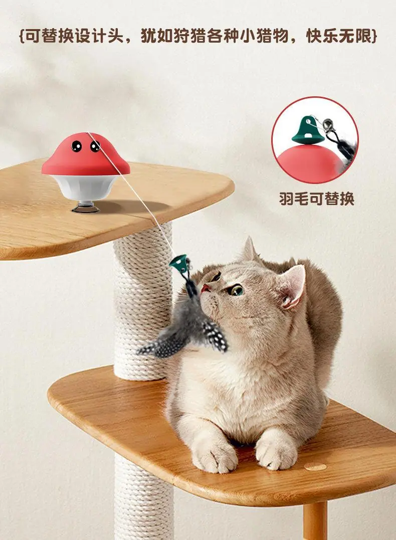 Juguete para Gato Varita Teaser Auto-Juego Alivio del Aburrimiento con Ventosa Cabeza de Hongo Pluma Mascota Gatito Juguetón Suministros para Gatito Modelo