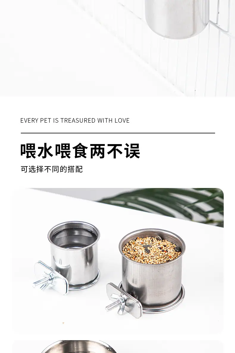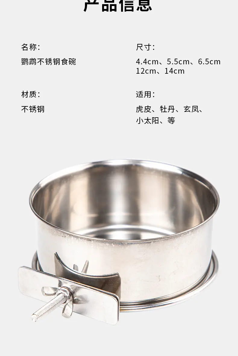Loro Acero Inoxidable Caja de Comida para Pájaros Periquito Peonía Cacatúa Myna Tazón de Comida para Loro Taza de Comida Comedero Bebedero