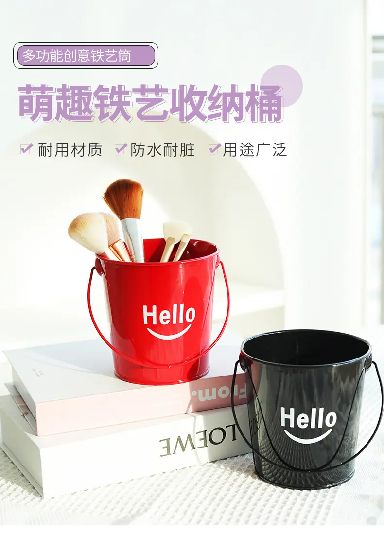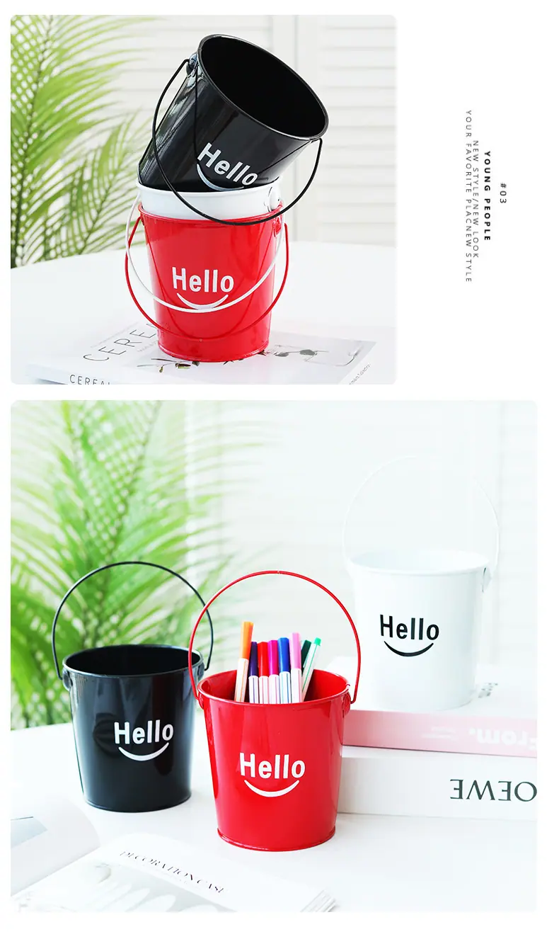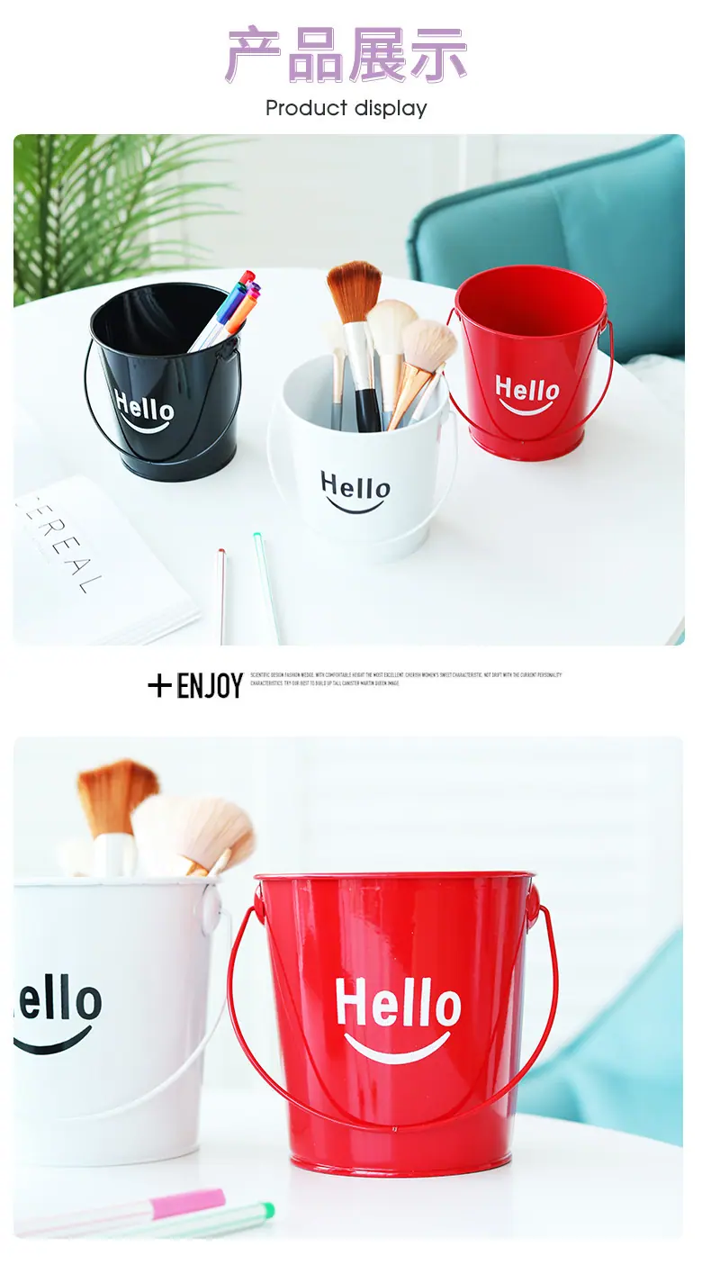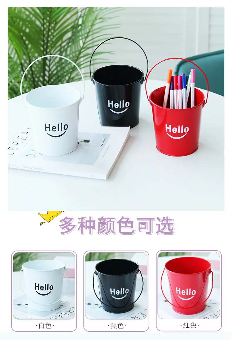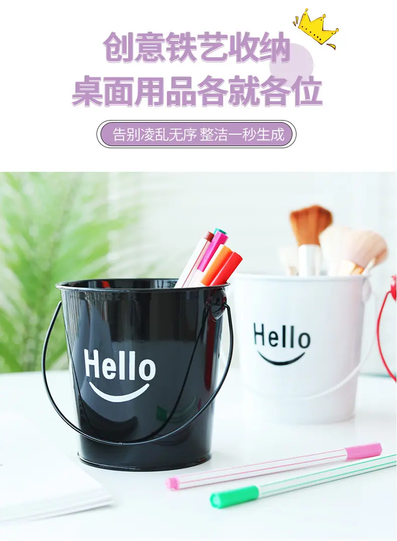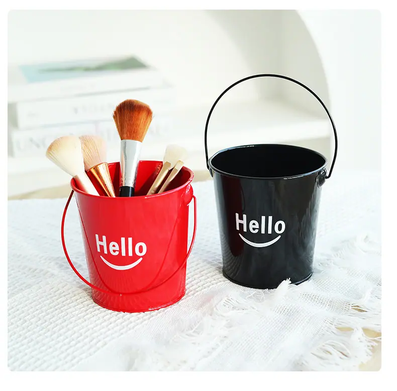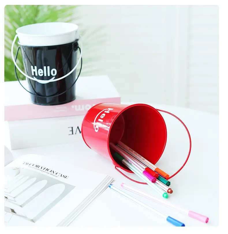 Cubo Mini de Hojalata Personalizado Cubo de Almacenamiento de Pinceles de Escritorio Cubo para Papas Fritas y Pollo Frito de Restaurante Occidental Cubo de Hielo Bar Smile