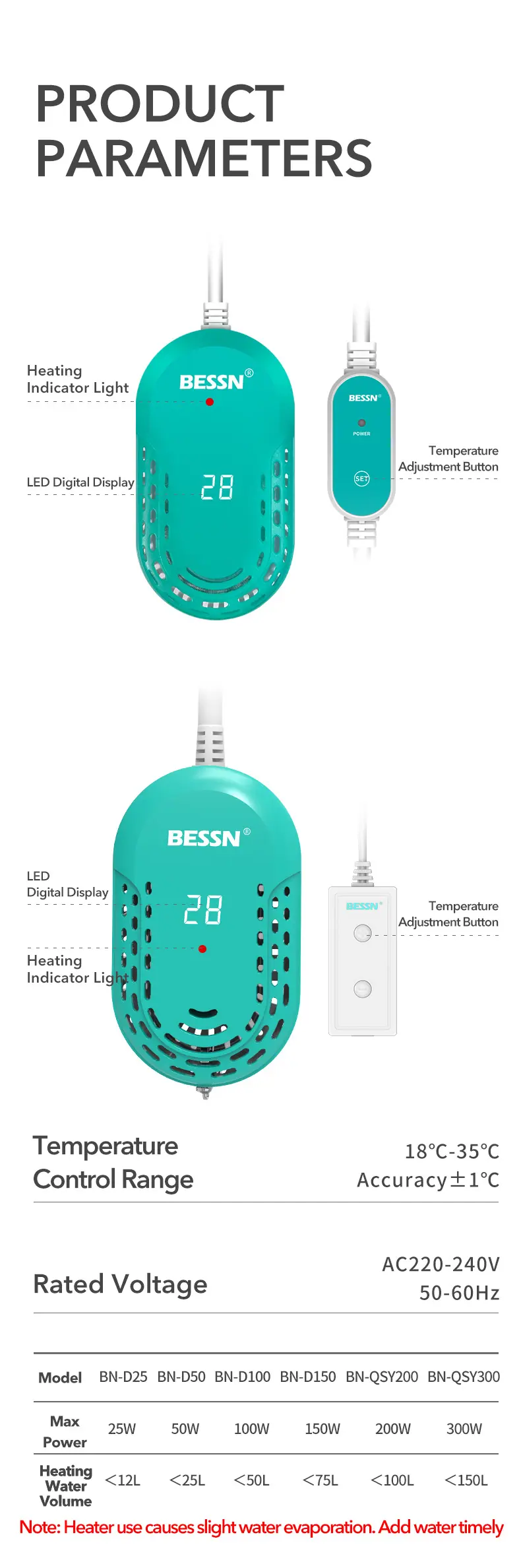 【New】25W, suitable for fish tanks within 25cm 【Ultra-low water level/Power off when out of water】, 【New】50W, s...