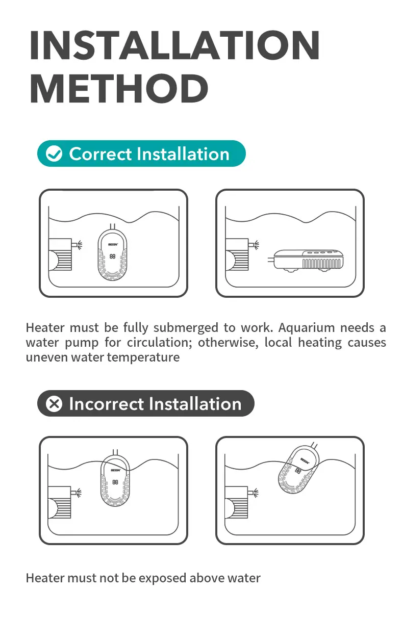 【New】100W, suitable for fish tanks within 50cm 【Ultra-low water level/Power off when out of water】