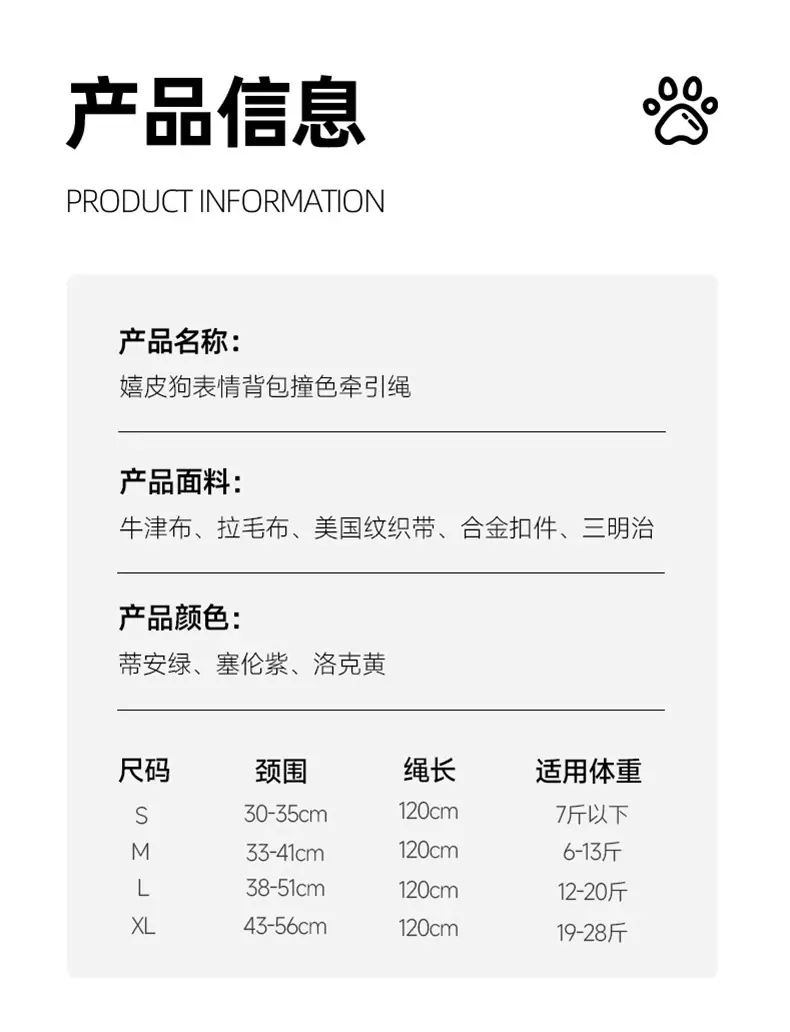 S (recommended weight within 3.5kg ), M (recommended weight within 3-6.5kg ), L (recommended weight within 6-1...
