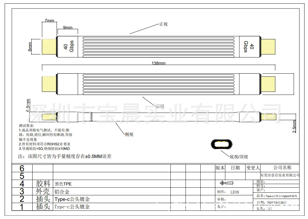 Typec male to Typec female 40bps flexible board cable, Typec male to Typec male 40bps flexible board cable