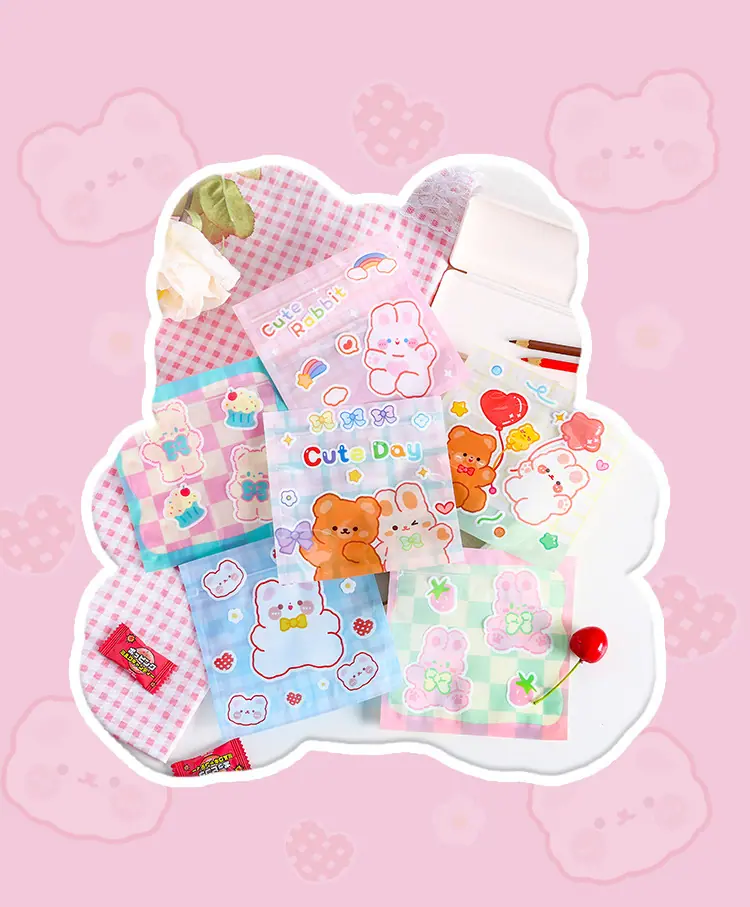 Bolsa Ziplock de Dibujos Animados Accesorios Lindos Bolsa de Embalaje para Regalo de Regreso a Clases Bolsa Pequeña para Regalo Bolsa Transparente Sellada para Mascarilla