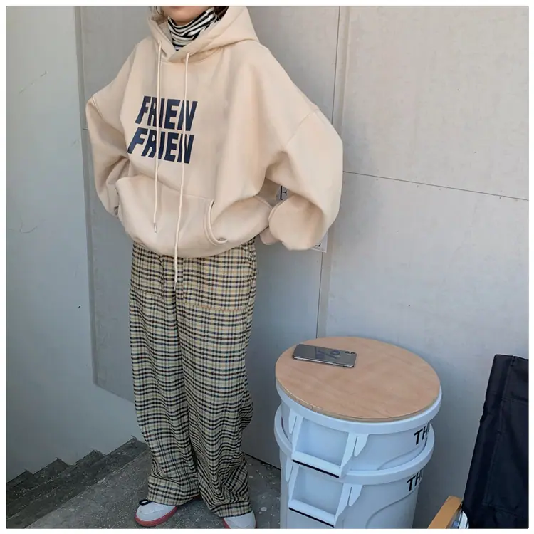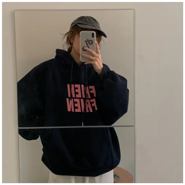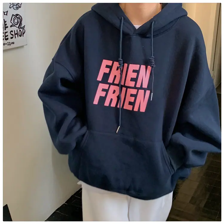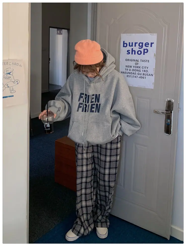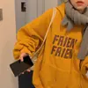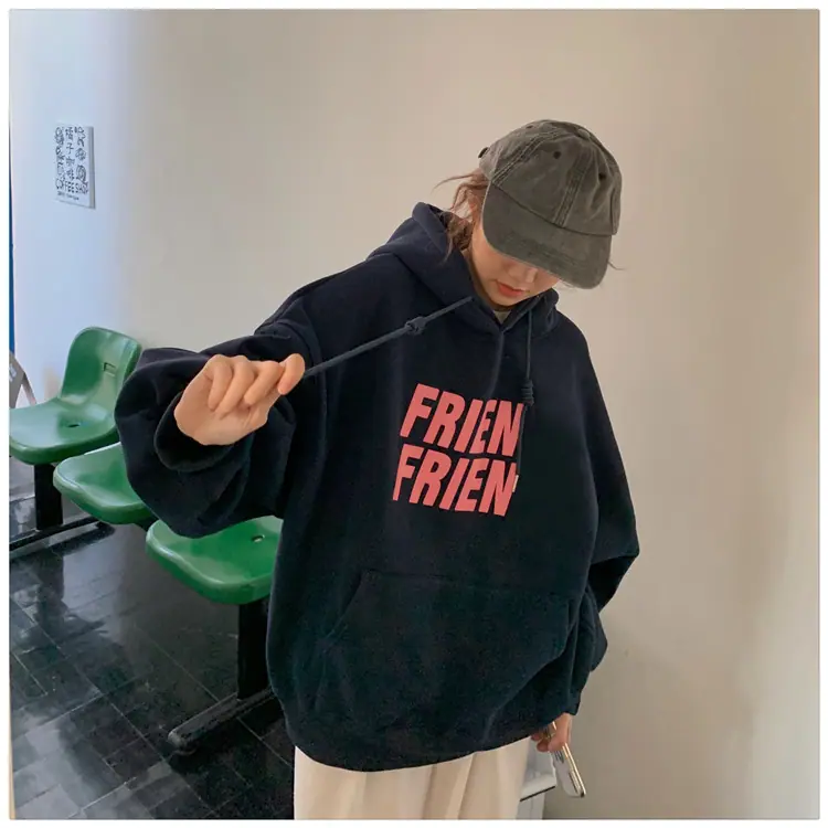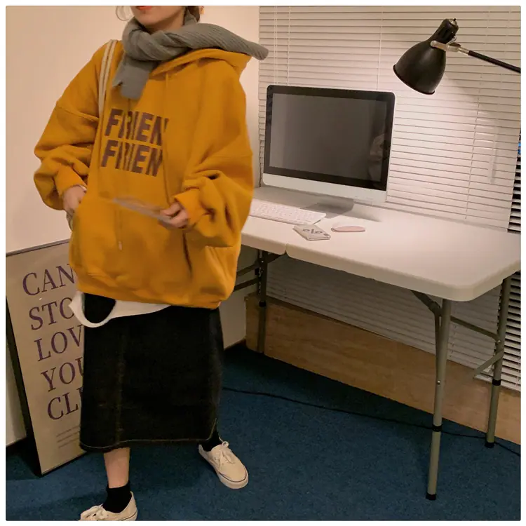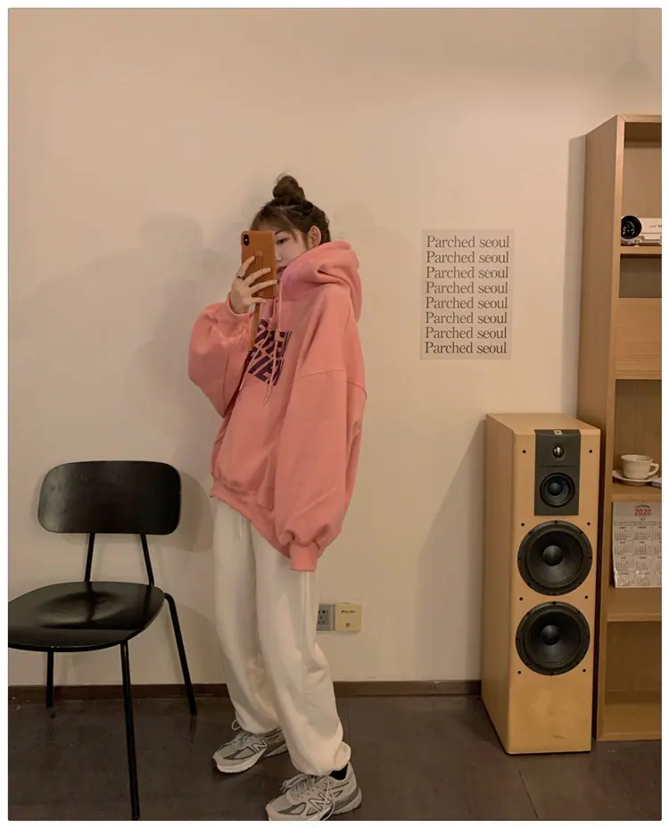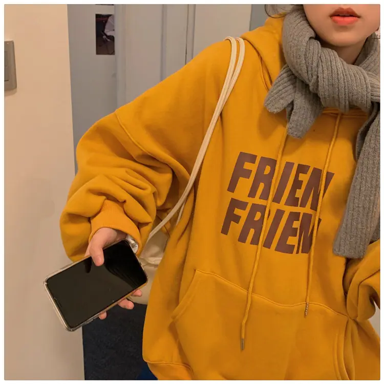 Sudadera de Mujer Gruesa con Forro Polar Nueva Otoño e Invierno Estampado de Alfabeto Japonés y Coreano Estudiante Holgada Talla Extra Jersey Manga Larga con Capucha