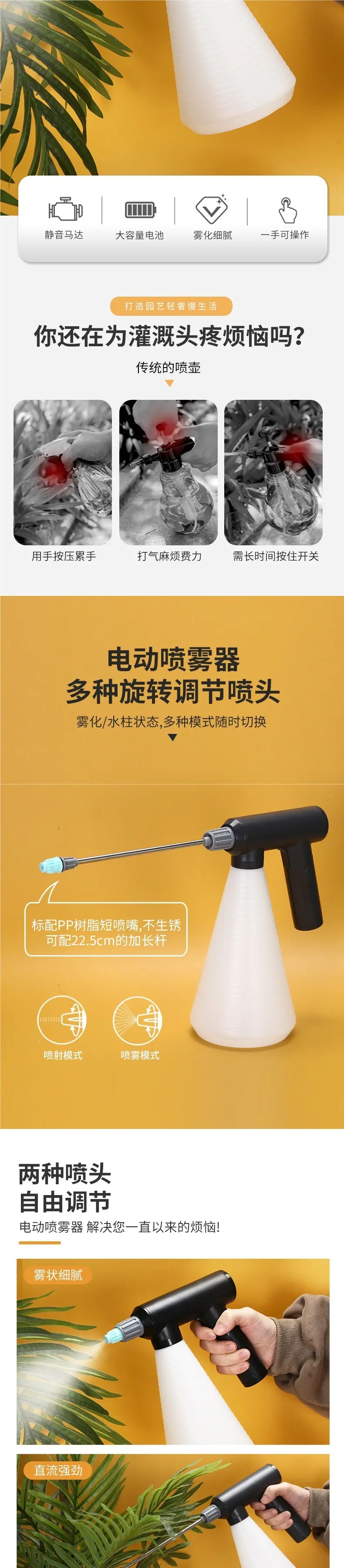 Pulverizador Eléctrico de Atomización Ultrafina Desinfección de Pesticidas Botella Pequeña de Spray Pistola de Agua Multifunción Regadera para Jardín Horticultura