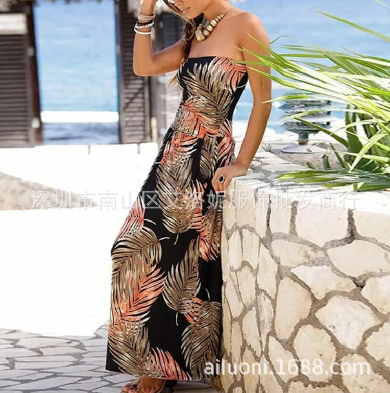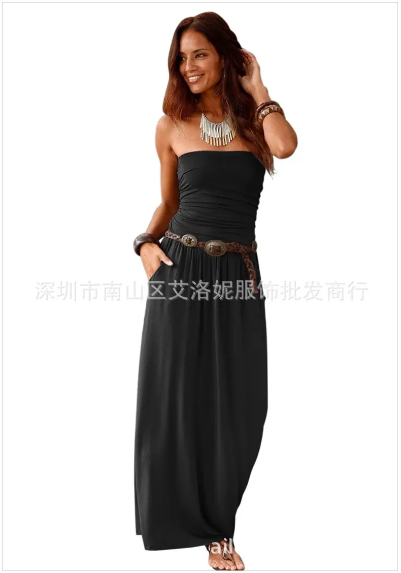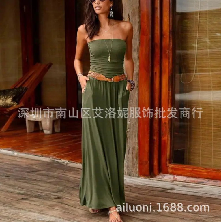 2020 Verano Nuevo Europeo y Americano para Mujer Strapless Sin Mangas Hombro Suelto Vestido Largo