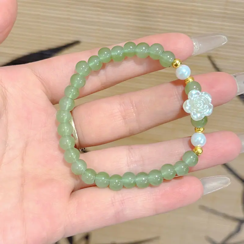 Nueva Pulsera Camelia Verde Madera Pulsera de Cuentas Diseño de Nicho de Aspecto Elegante Regalo para Estudiantes para Parejas y Mejores Amigos
