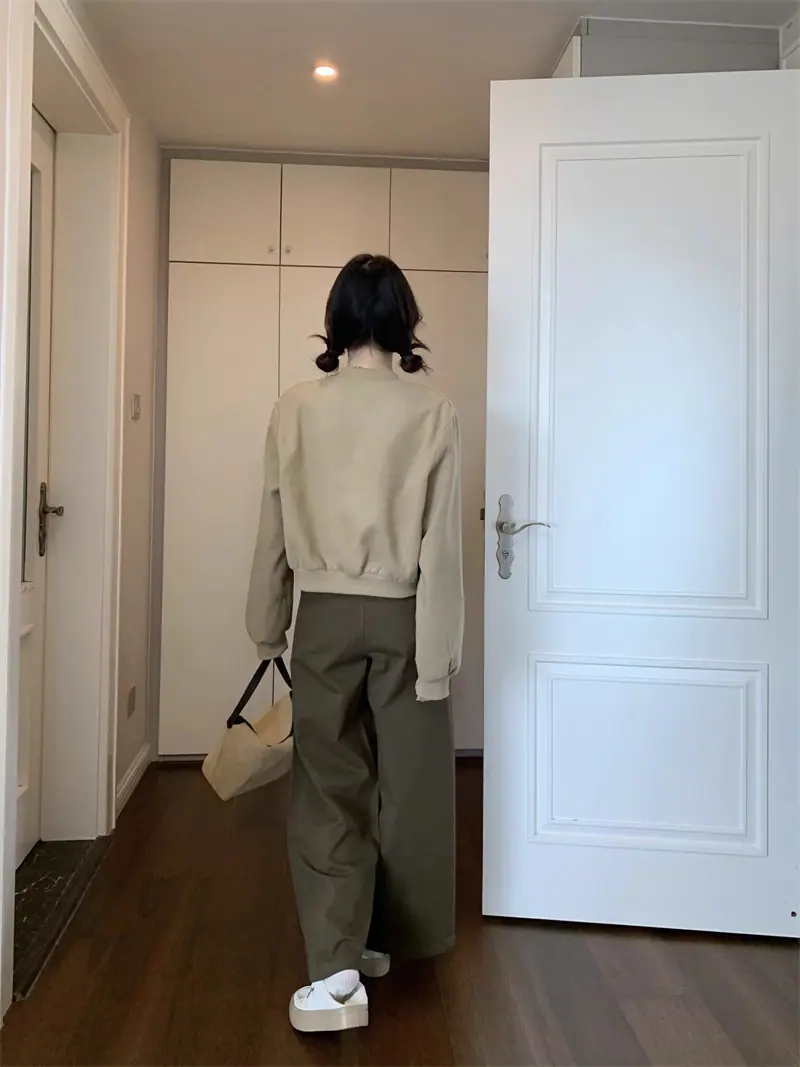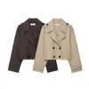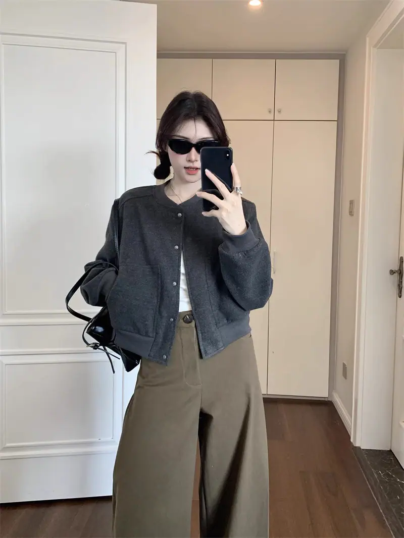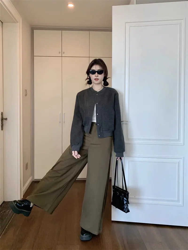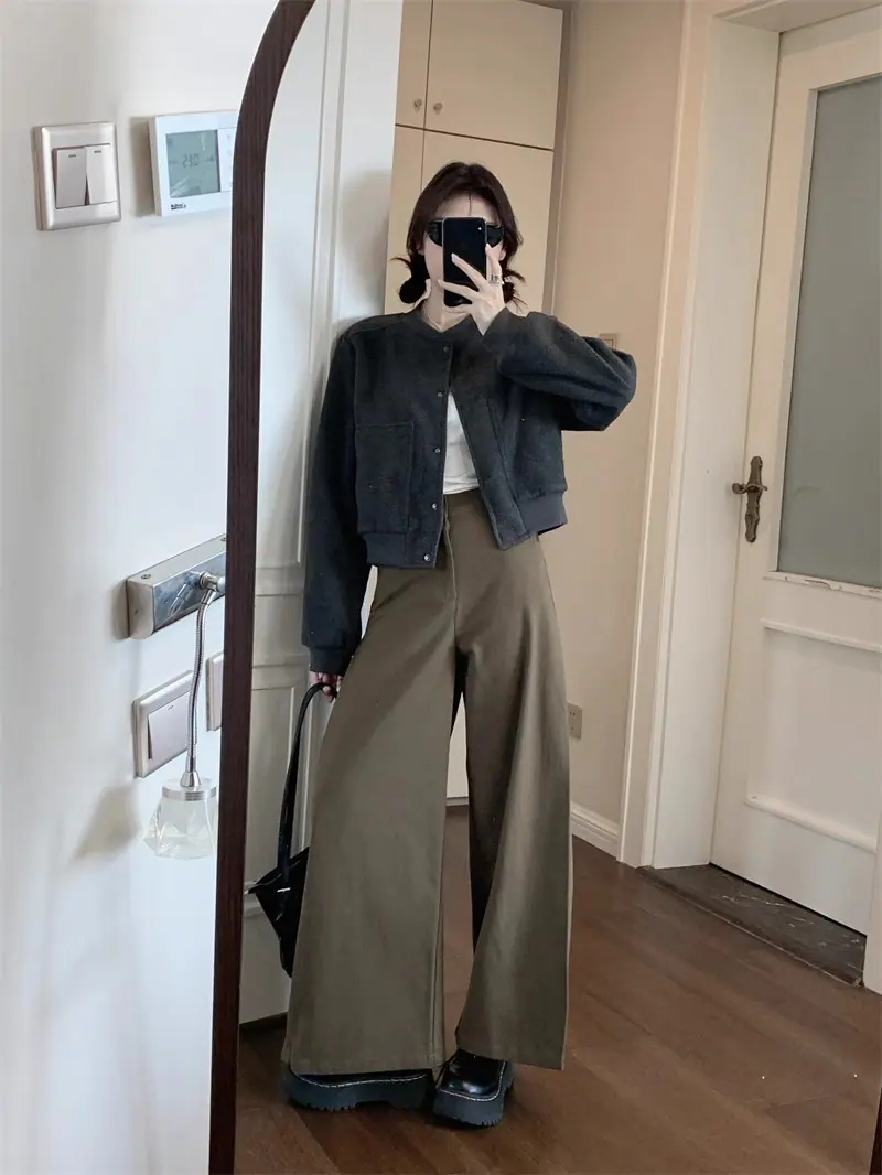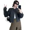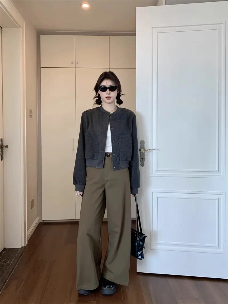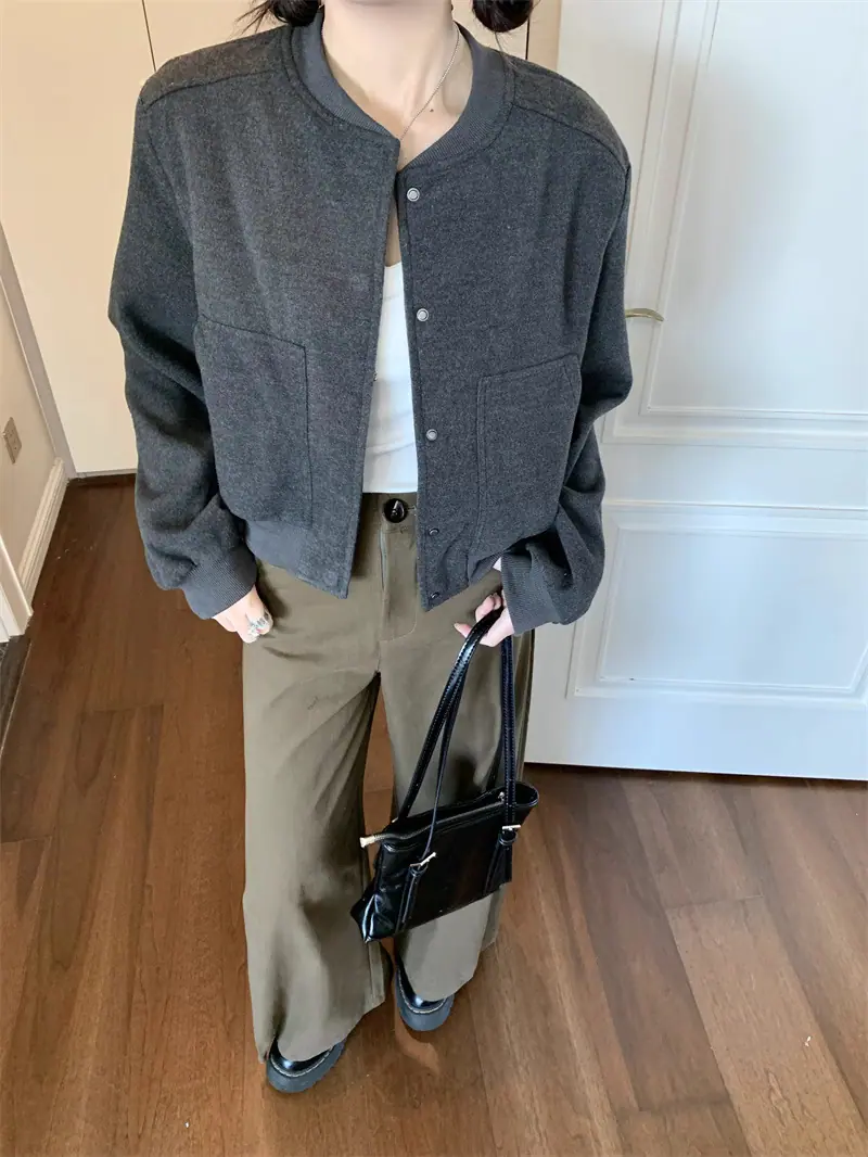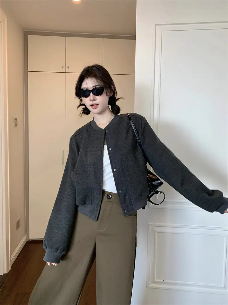 Traje de béisbol caqui de lana abrigo corto para mujer primavera 2025 nuevo estilo pequeño corto de alta gama chaqueta elegante