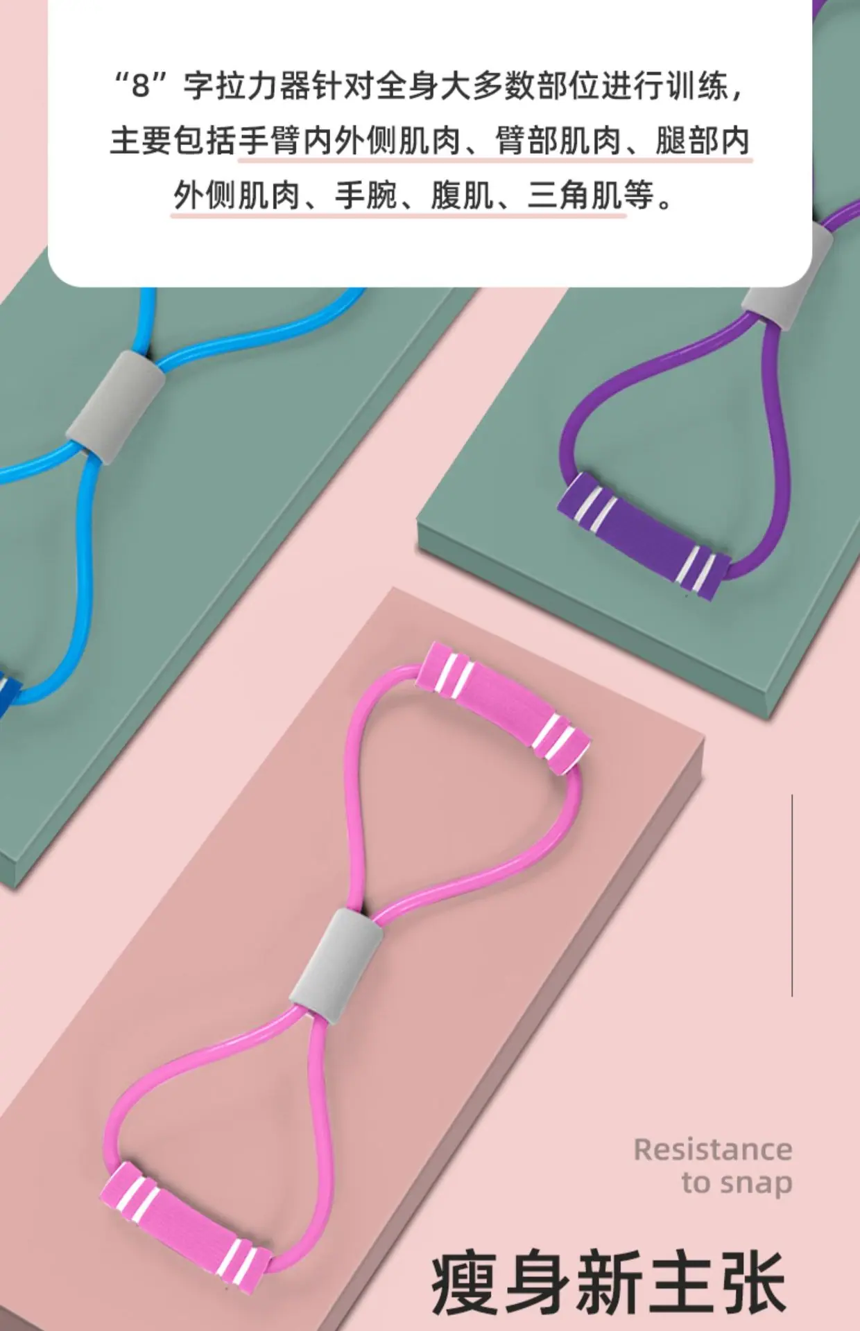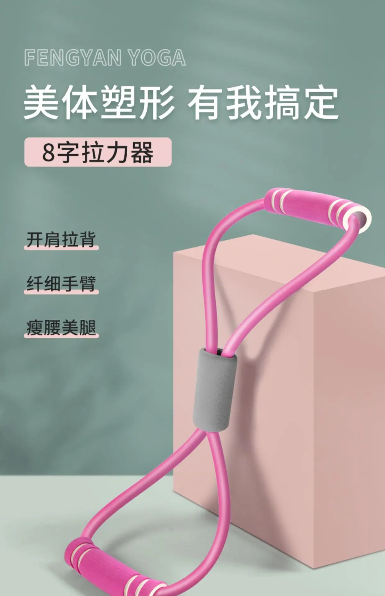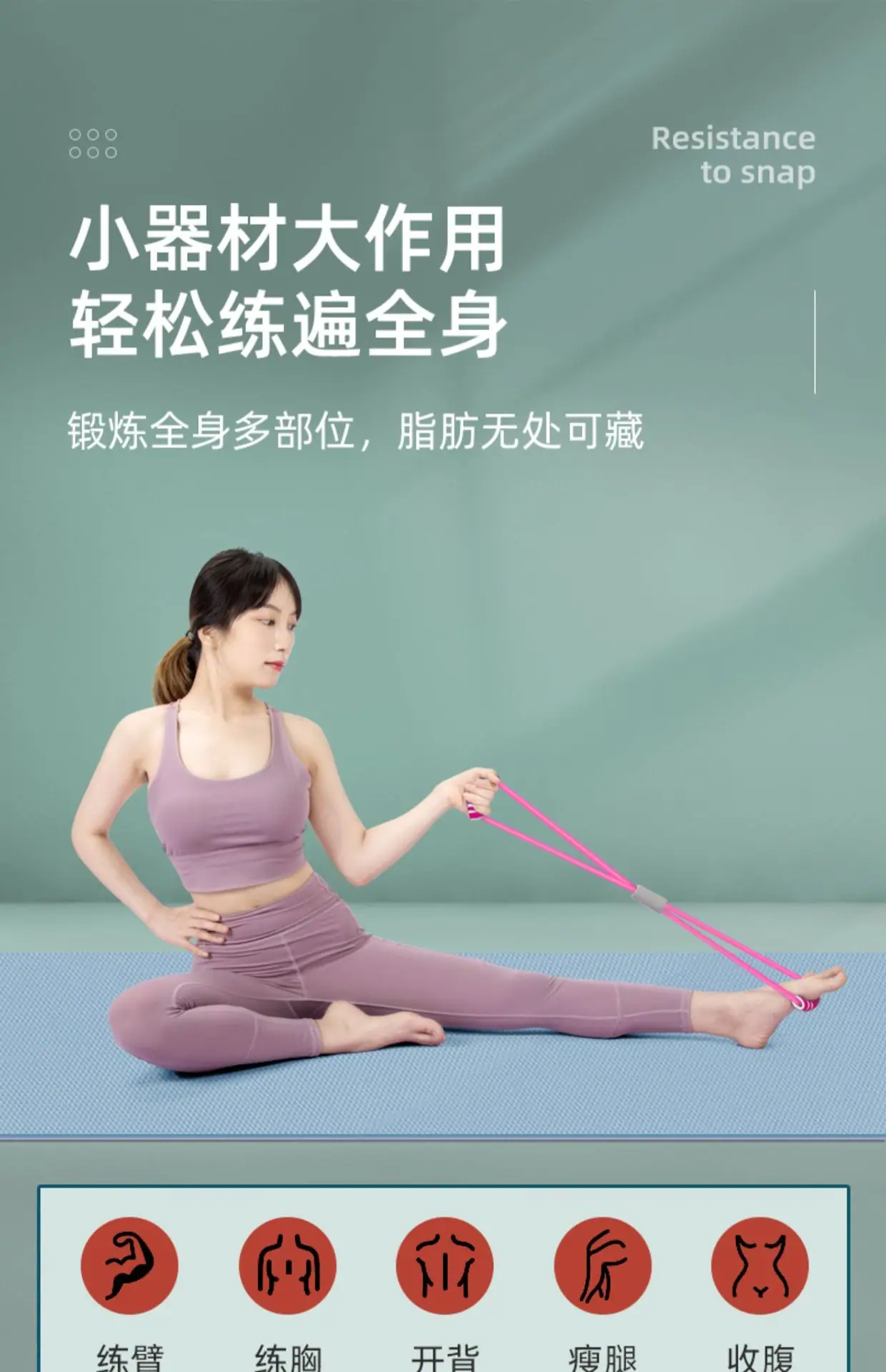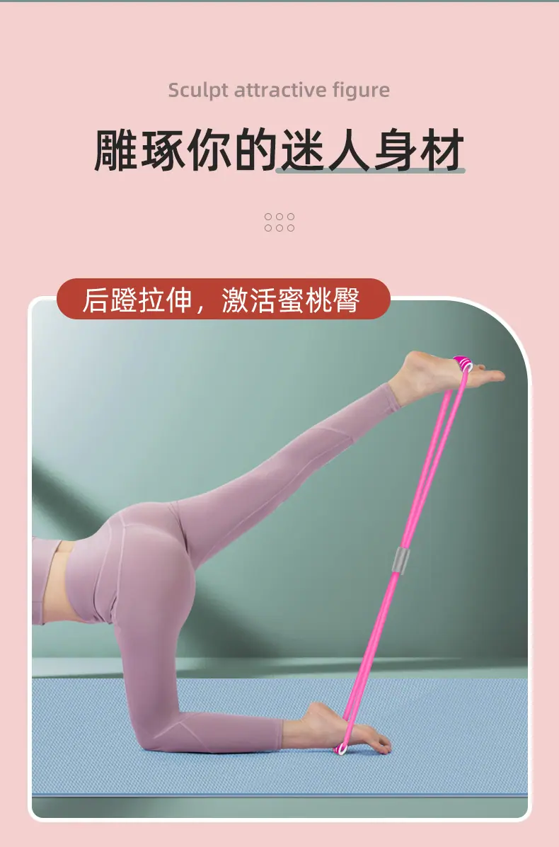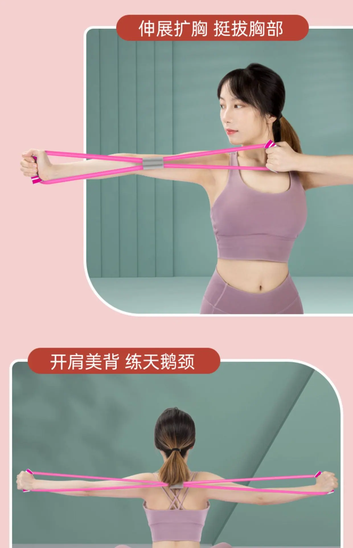 Tensor en forma de 8 para fitness en casa para mujeres, cinturón elástico, entrenamiento de yoga, cuerda para músculos de hombro y abdominales, cuerda de ejercicio para adelgazar el cuerpo con 8 aberturas