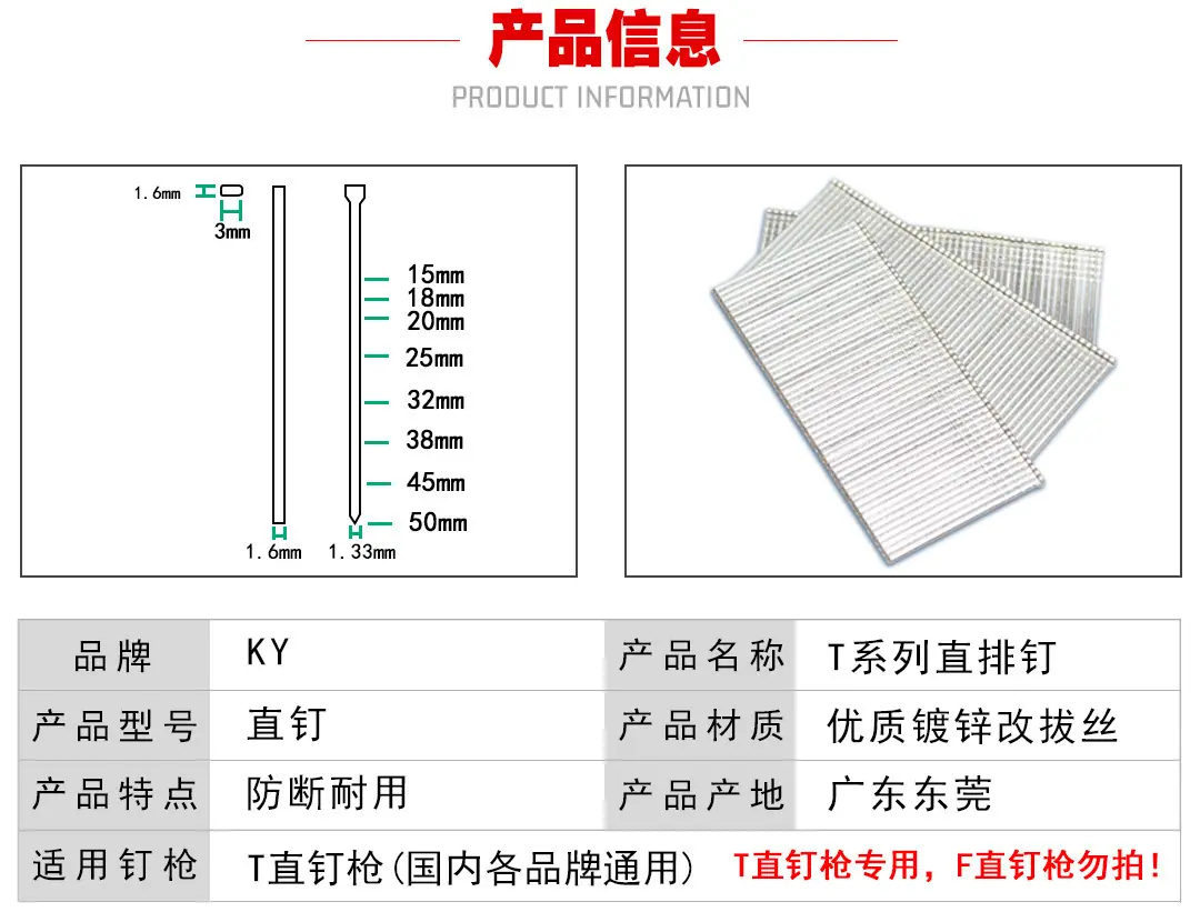 | T64(Solo para clavadoras neumáticas extranjeras) | ≈64mm | 2500 piezas | 18 cajas |