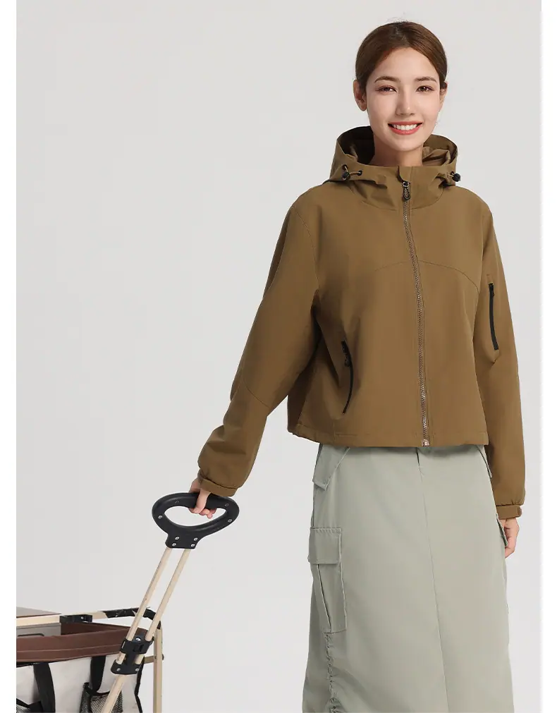Cortavientos de una sola capa para mujer para primavera y otoño, para exteriores, deportivo casual, corto, resistente al viento, impermeable, traje de montañismo