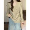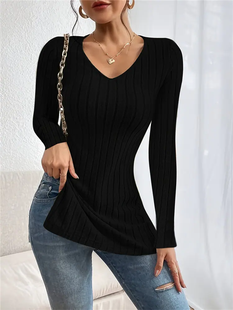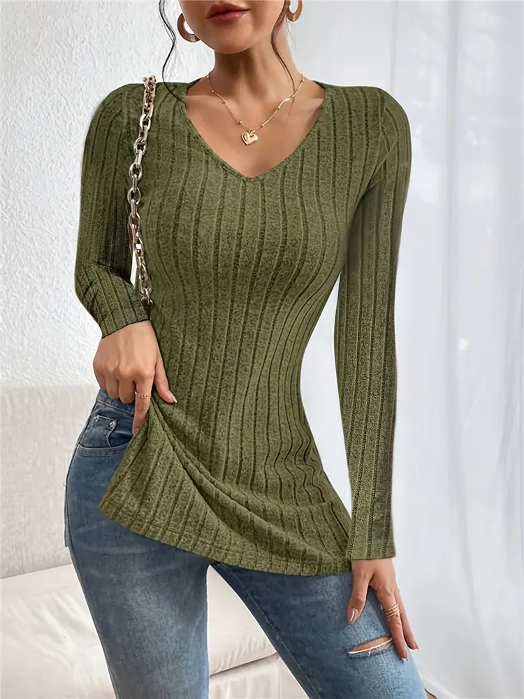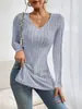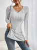 Amazon otoño e invierno color sólido talla grande para mujer top de otoño e invierno cuello en V manga larga camiseta de punto cepillado