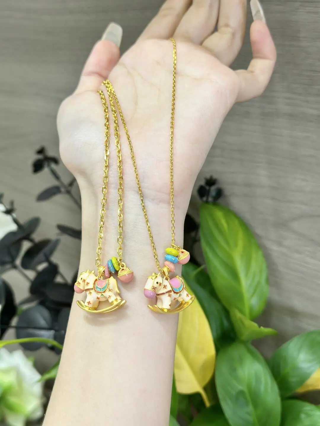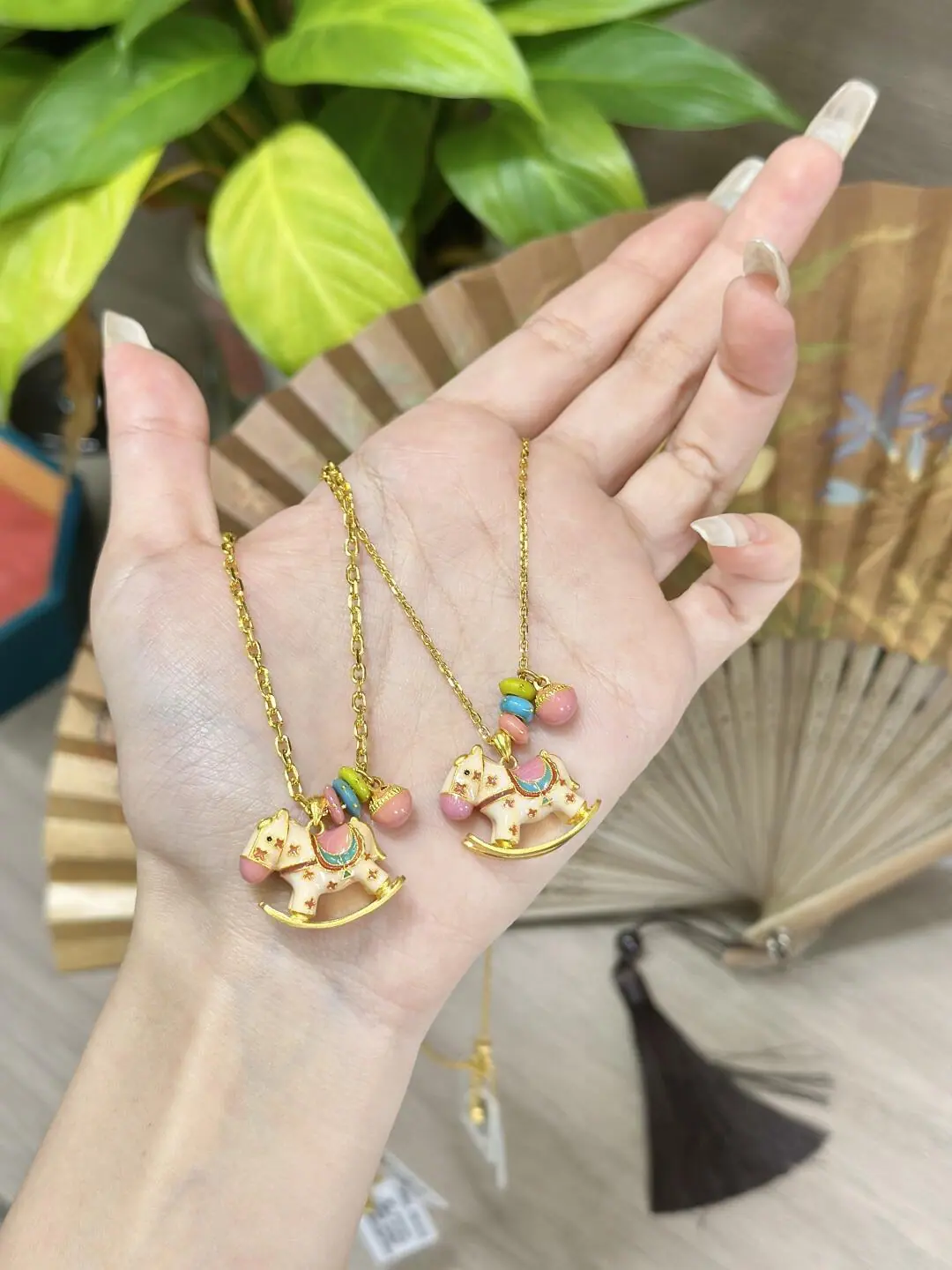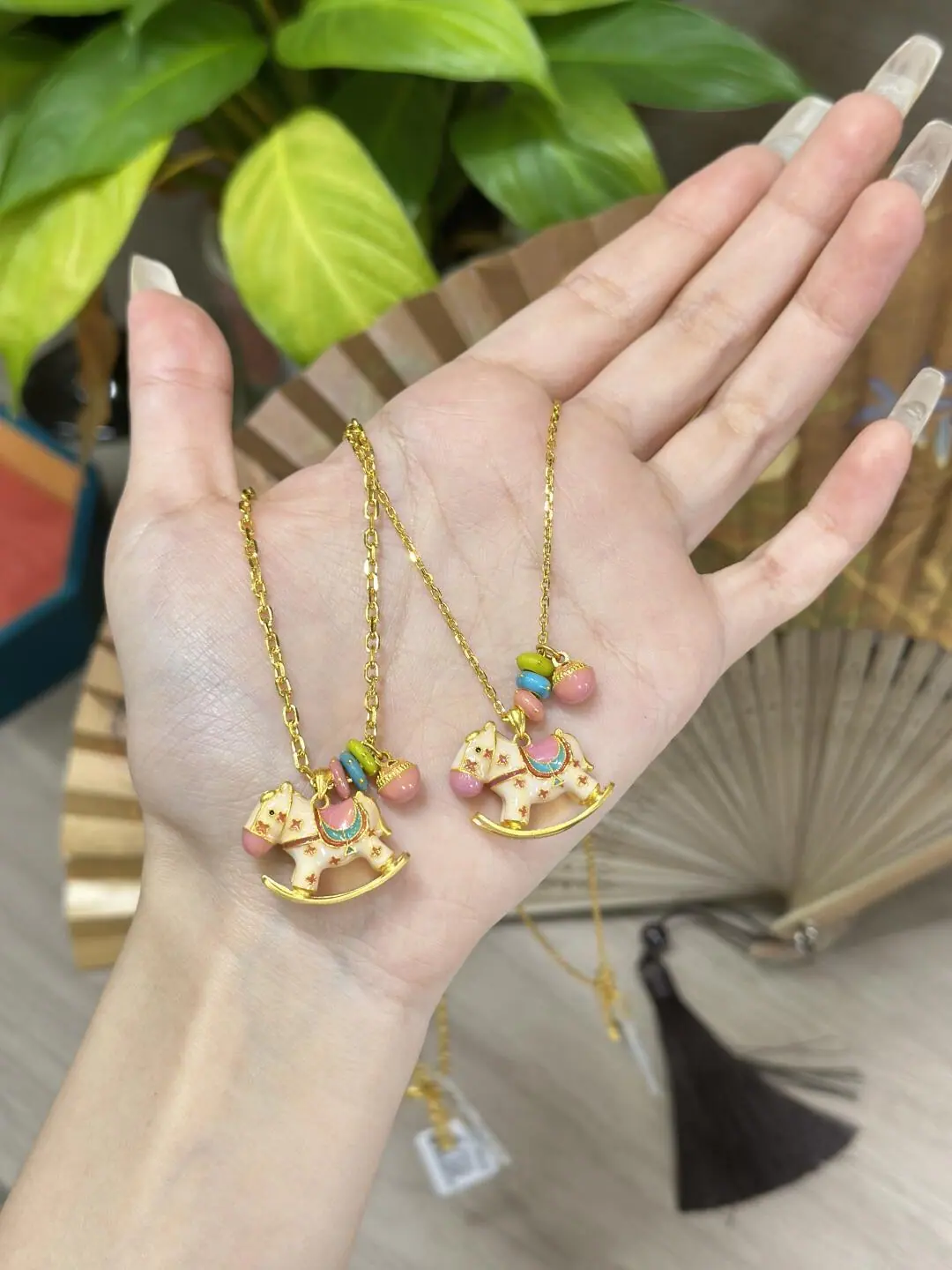 Collar de Caballo de Madera Pequeño Color Esmalte Color Oro Antiguo Diseño Exquisito Moda Elegante Versátil Simple Nicho