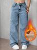 Jeans Transfronterizos Amazon Aliexpress Ropa Europea y Americana Jeans con Felpa Otoño e Invierno Nueva Moda Tendencia Holgada