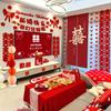 Set de Decoración de Habitación de Boda para el Nuevo Hogar de los Novios Sala de Estar Sofá Pared de Fondo de TV con Guirnalda de Personajes Felices