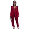 Pijama de Venta Caliente de Ebay para Mujer Primavera y Verano Imitación Seda Manga Larga Seda Helada Traje Cárdigan Talla Grande Europea y Americana Ropa de Casa Delgada