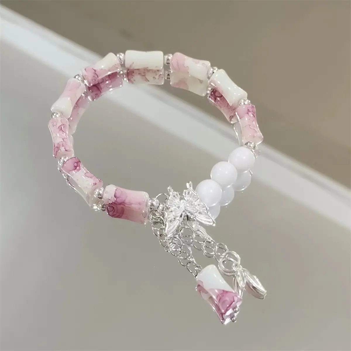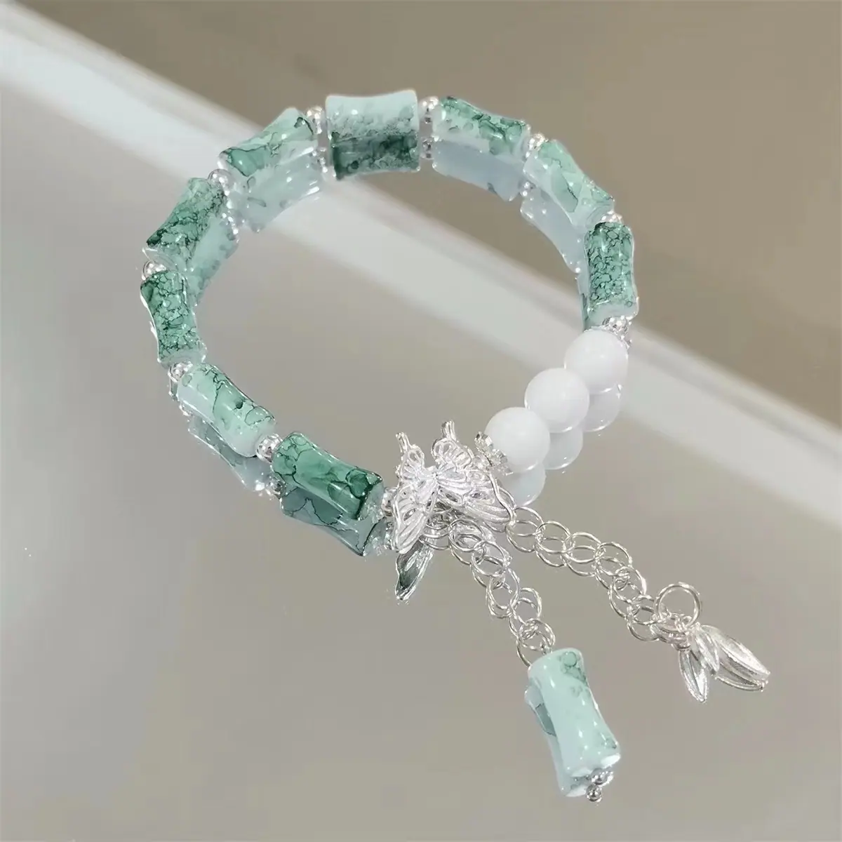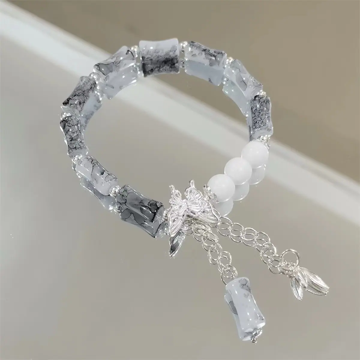Libro Rojo Mismo Estilo Transfronterizo Nuevo Estilo Chino Tinta de Bambú Mariposa Pulsera Cool Versátil Mejor Amigo Aterrizaje Estudiante Pareja Venta al por mayor