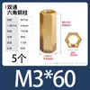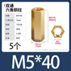 Tuerca de columna de cobre hexagonal de doble paso, soporte de columna de aislamiento hexagonal hueco de latón recto, perno de computadora de monitoreo de columna M3M5