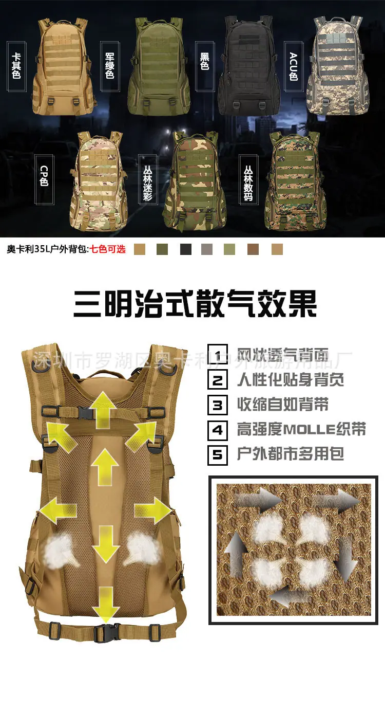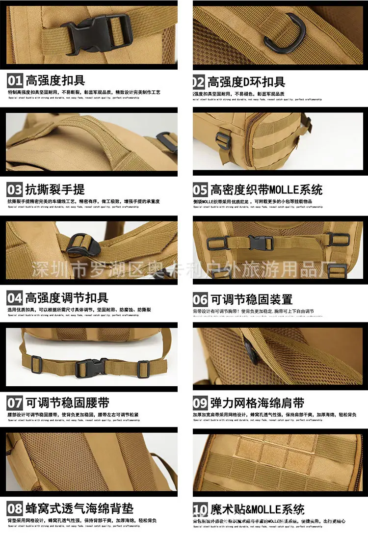 Fábrica de productos para turismo al aire libre de Shenzhen Okalies un diseñador, fabricante y vendedor profesional de mochilas para exteriores, riñoneras, perneras, vejigas de hidratación, cinturones, chalecos, ropa de camuflaje y otros productos. Cuenta con un sistema de gestión de calidad completo y científico.Fábrica de producción propia, varios empleados veteranos tienen una rica experiencia en diseño y producción en el campo de los productos para exteriores, todos los materiales son seleccionados personalmente y estrictamente controlados por el Sr. Tan, el jefe, dependemos del servicio, la consideración y otras ventajas para ocupar el mercado, mejorando constantemente en el diseño del producto, el embalaje y la calidad, satisfaciendo a un gran número de clientes, y los productos se venden lejos en el extranjero. Nos especializamos en suministrar una gran cantidad de productos en stock para la empresa nacional Yi, tiendas físicas, tiendas en línea nacionales y extranjeras, suministros para exteriores para aficionados militares y emprendedores de la industria de bolsos.