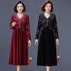 Moda 2025 Nuevo Vestido de Terciopelo para Mamá de Terciopelo Dorado Elegante con Empalmes de Longitud Media para Mujer Vestido Elegante Adelgazante