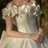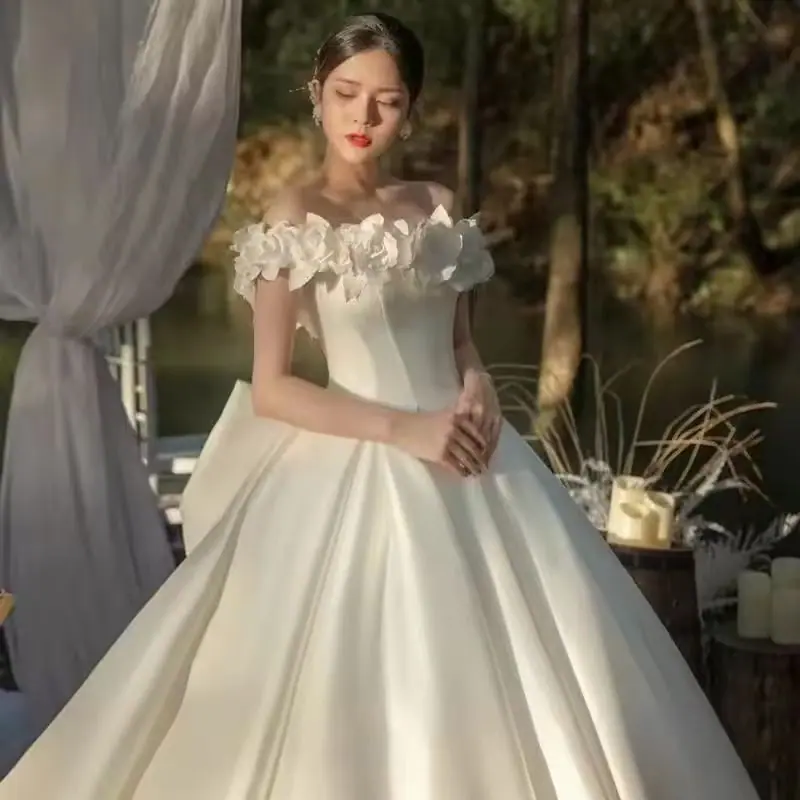 Vestido de Boda de Satén con Hombros Descubiertos 2024 Nuevo Estilo Nupcial Mori Elegante Cola Larga Vestido de Boda Largo
