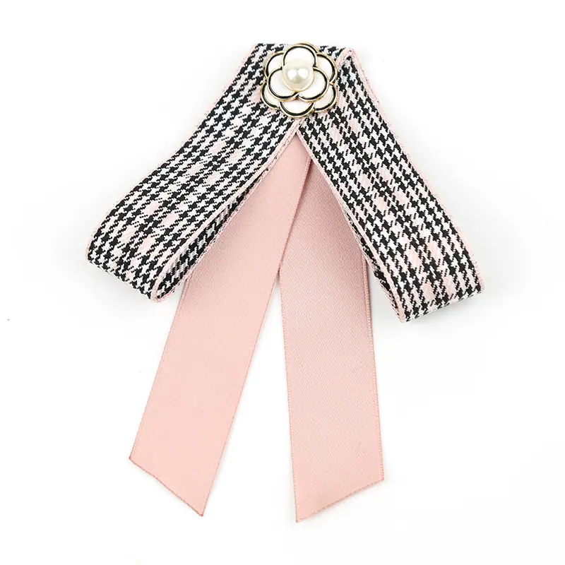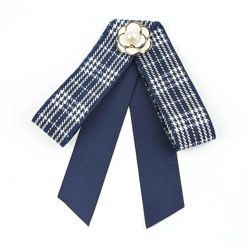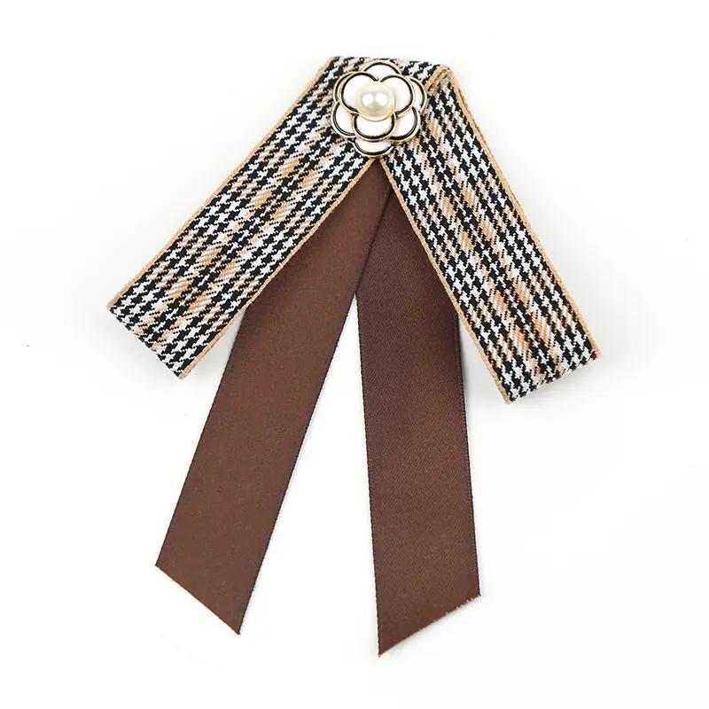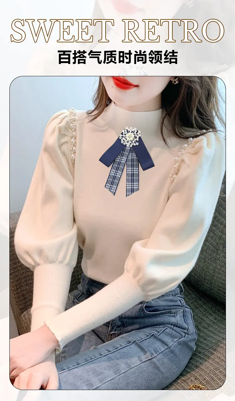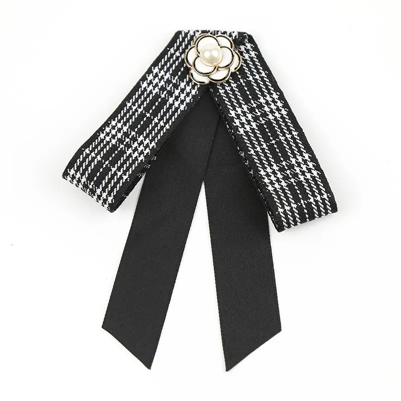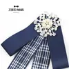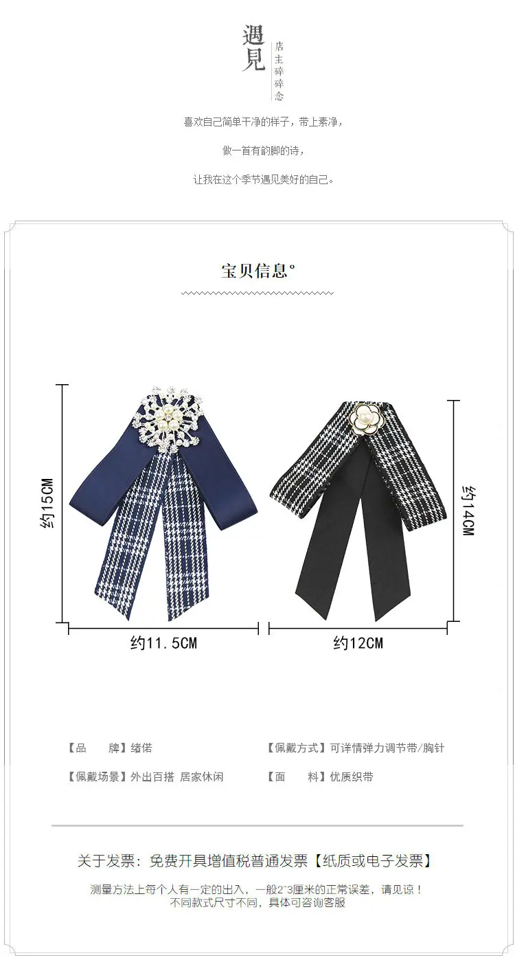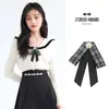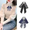 Camisa de Mujer Top con Lazo Decorativo a Cuadros Moda Cuello Flor Británico Coreano Estilo Academia Broche Lazo Accesorios