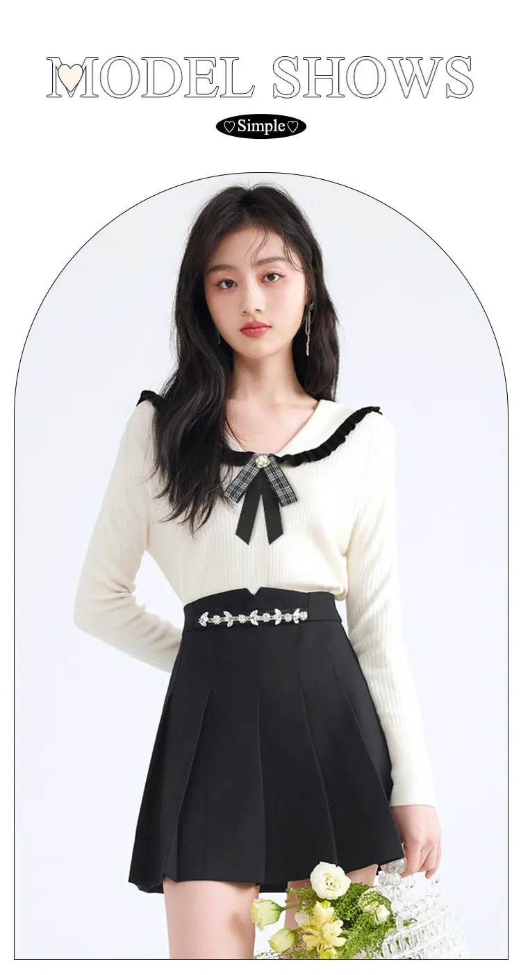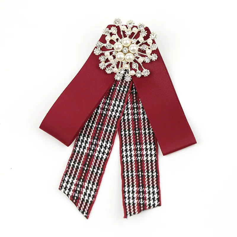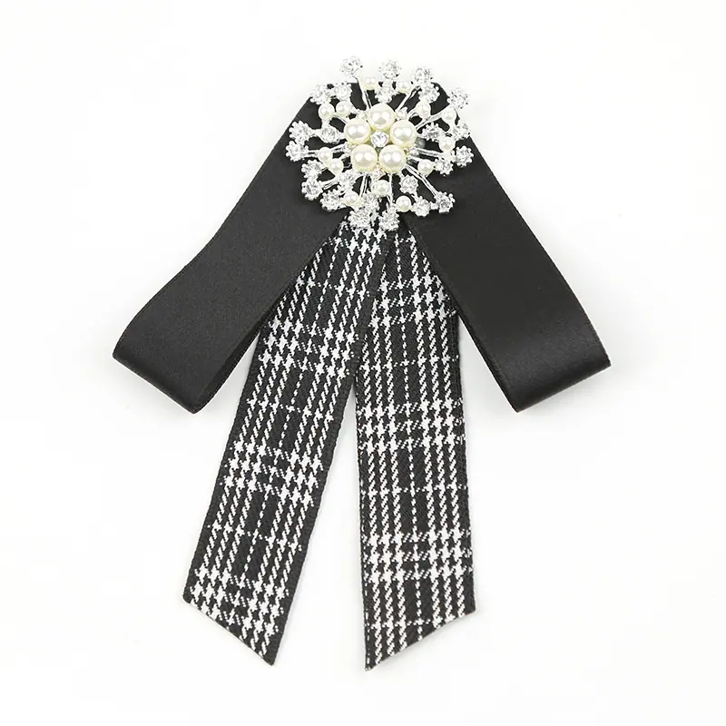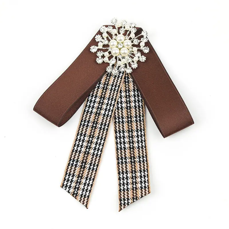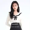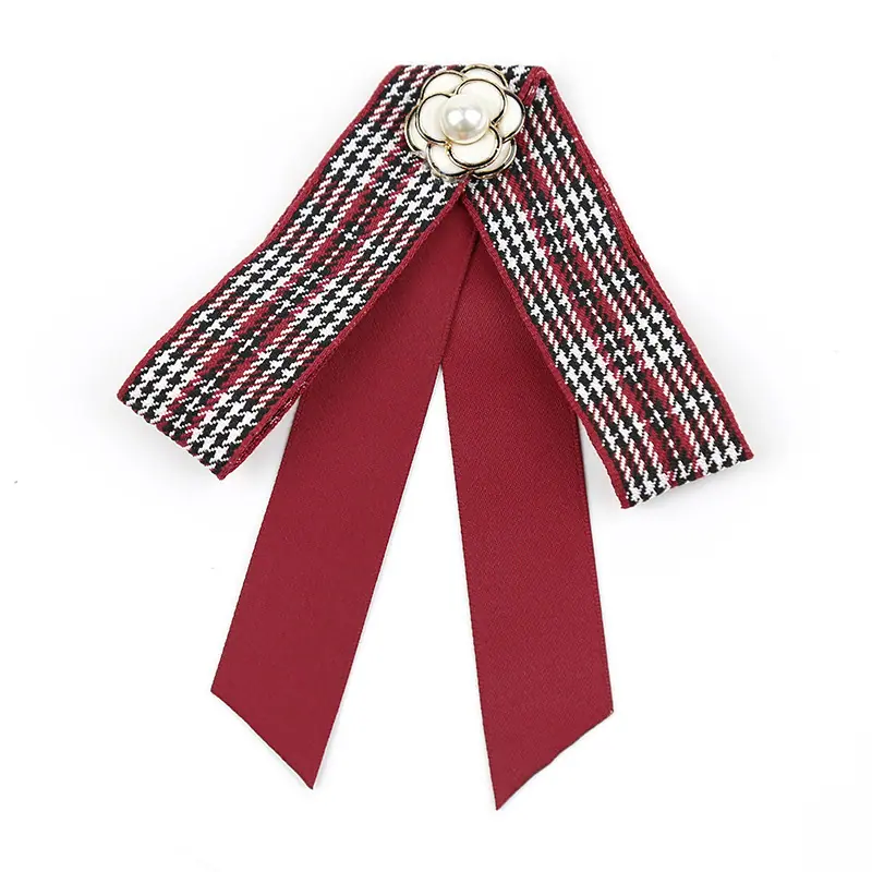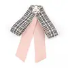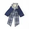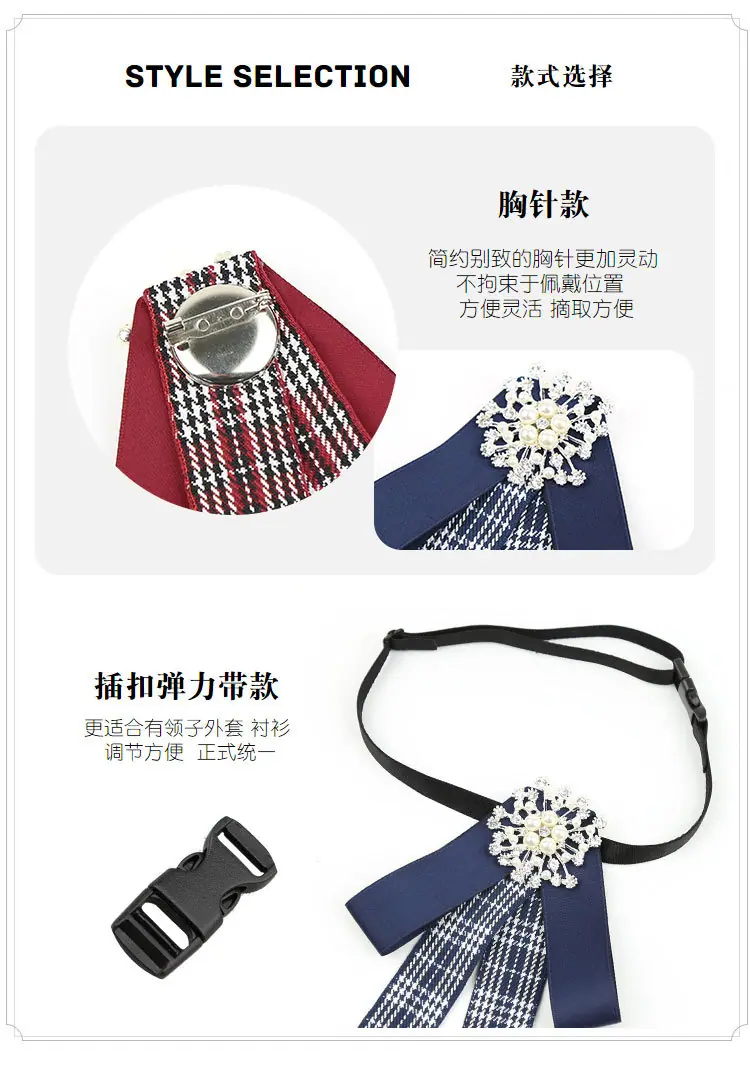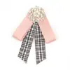 Camisa de Mujer Top con Lazo Decorativo a Cuadros Moda Cuello Flor Británico Coreano Estilo Academia Broche Lazo Accesorios