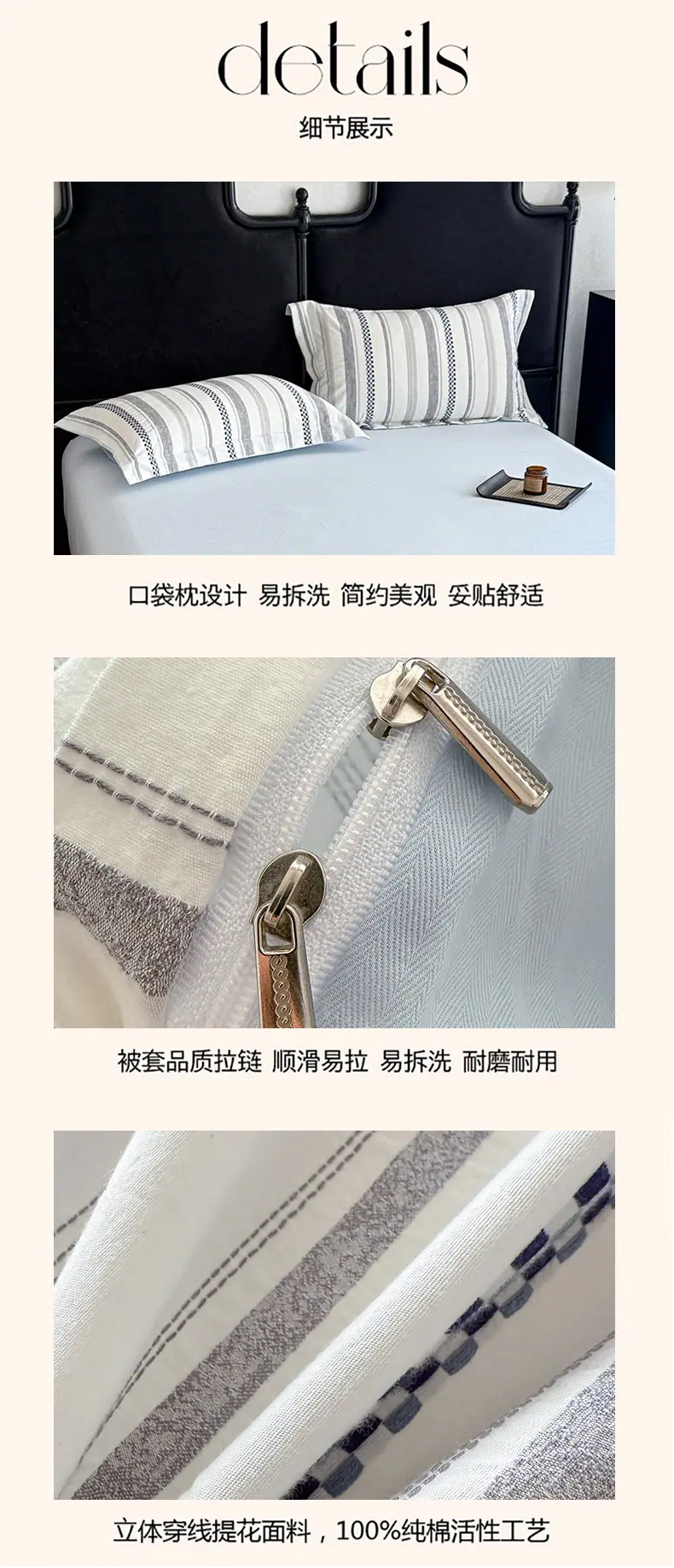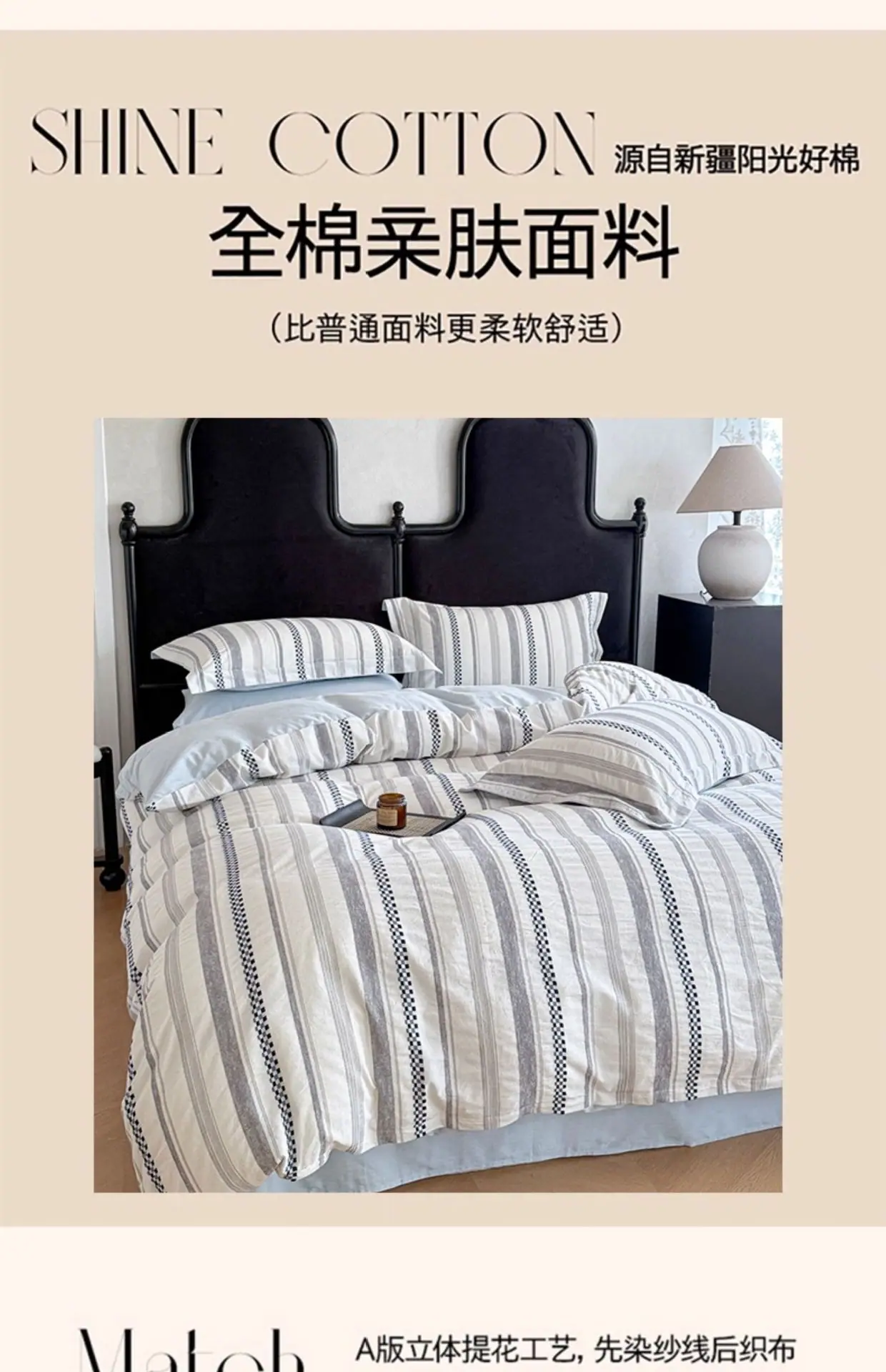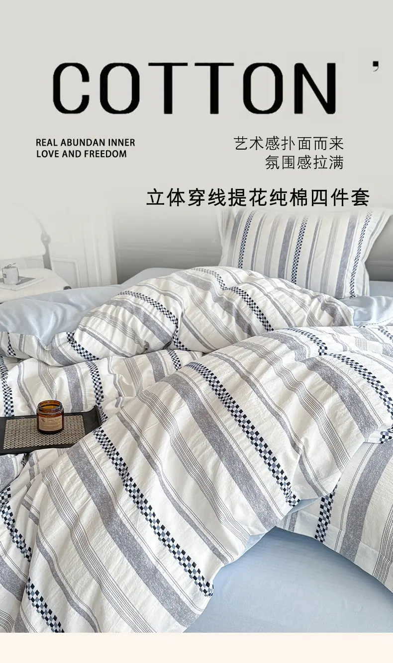 Juego de cuatro piezas de hilo tridimensional de algodón puro Ropa de cama Jacquard Funda nórdica Sábana sencilla Sábana ajustable Juego de tres piezas para dormitorio