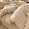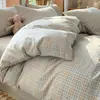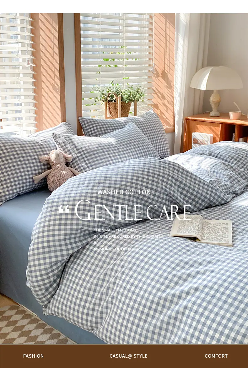 Algodón Puro Algodón Lavado Cuatro Piezas Simple Cama Sábanas Funda Nórdica Dormitorio Estudiantil 2025 Nuevo Juego de Cama Tres Piezas