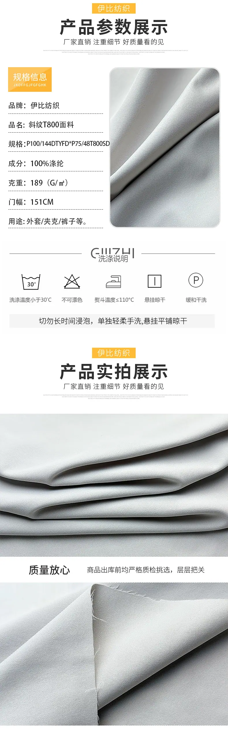 Pantalones de sarga T800 repelentes al agua, antiestáticos y con textura, tejido para camisa y gabardina