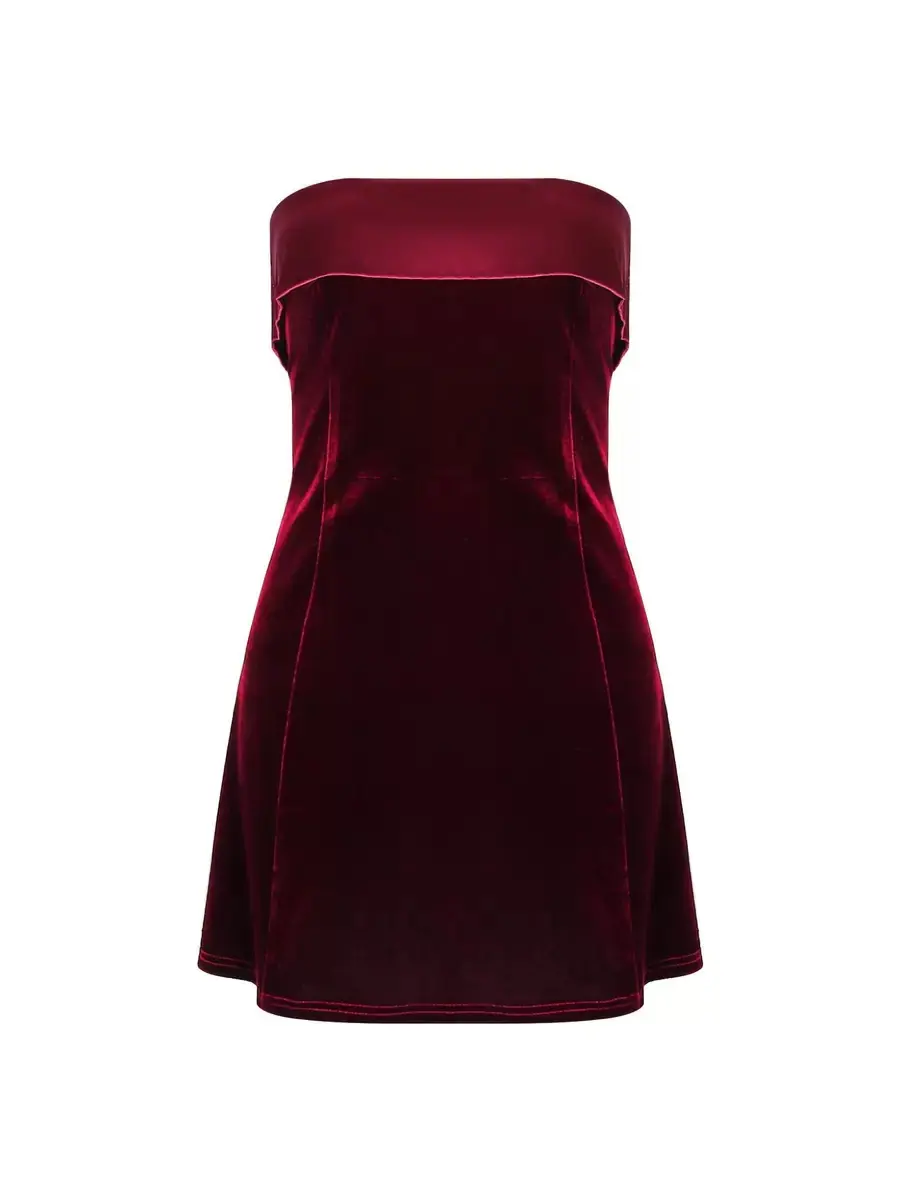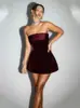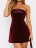 2025 Nuevo Ropa de Mujer Transfronteriza Europea y Americana Sexy Temperamento Fiesta Terciopelo Rojo Noble Ajustado Sin Espalda Vestido Corto
