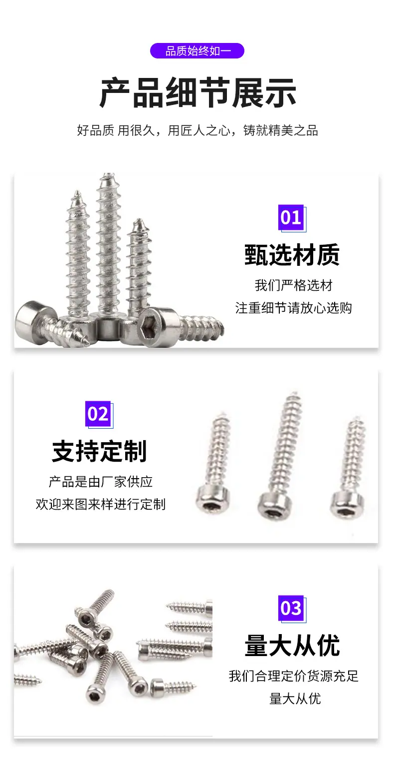 Tornillo de cabeza cilíndrica de acero al carbono niquelado con hexágono interior M2-M6HA tornillo autorroscante de cabeza de copa con hexágono interior tornillo electrónico