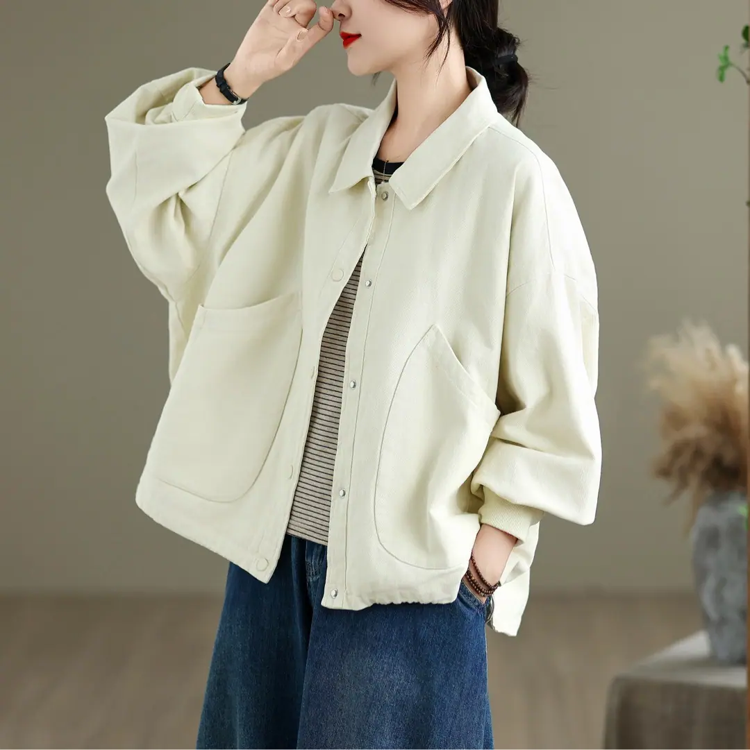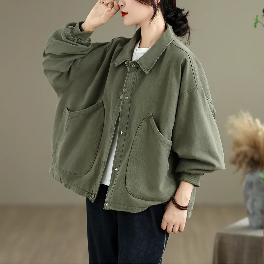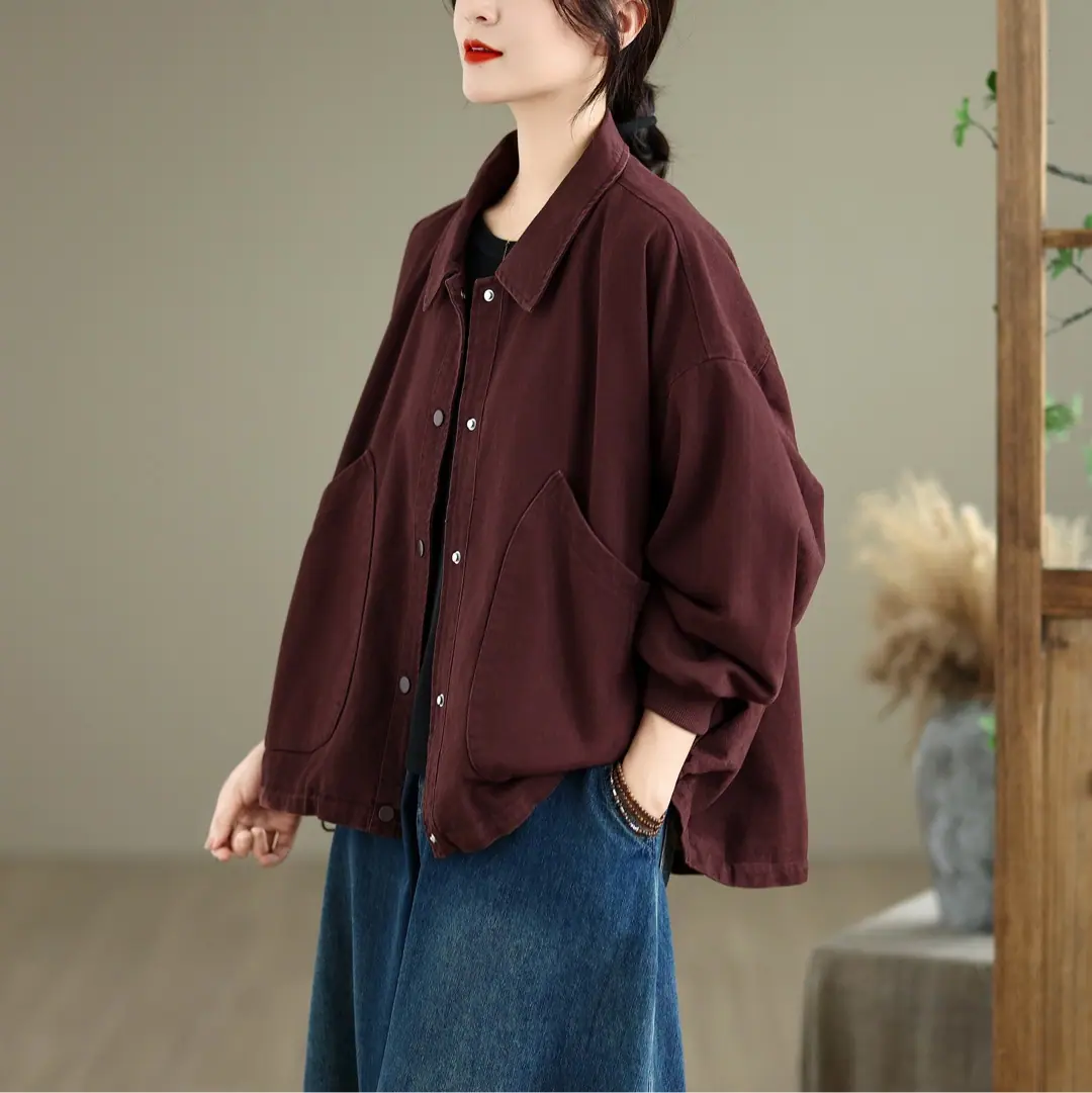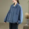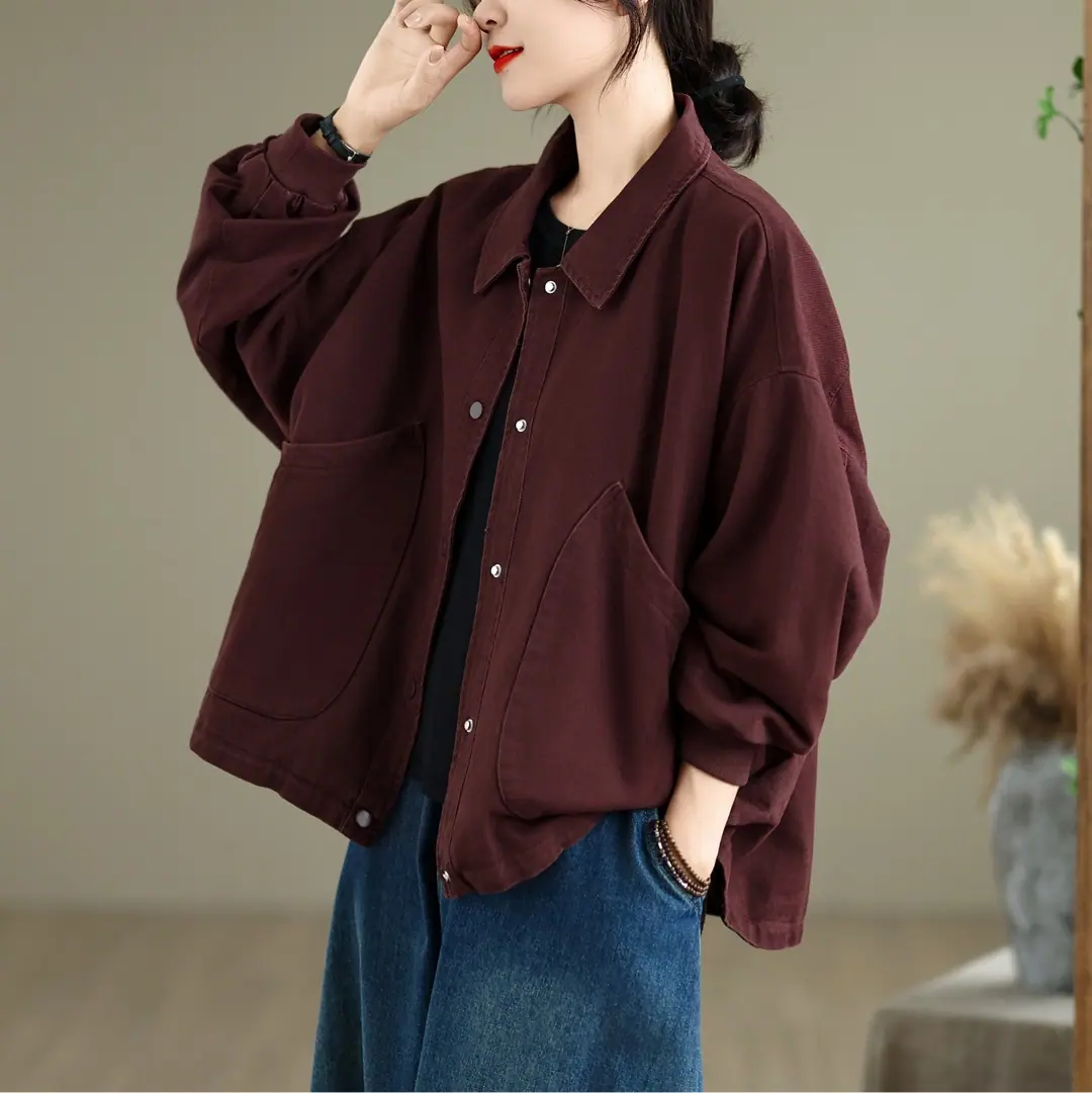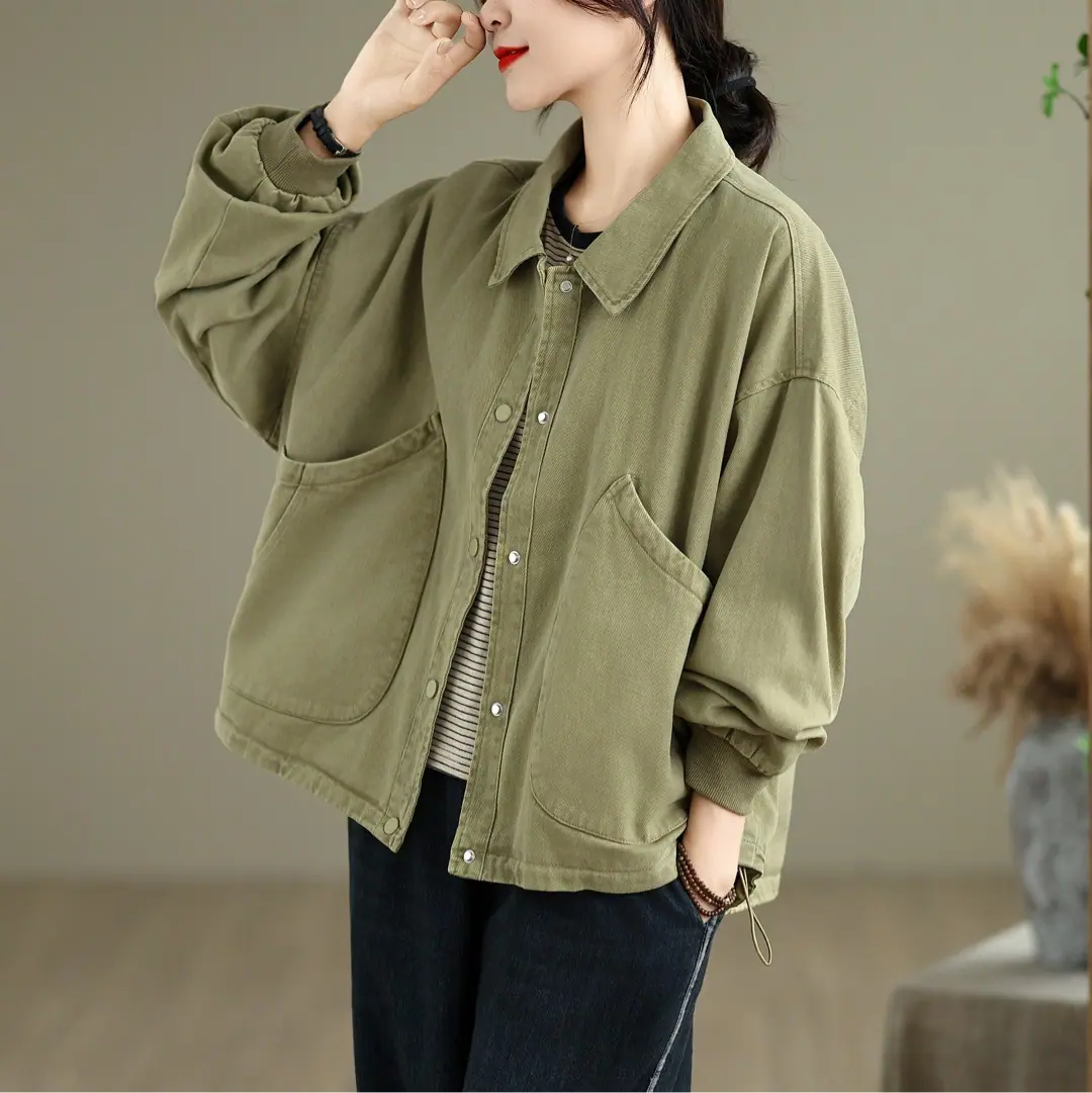 Otoño Nuevo Personalidad Bolsillo Versátil Abrigo Color Sólido Mujer Suelto Solapa Botón Chaqueta Casual Top Venta al Mayoreo