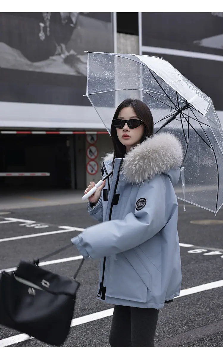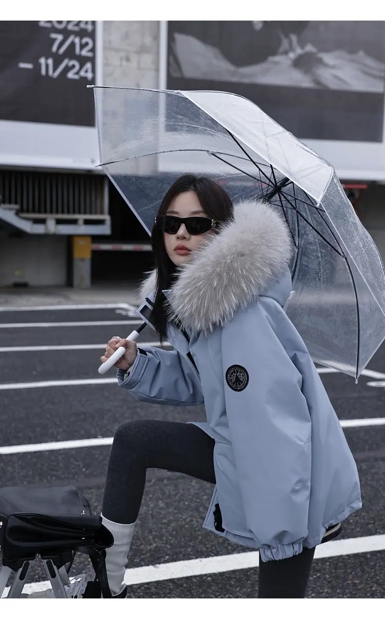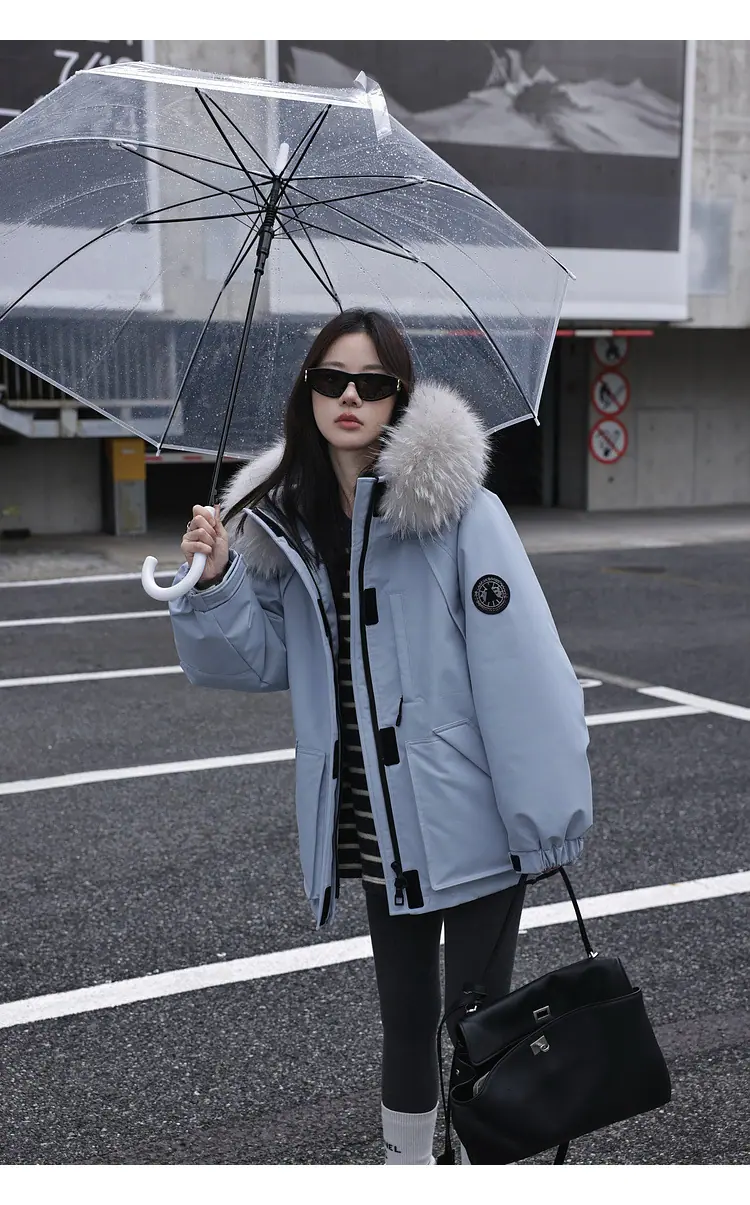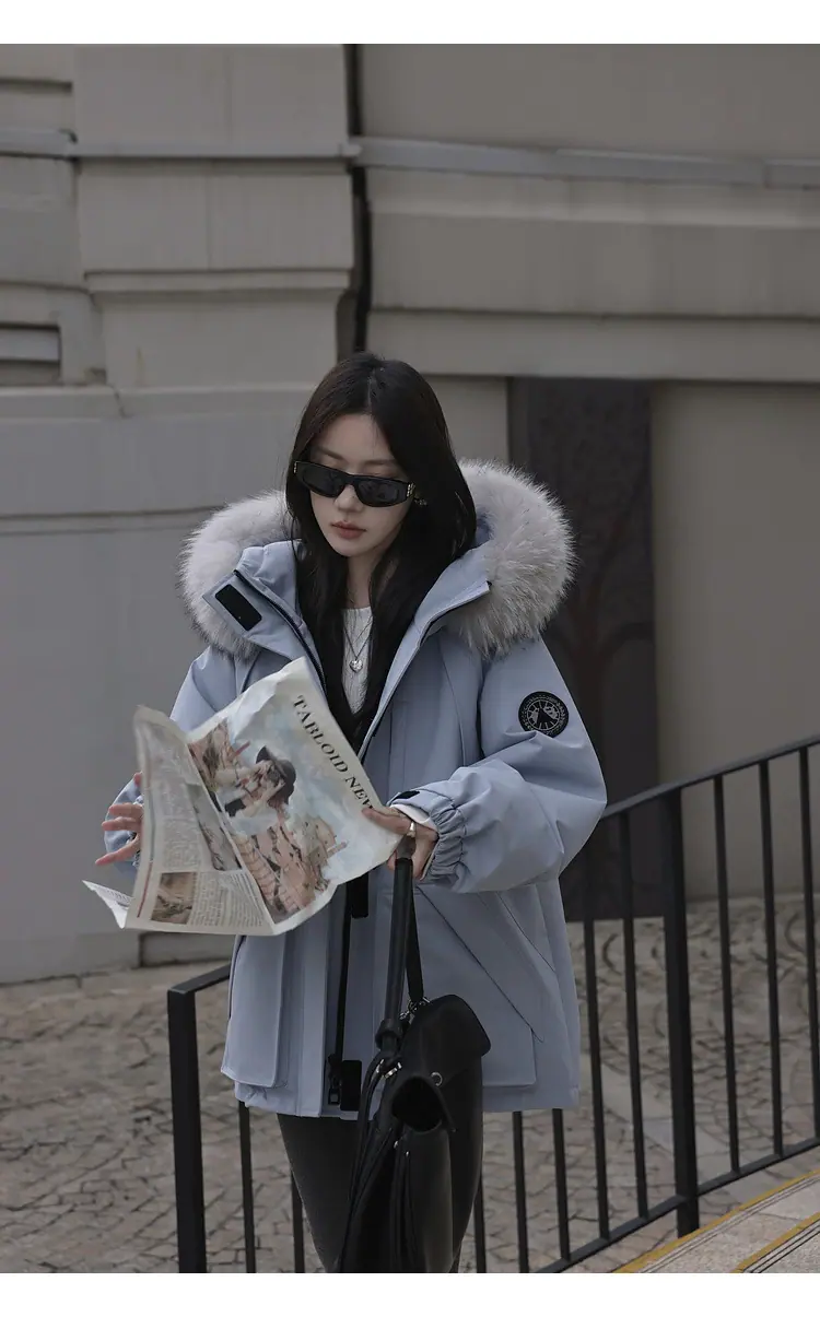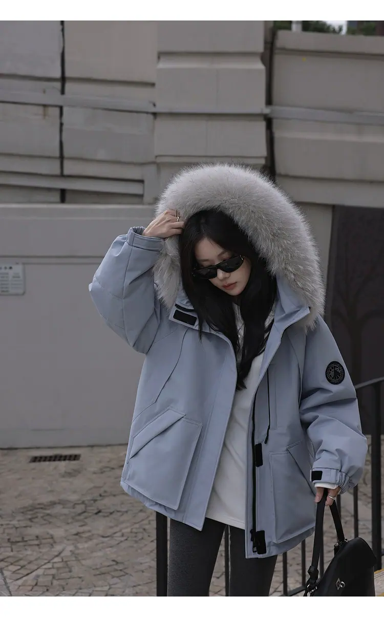 Cortavientos Cálido con Capucha y Cuello de Piel Desmontable Nuevo Invierno Cálido Grueso Ropa de Trabajo Algodón Acolchado Chaqueta Abrigo Mujer