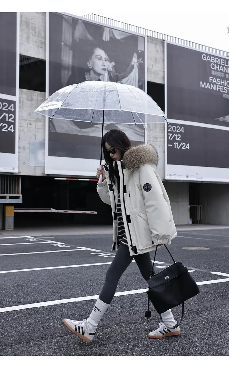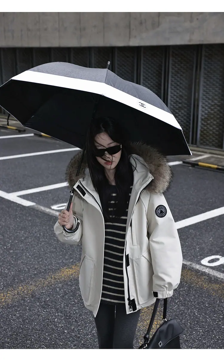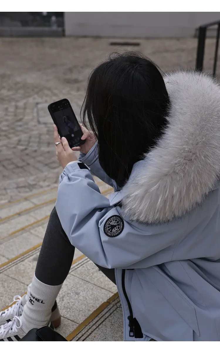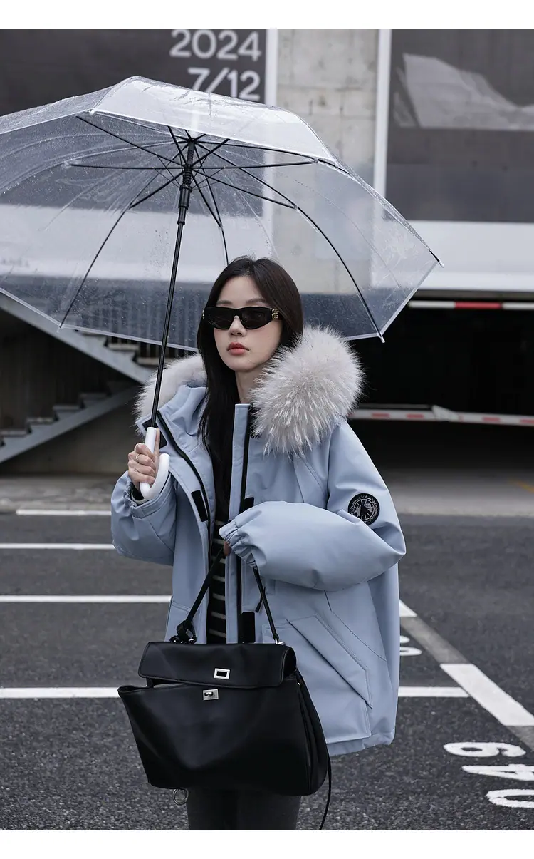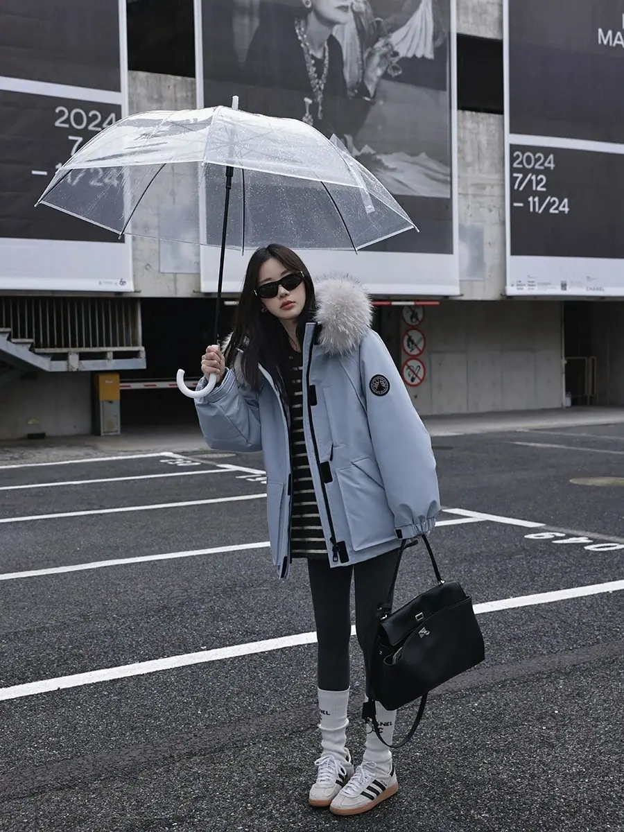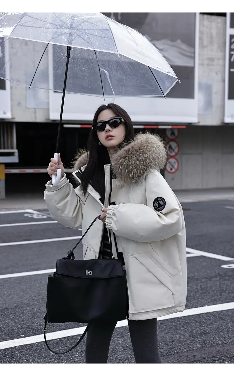 Cortavientos Cálido con Capucha y Cuello de Piel Desmontable Nuevo Invierno Cálido Grueso Ropa de Trabajo Algodón Acolchado Chaqueta Abrigo Mujer