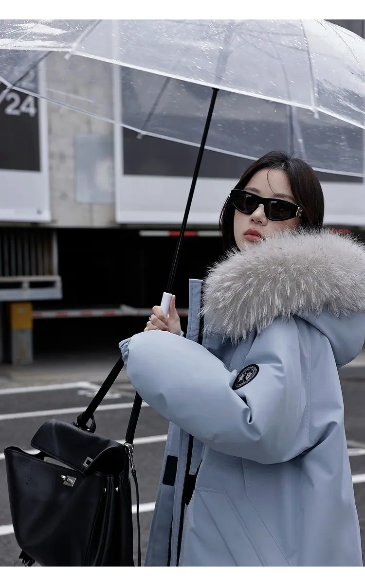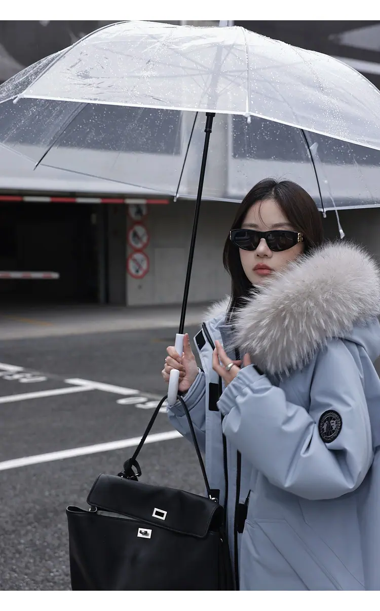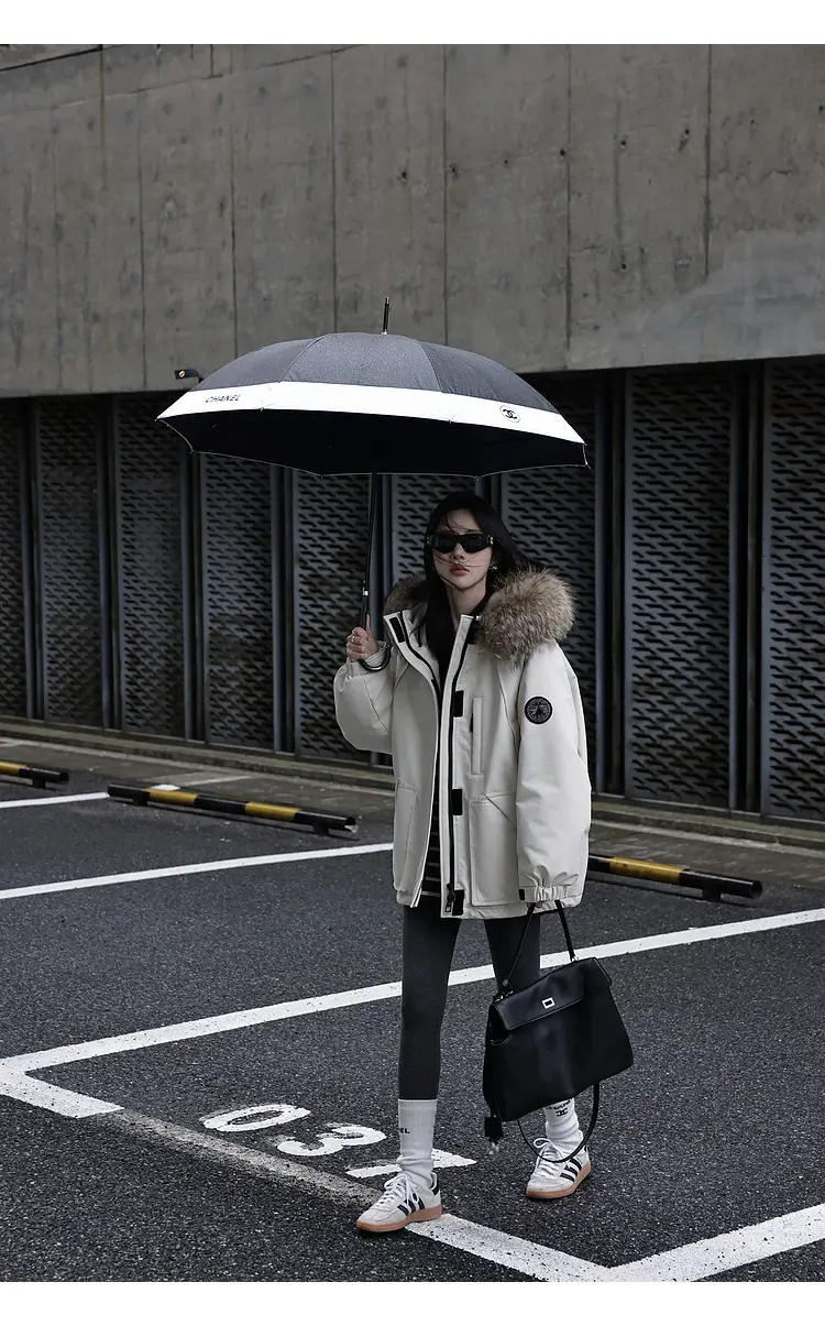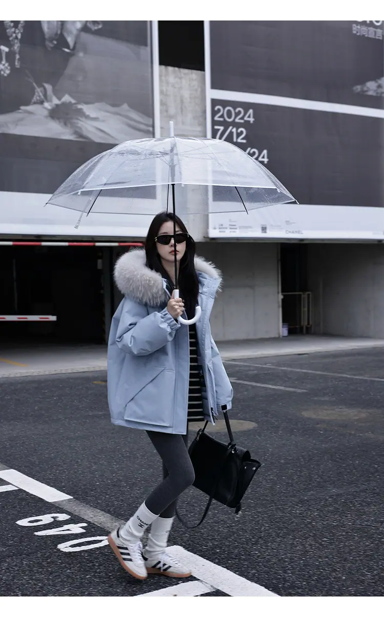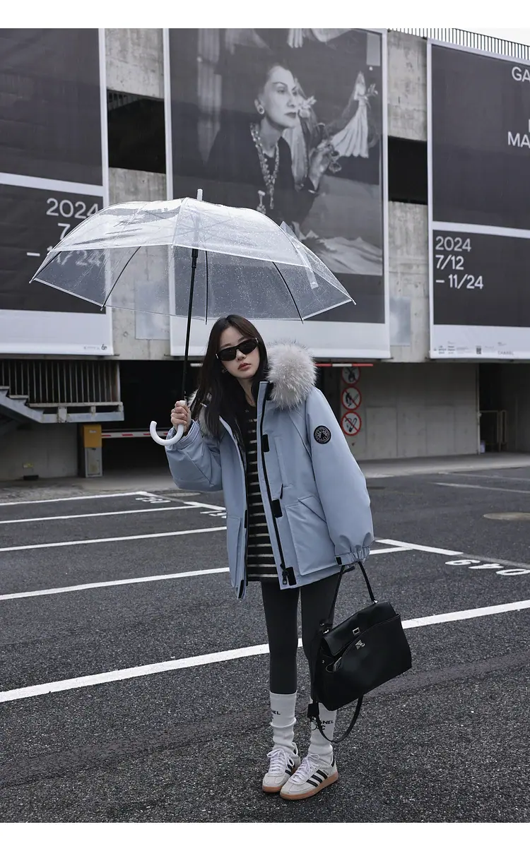 Cortavientos Cálido con Capucha y Cuello de Piel Desmontable Nuevo Invierno Cálido Grueso Ropa de Trabajo Algodón Acolchado Chaqueta Abrigo Mujer