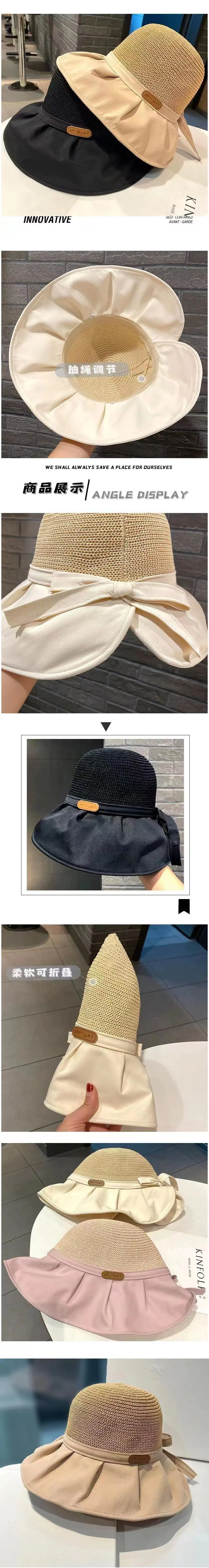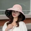 Sombrero de pescador de nuevo estilo, sombrero de sol para exteriores de estilo coreano que combina con todo, con lazo de ala grande para cubrir la cara y protegerse del sol, sombrero de mujer