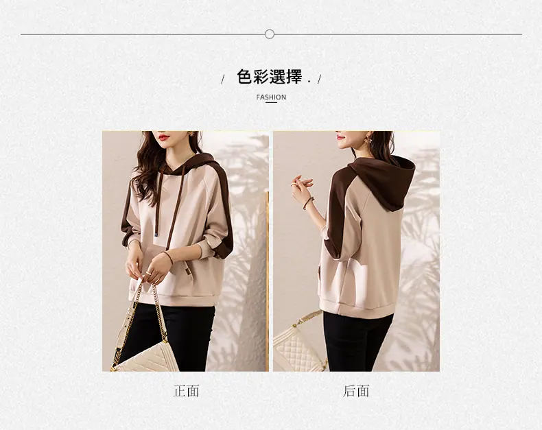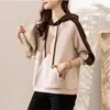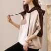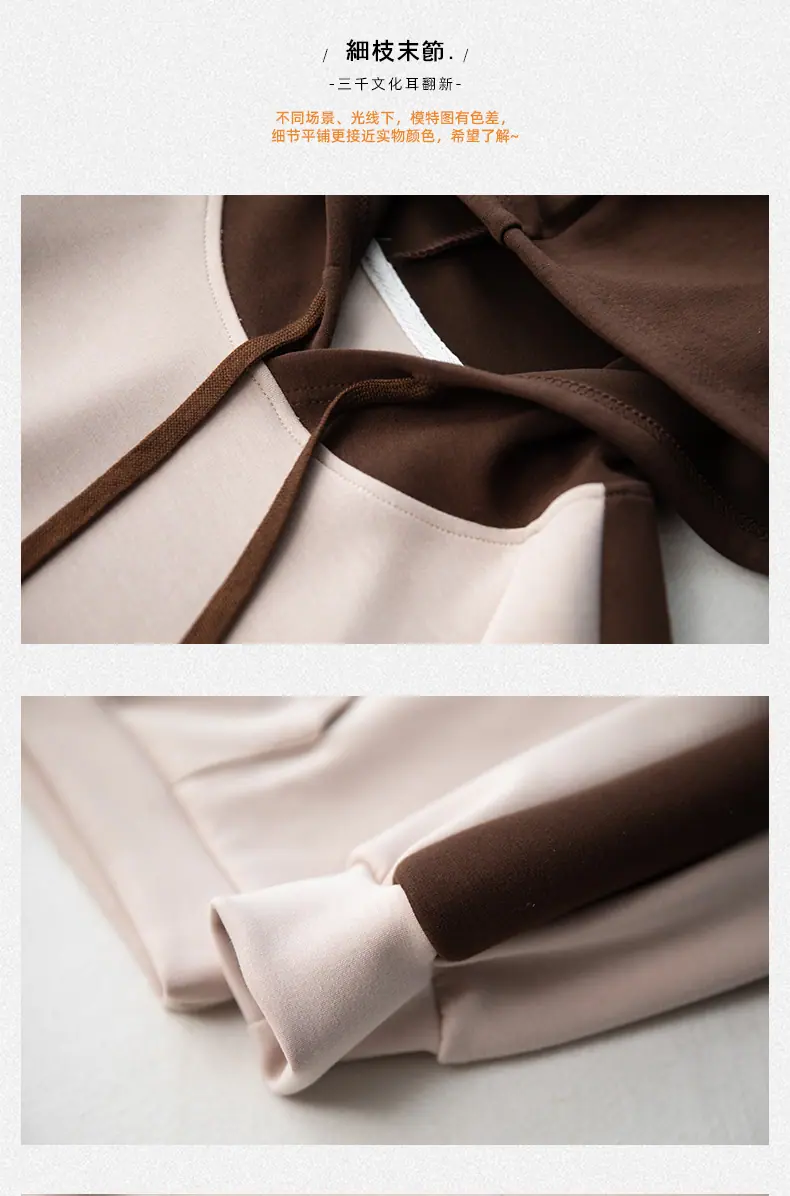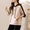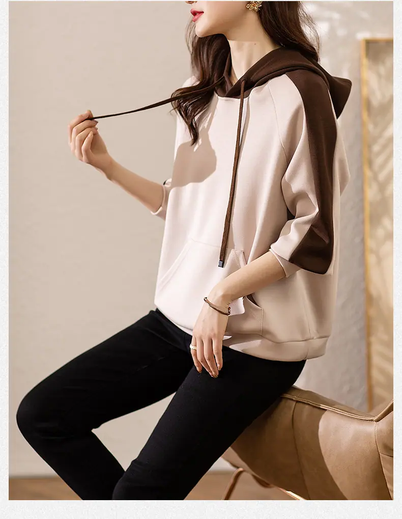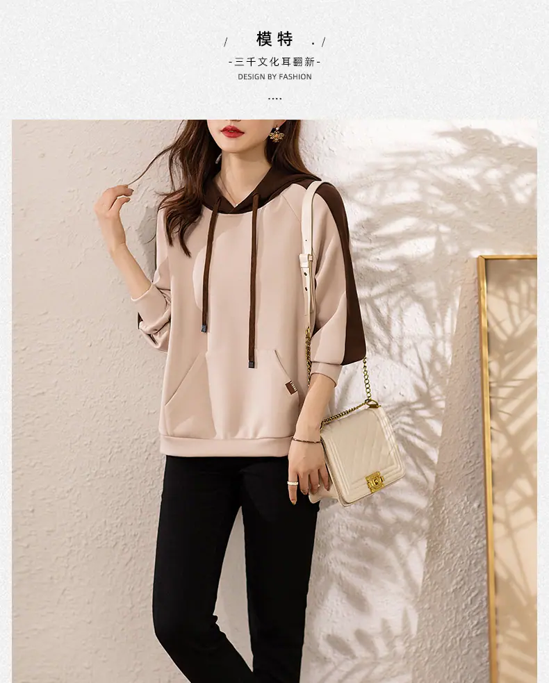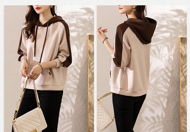 Sudadera Holgada para Mujer Nueva de Primavera y Otoño 2025 Sencilla Versátil Bloque de Color con Capucha Costuras en Contraste