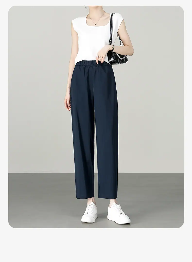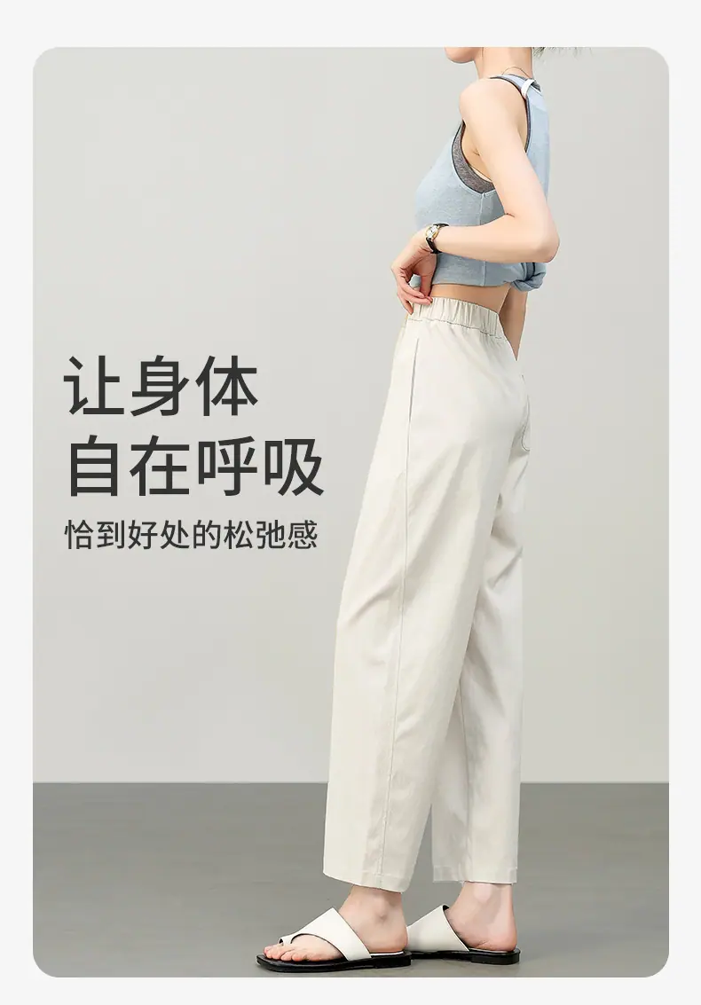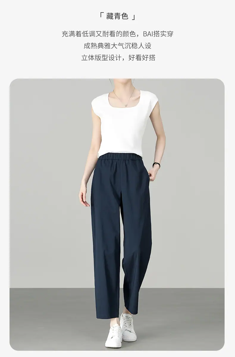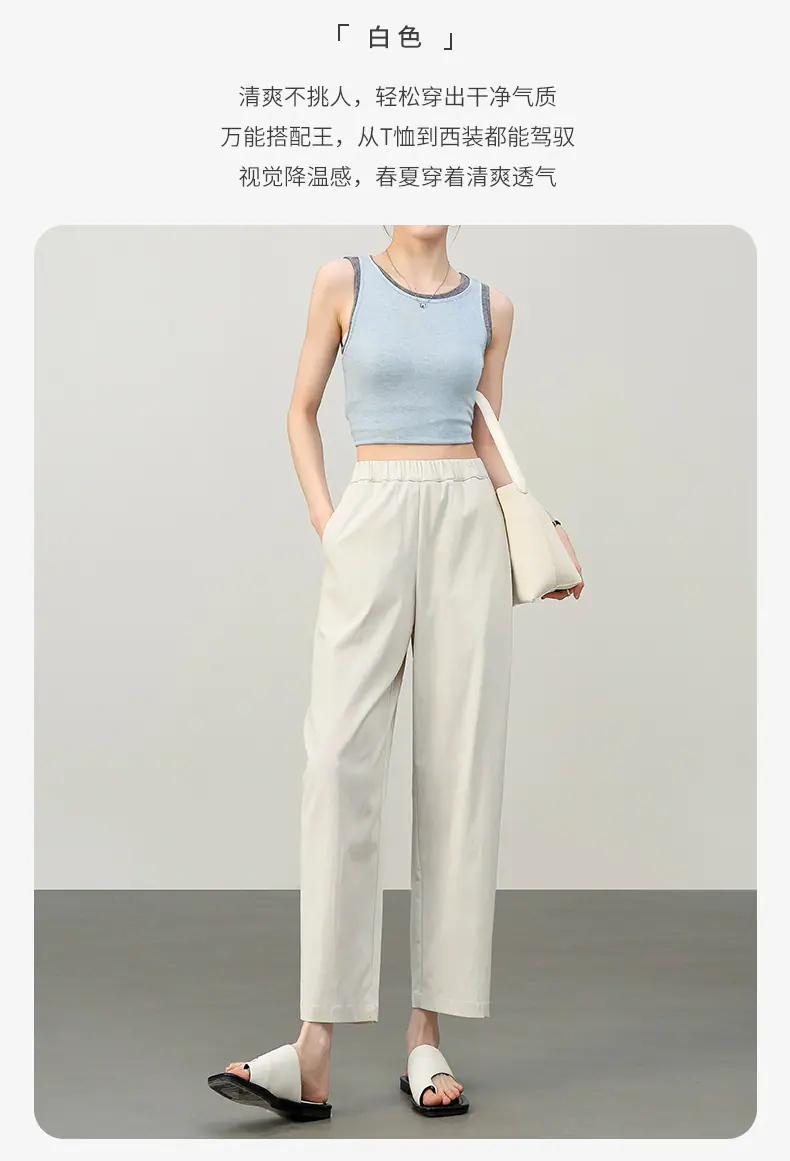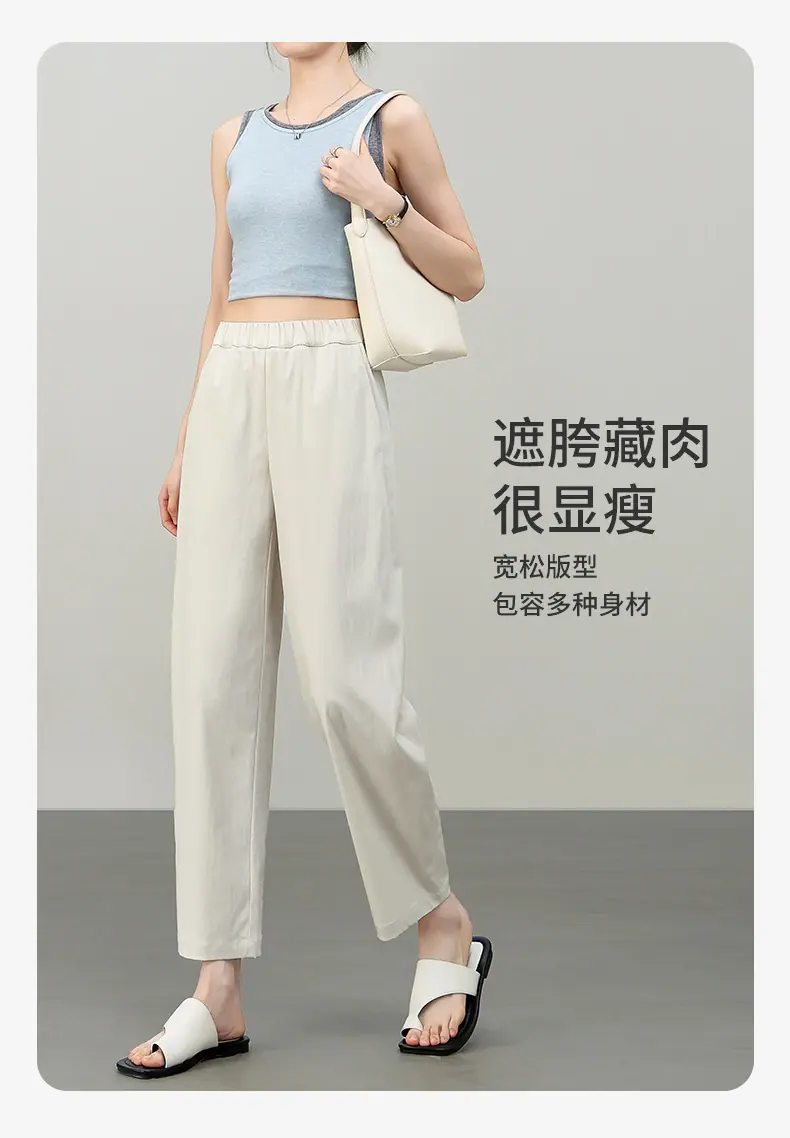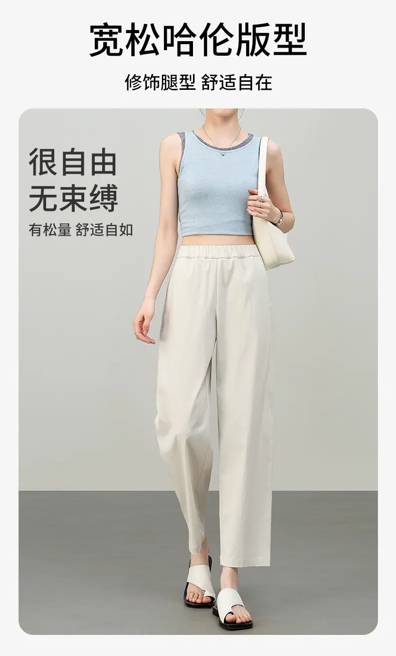 Pantalones Harem Casuales de Pierna Ancha para Mujer 2025 Petite Nuevo Verano Delgados Nueve Puntos Pantalones Cintura Alta Sueltos Adelgazantes