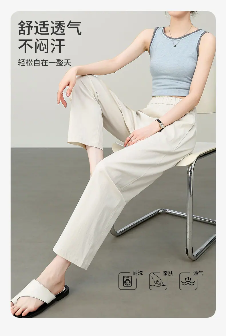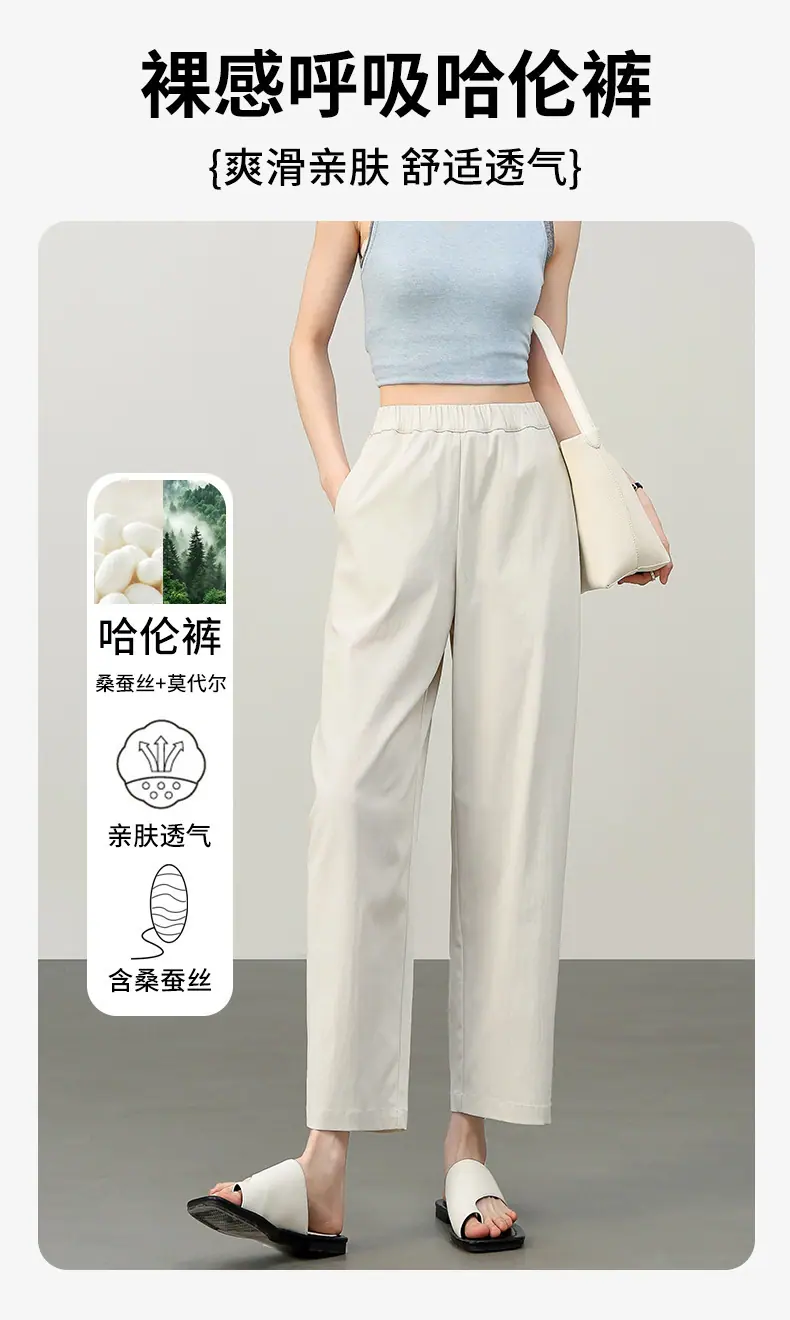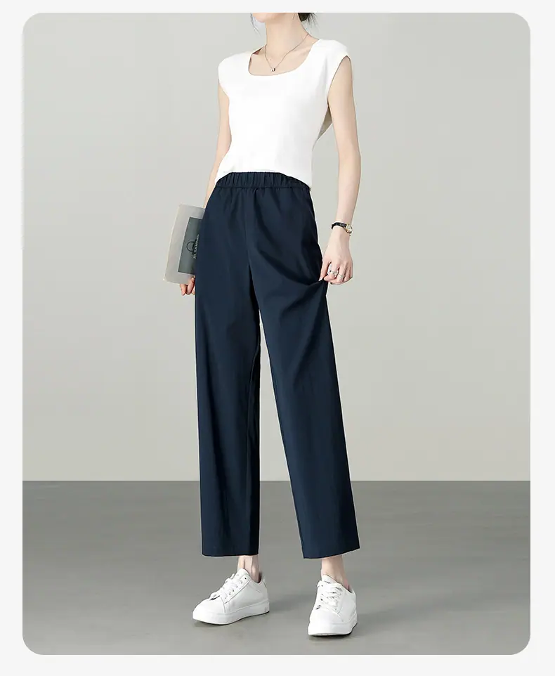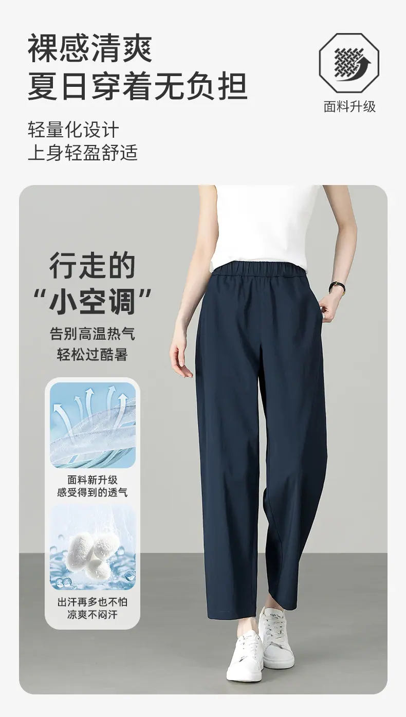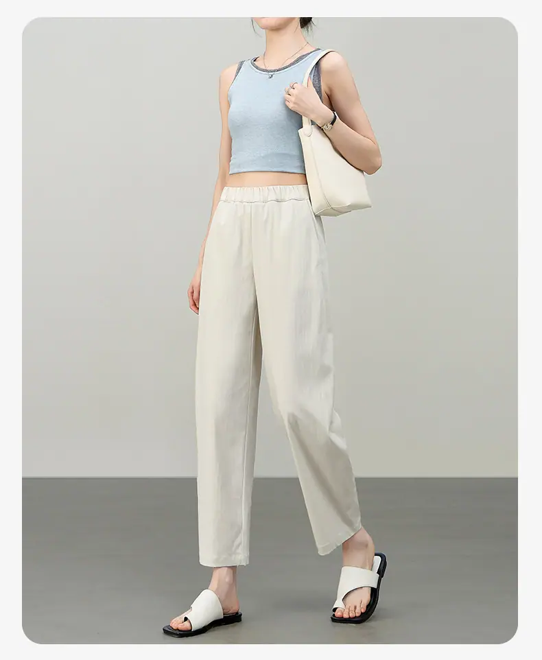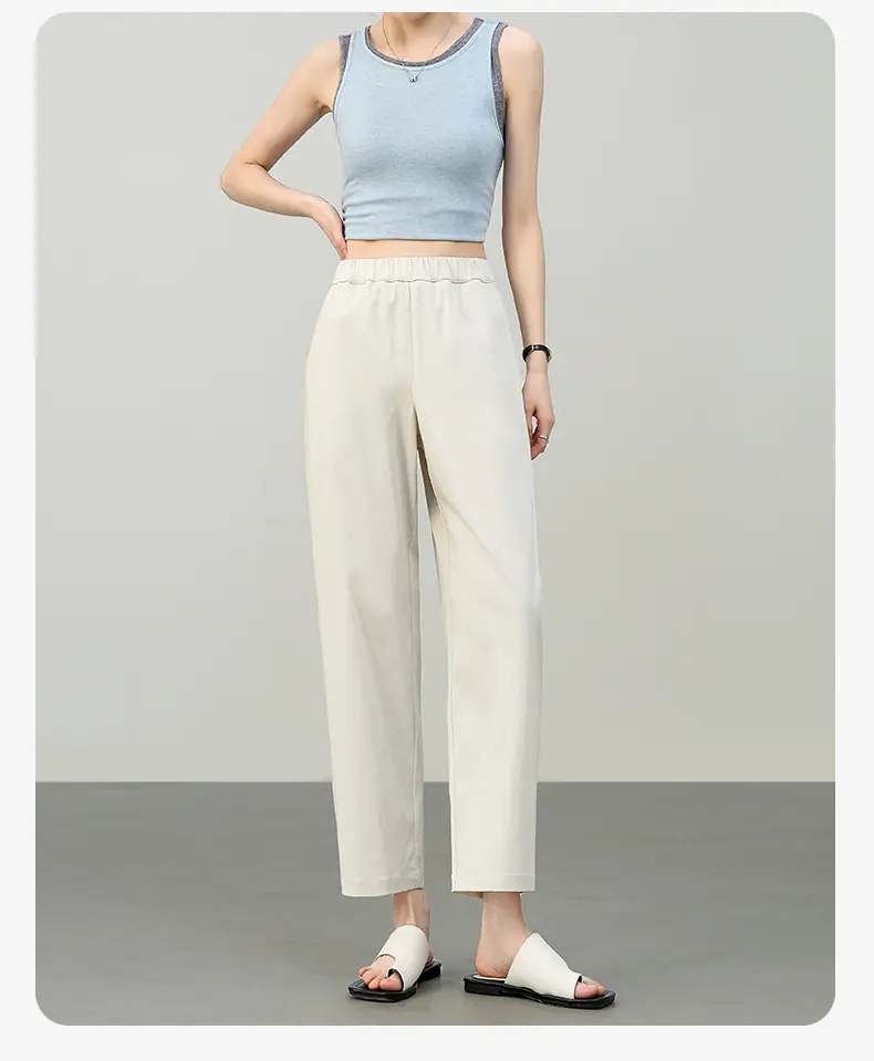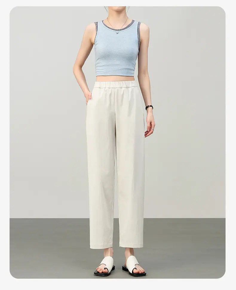 Pantalones Harem Casuales de Pierna Ancha para Mujer 2025 Petite Nuevo Verano Delgados Nueve Puntos Pantalones Cintura Alta Sueltos Adelgazantes