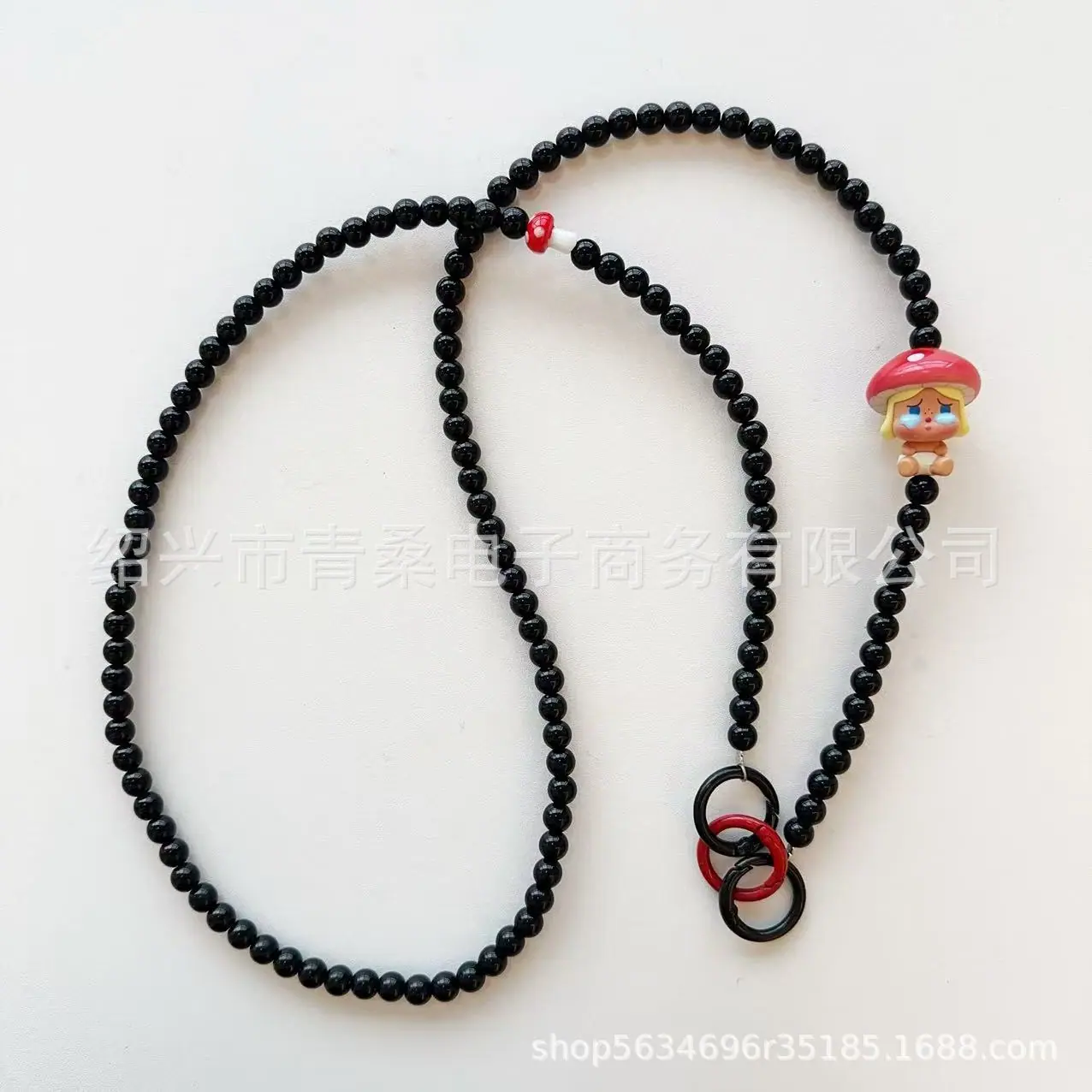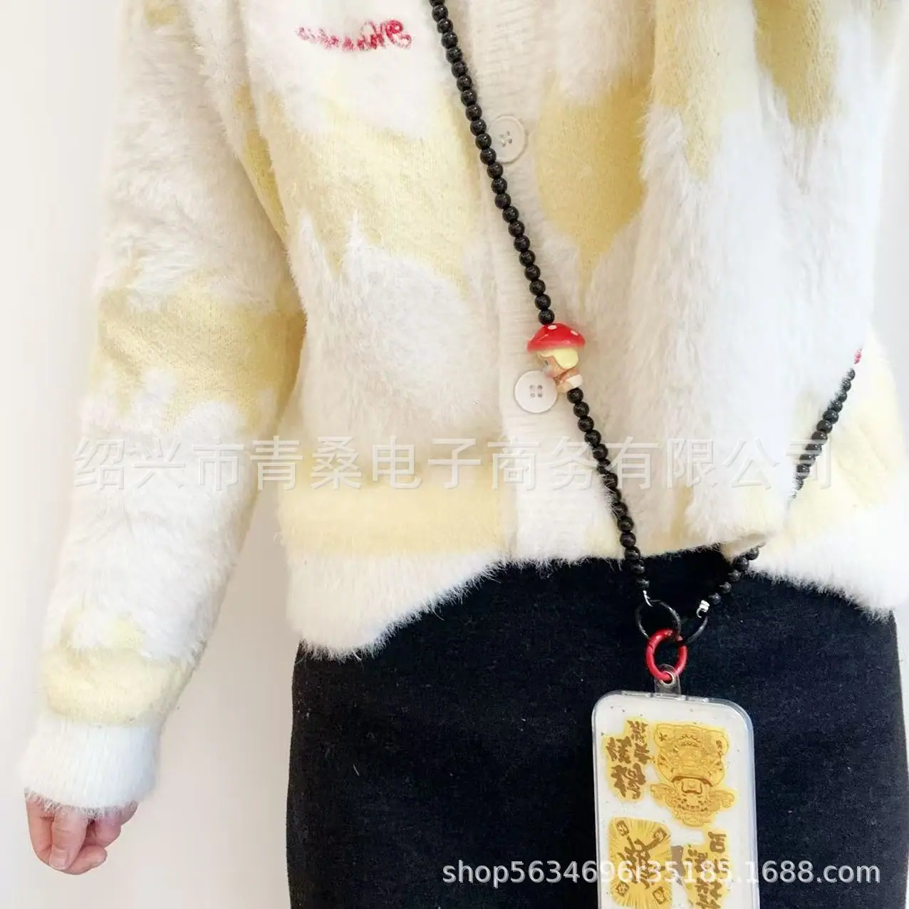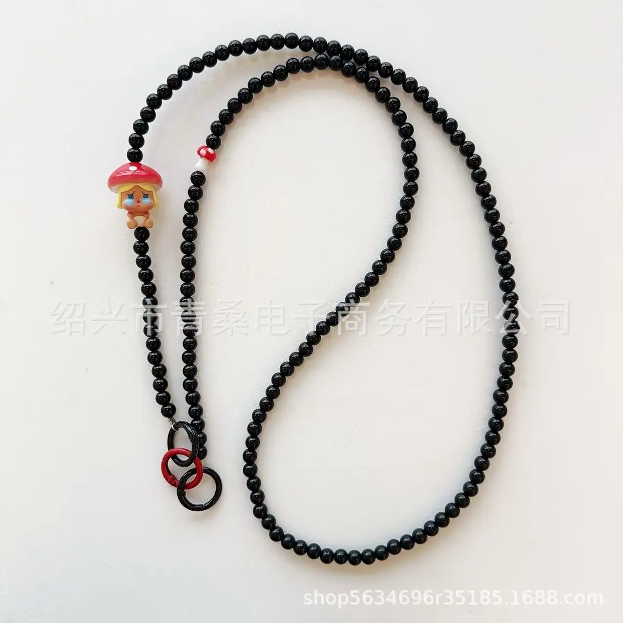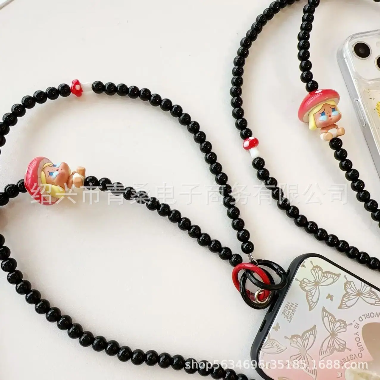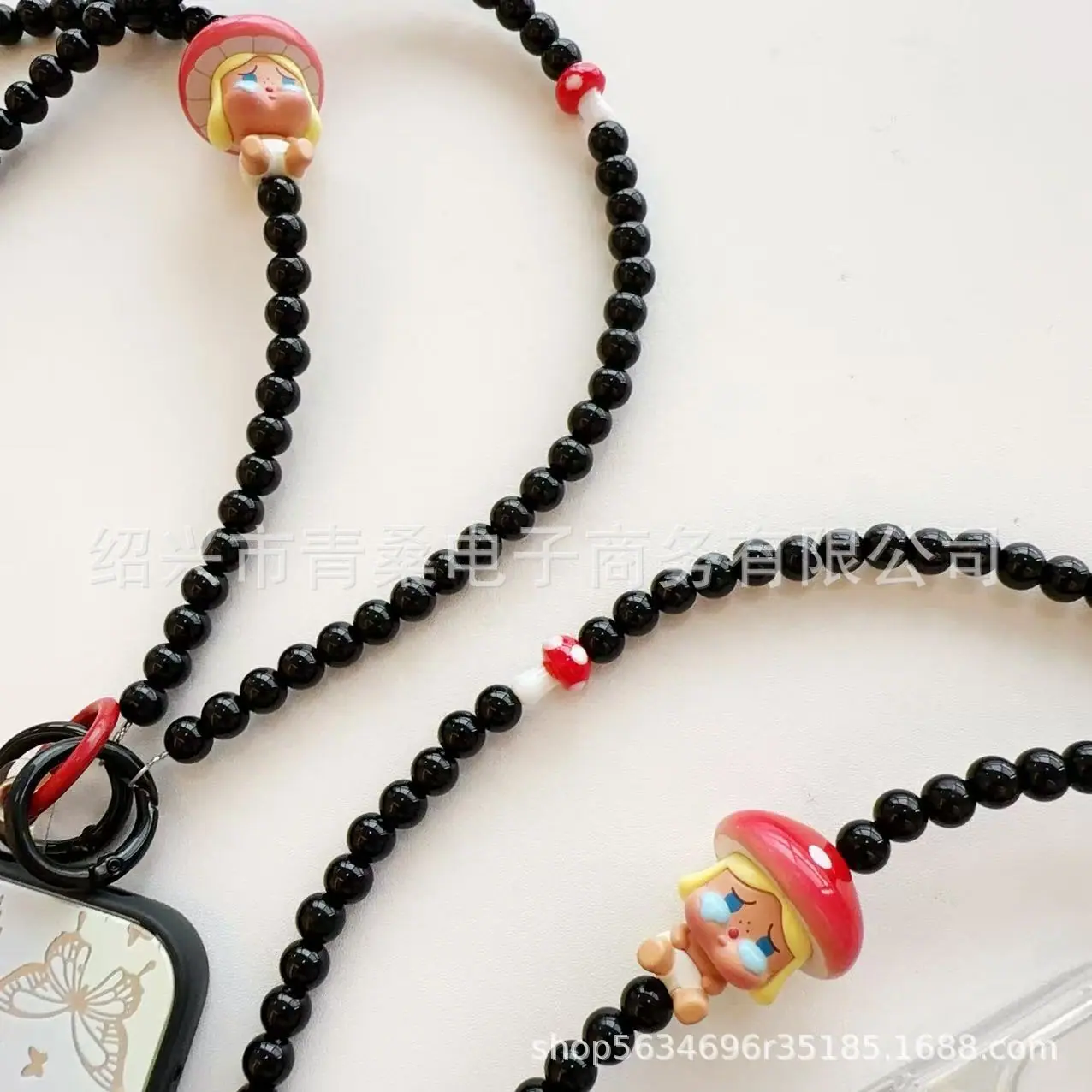 Cordón Largo Cruzado para Teléfono con Cuentas Negras de Dibujos Animados Creativos Coreanos de Hongo Rojo Llorón 80cm/120cm