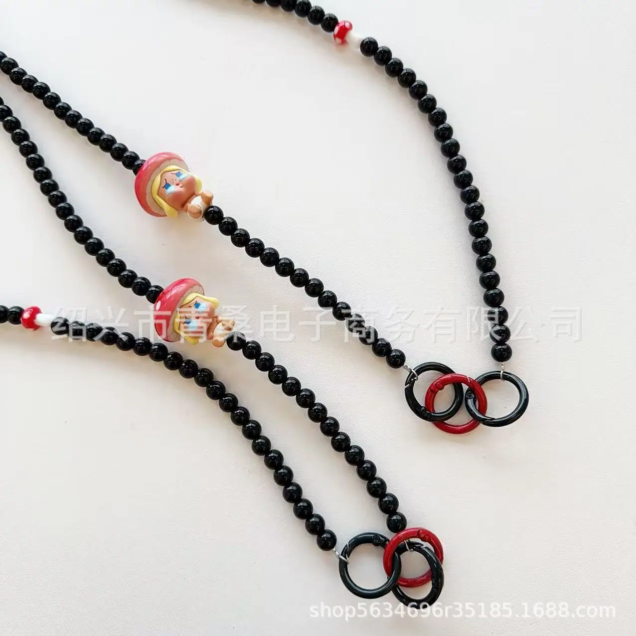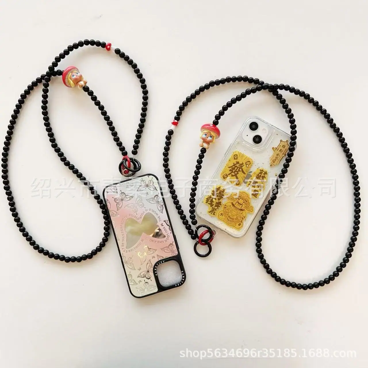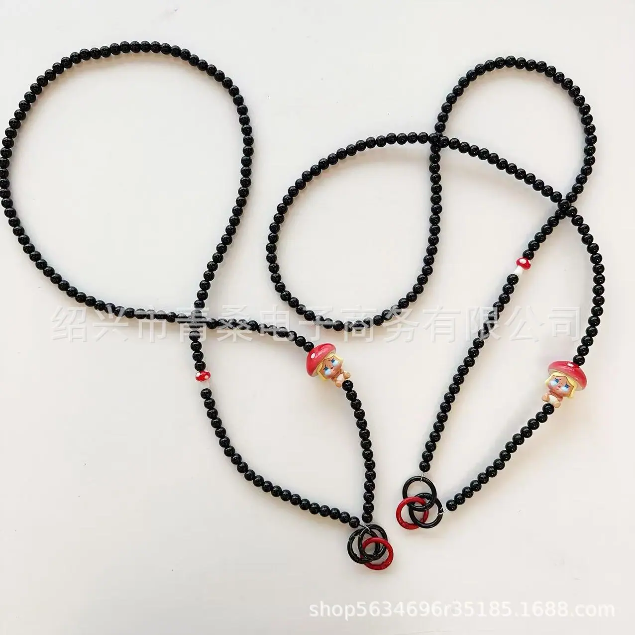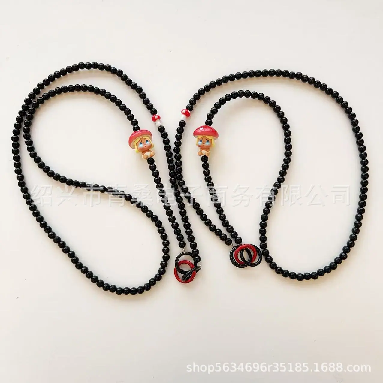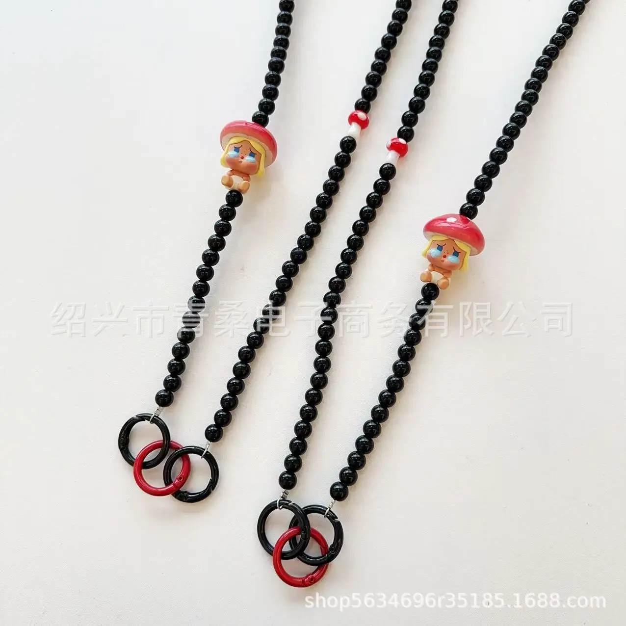 Cordón Largo Cruzado para Teléfono con Cuentas Negras de Dibujos Animados Creativos Coreanos de Hongo Rojo Llorón 80cm/120cm