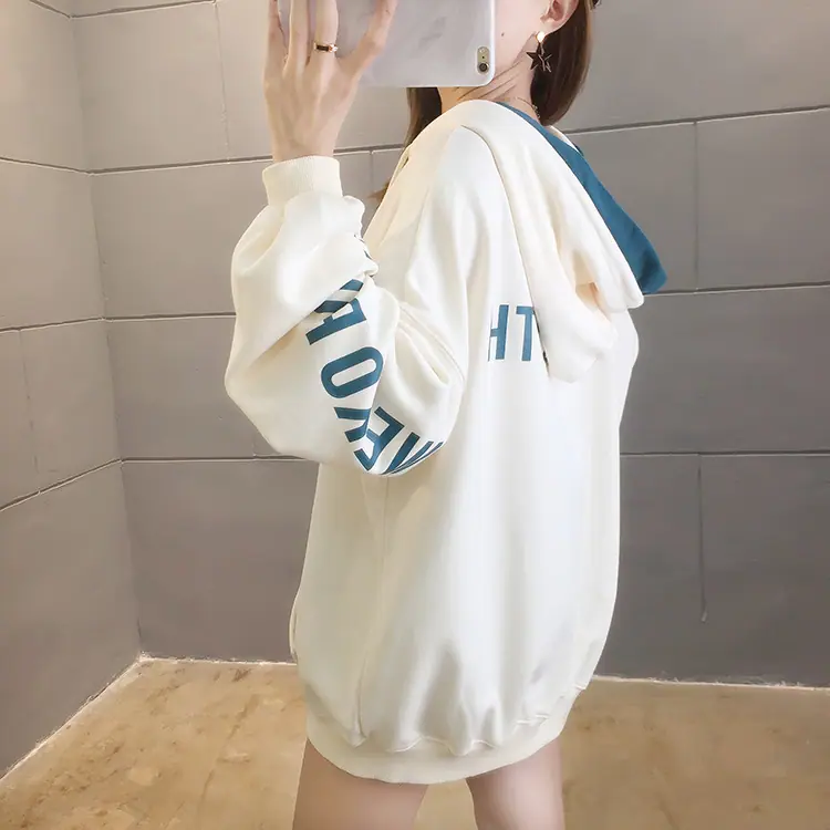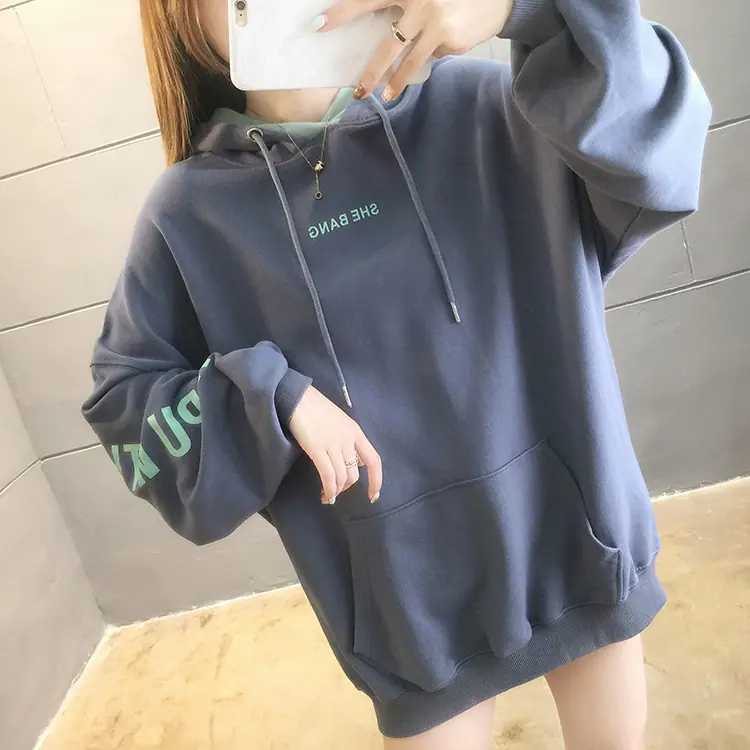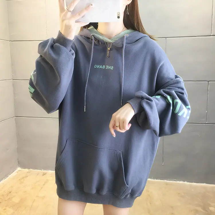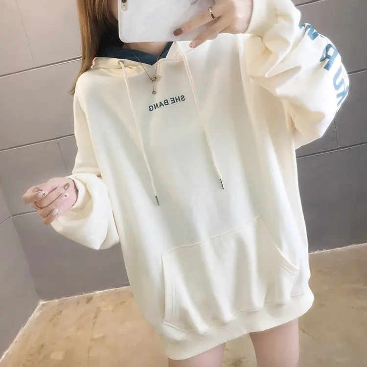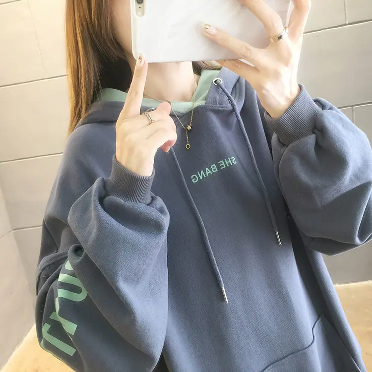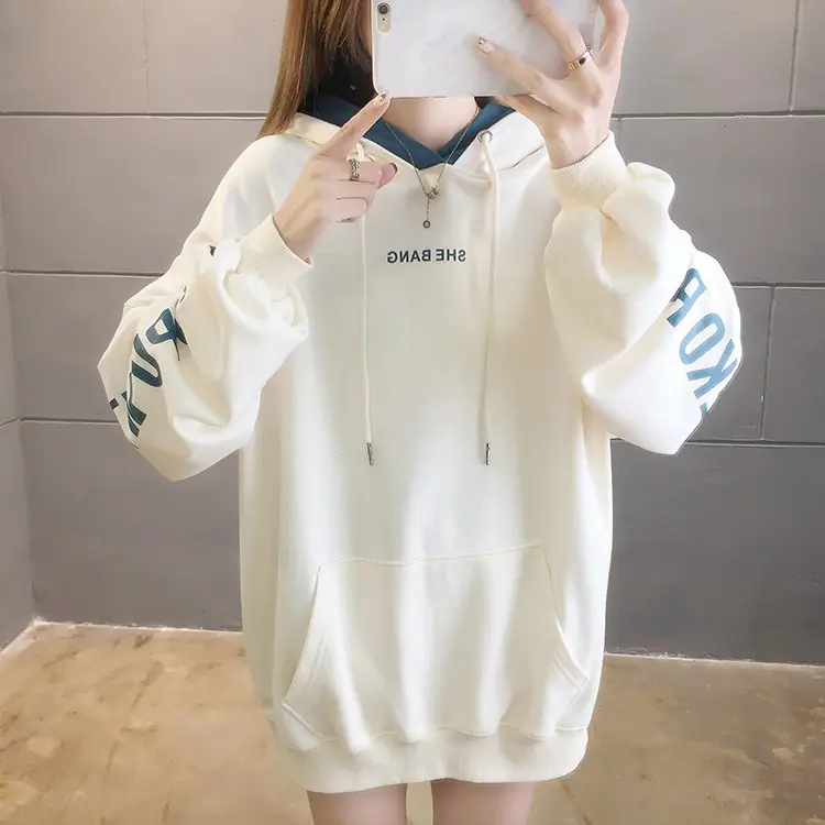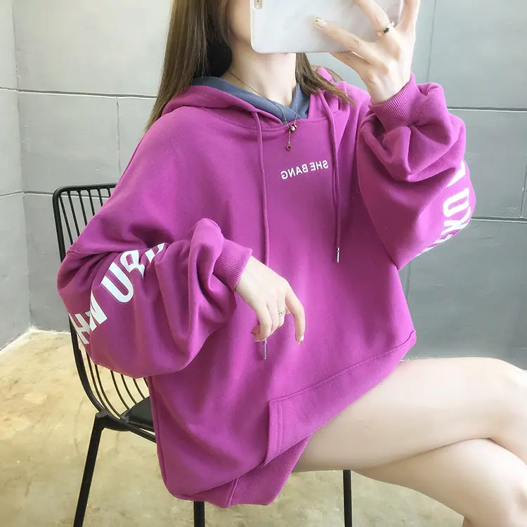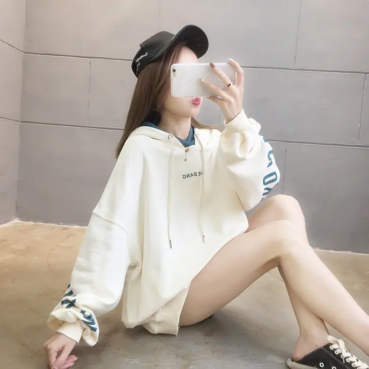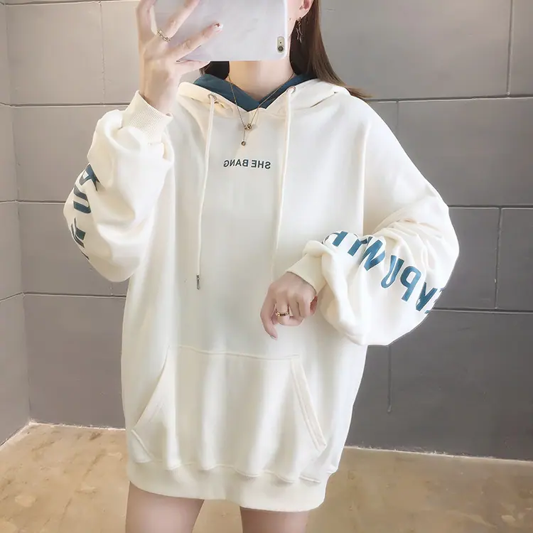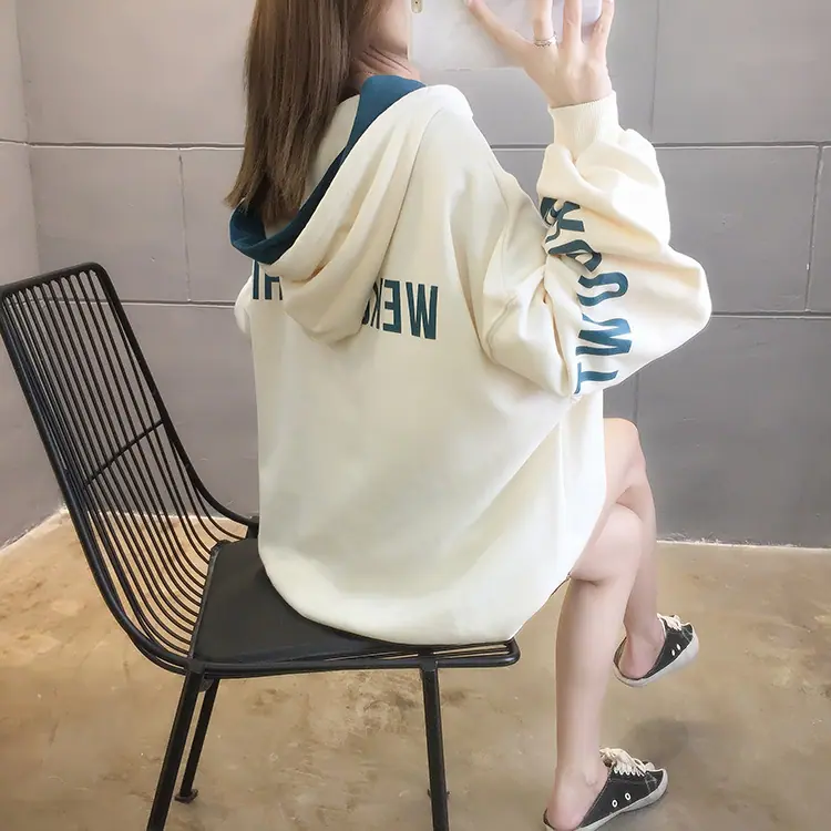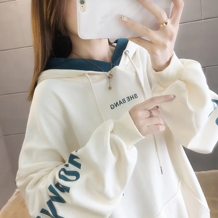 Primavera 2021 toma real ~ nueva versión coreana de sudadera holgada de talla grande para mujer con estampado de letras con capucha