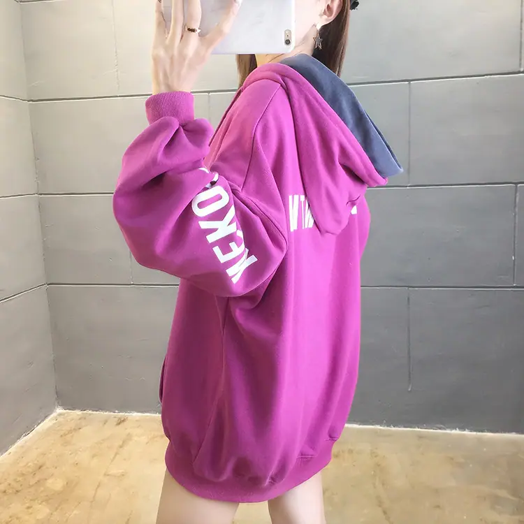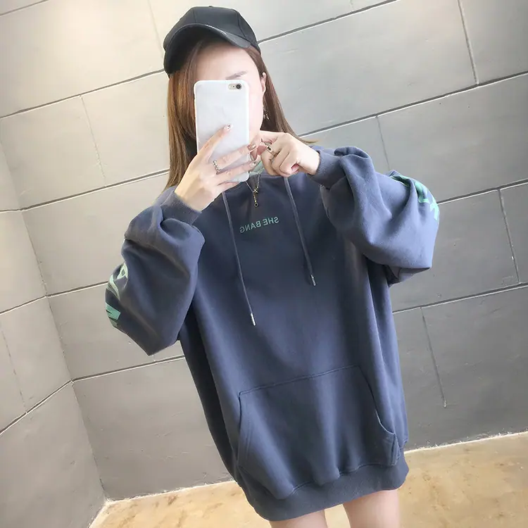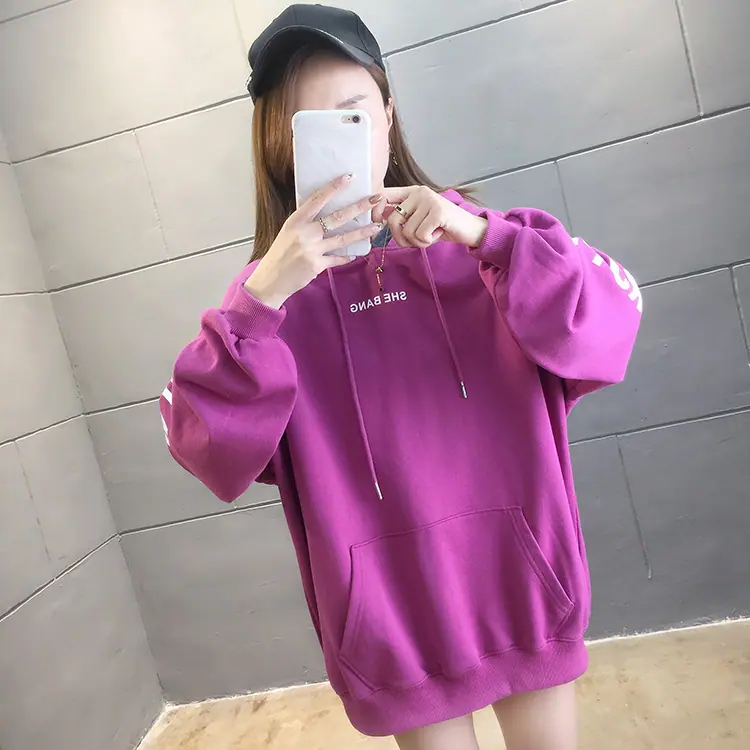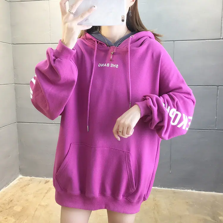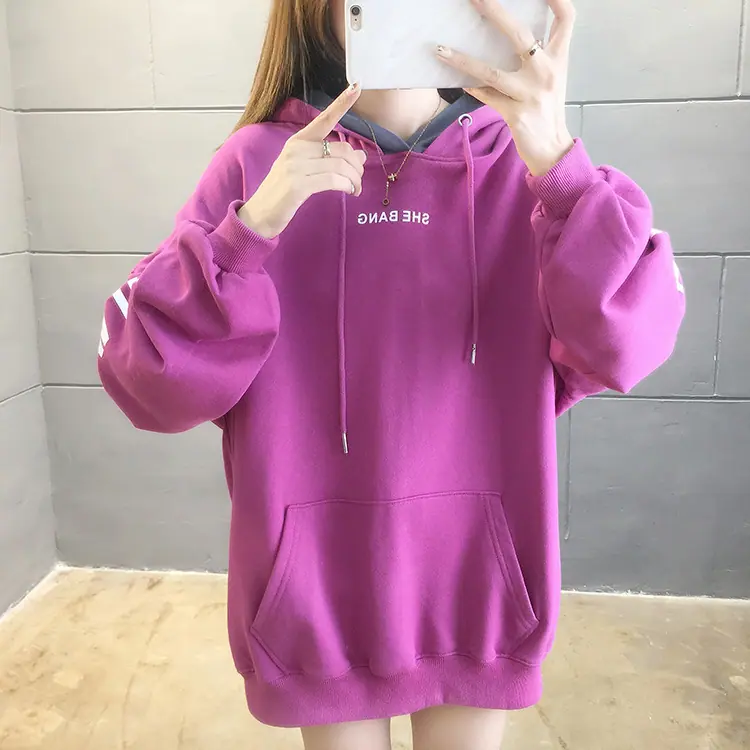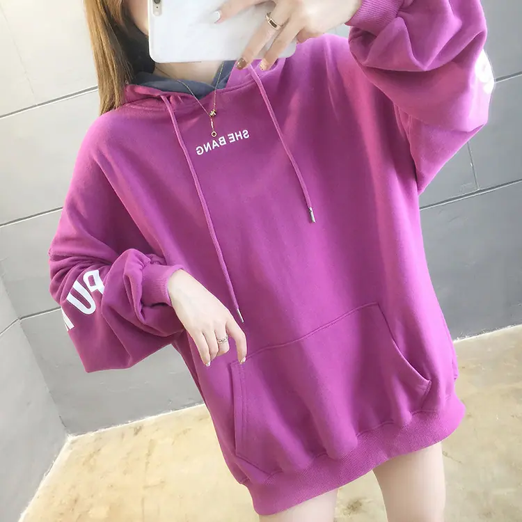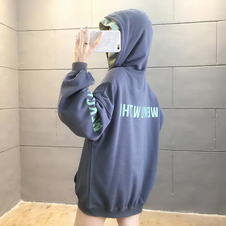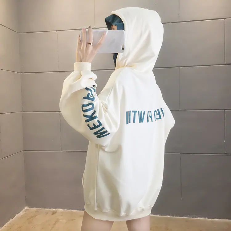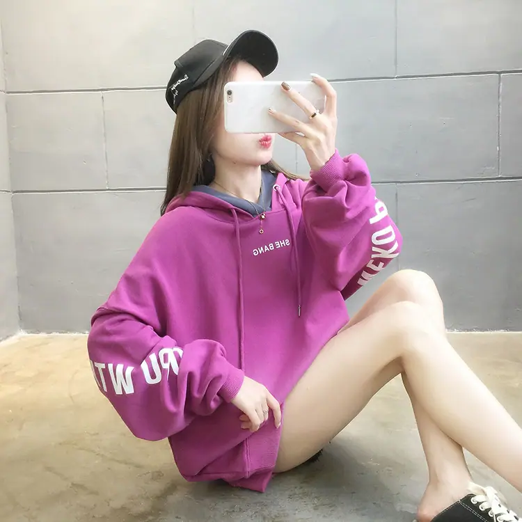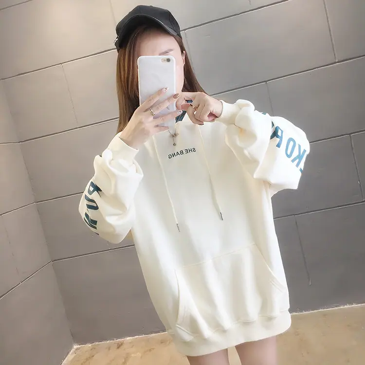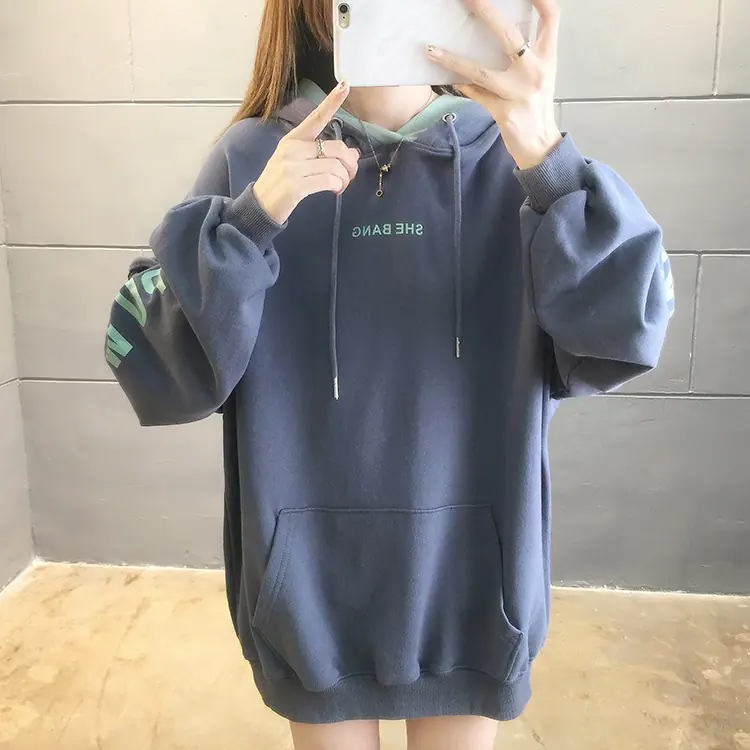 Primavera 2021 toma real ~ nueva versión coreana de sudadera holgada de talla grande para mujer con estampado de letras con capucha