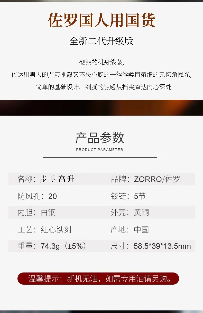 ZORRO ZORRO versión mejorada de segunda generación encendedor de queroseno a prueba de viento paso a paso moda nacional creativo personalizado regalo para hombre