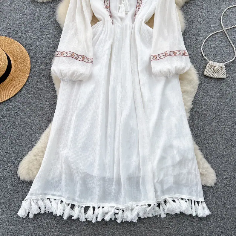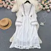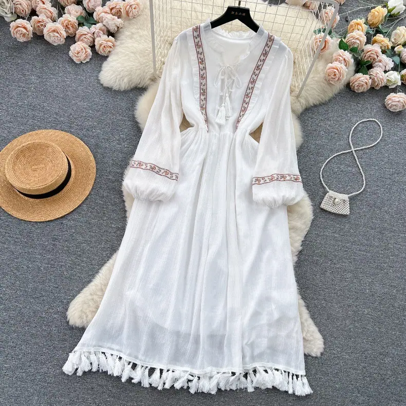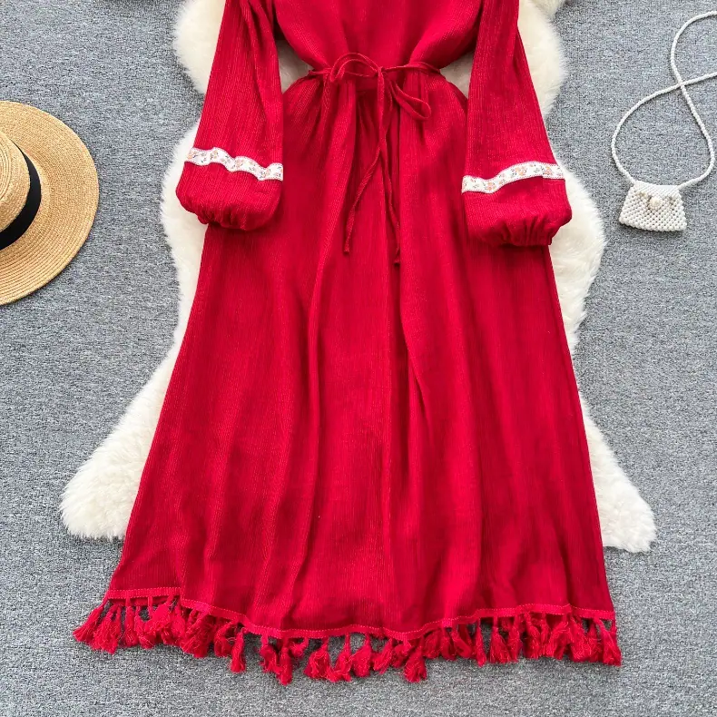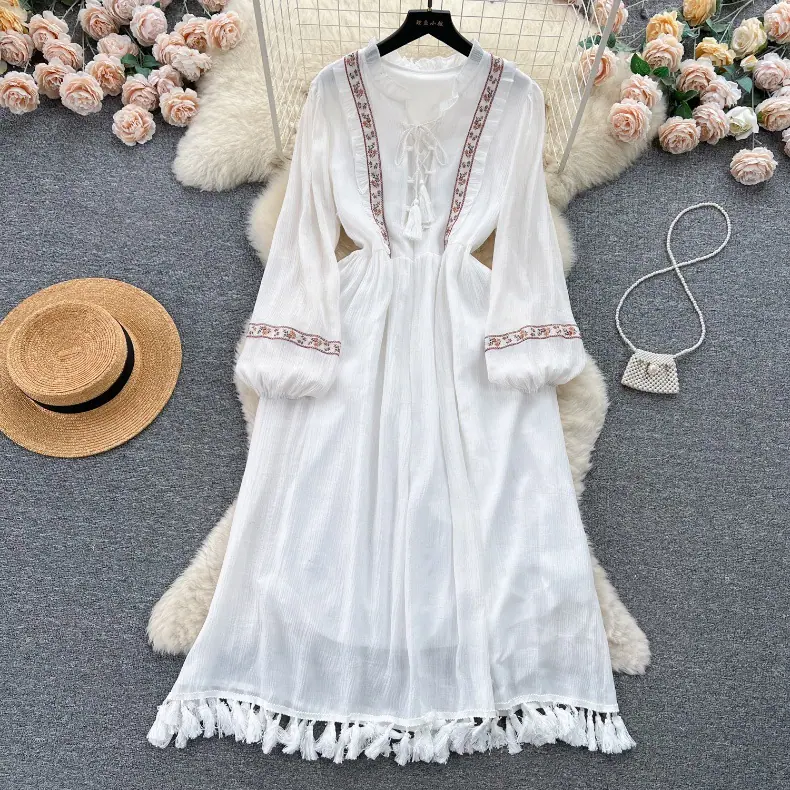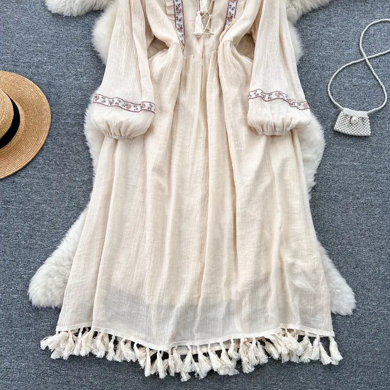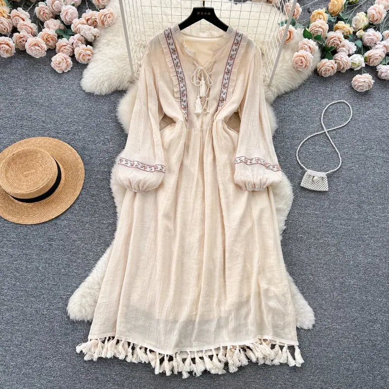 Vestido estilo bohemio de vacaciones para mujer, diseño de nicho, tirantes, holgado, corte slim, vestido de hada, falda elegante con borlas