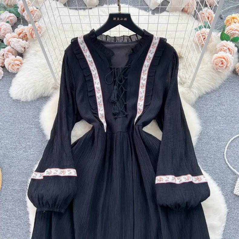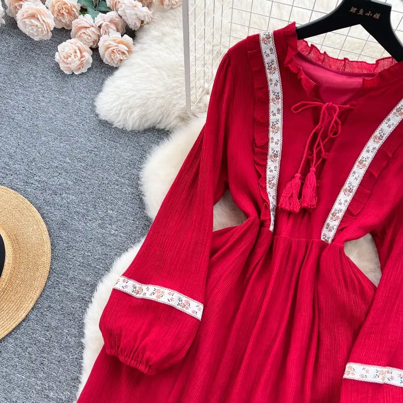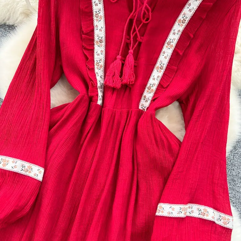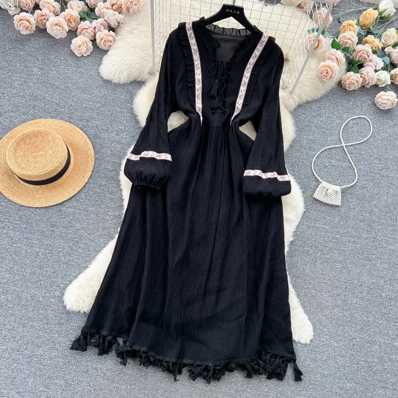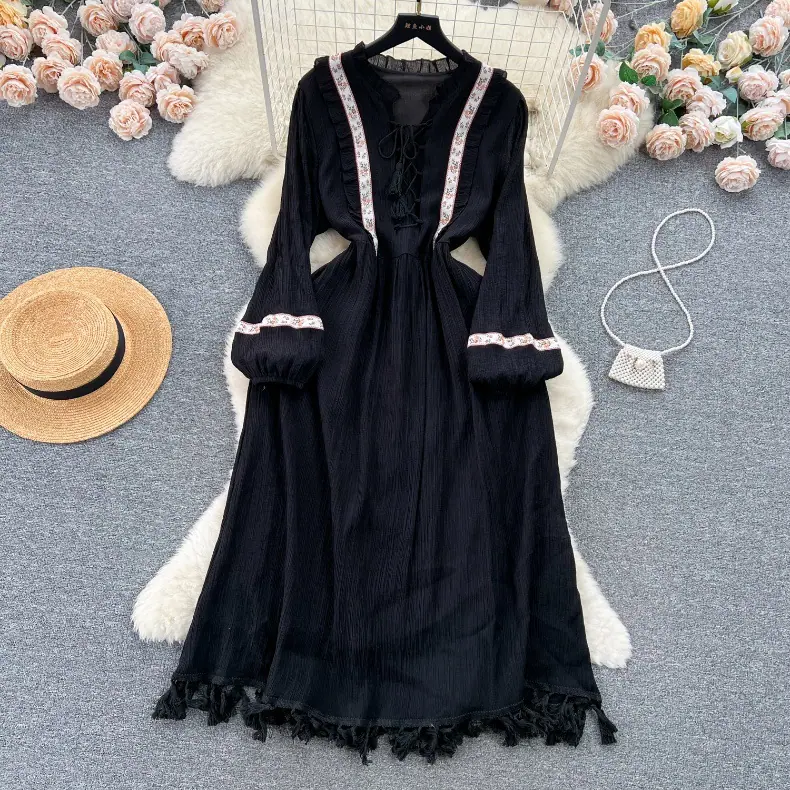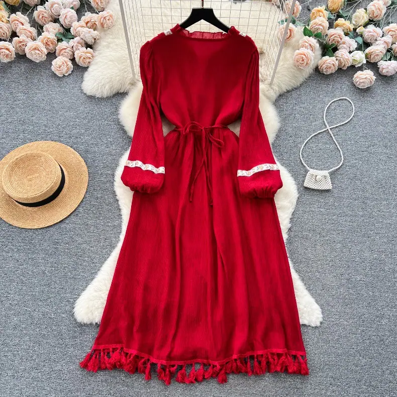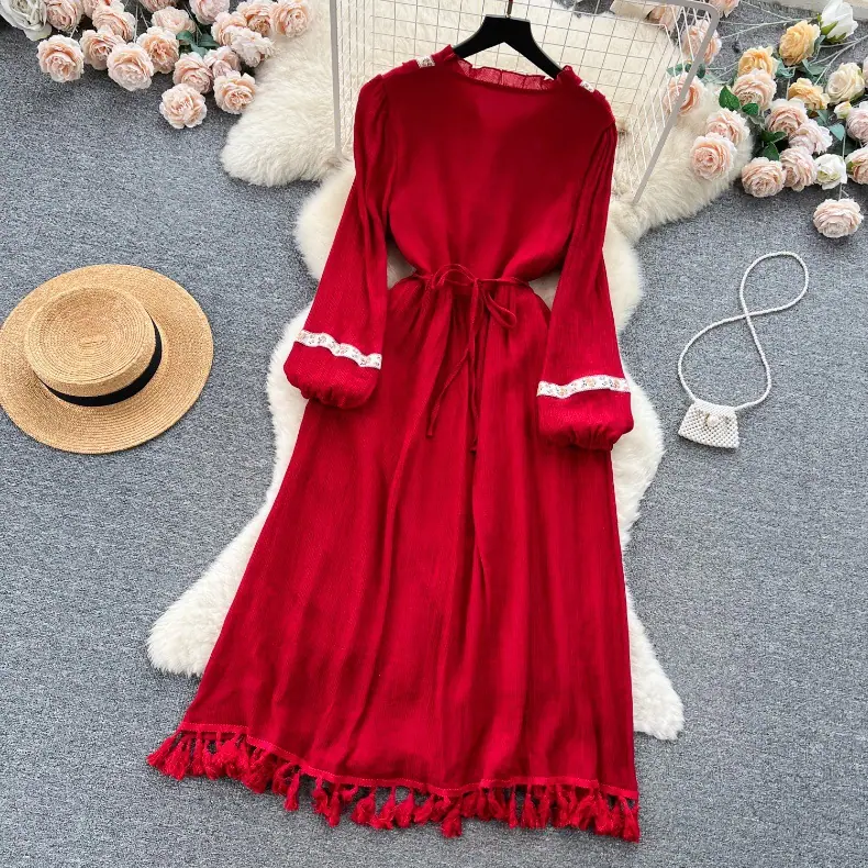 Vestido estilo bohemio de vacaciones para mujer, diseño de nicho, tirantes, holgado, corte slim, vestido de hada, falda elegante con borlas