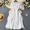 Vestido de Manga Corta con Volantes y Cuello Retro Estilo Francés para Mujer Verano Cintura Ajustada Adelgazante Elegante Carácter Elegante Vestido Largo de Gran Vuelo